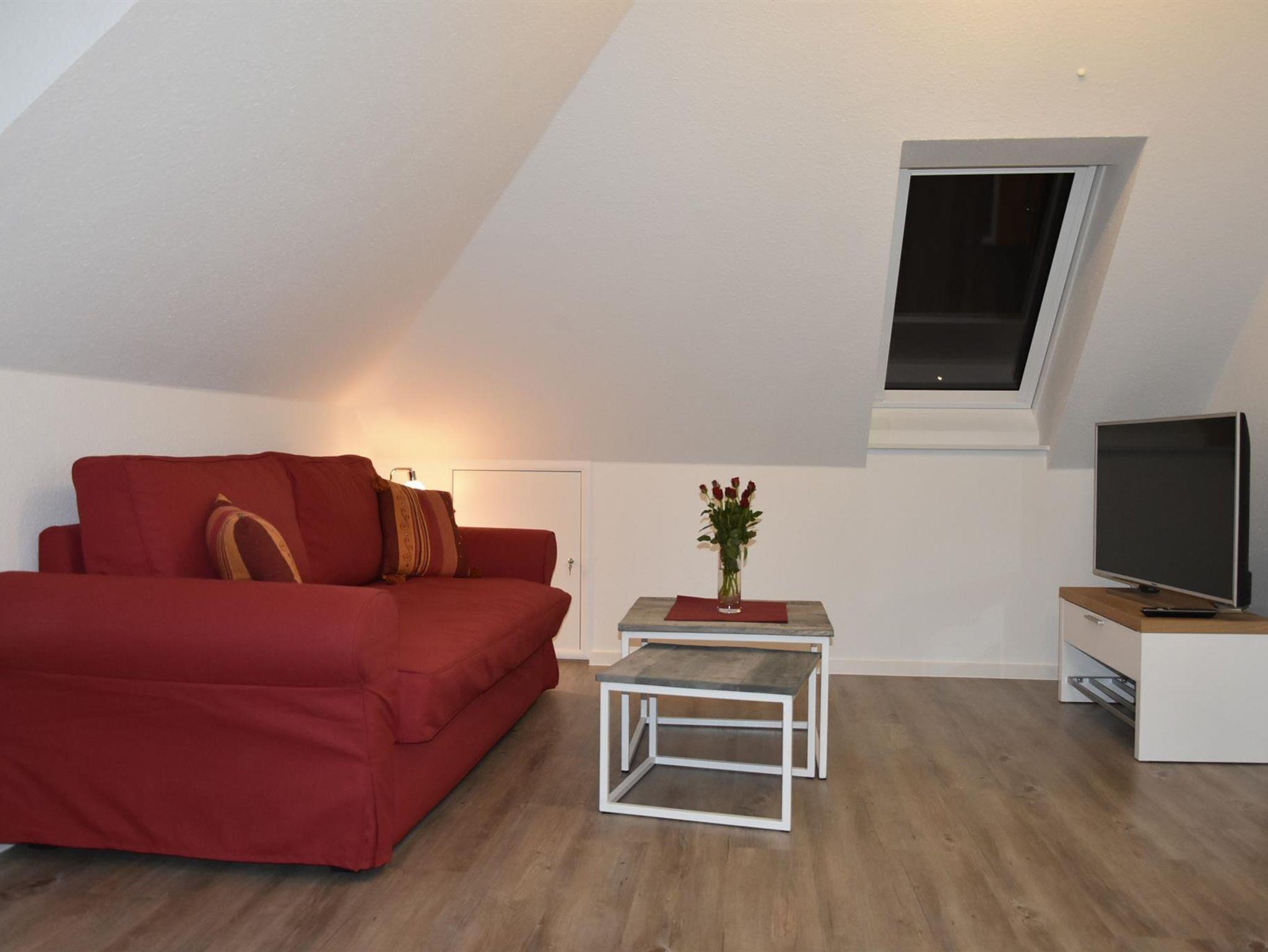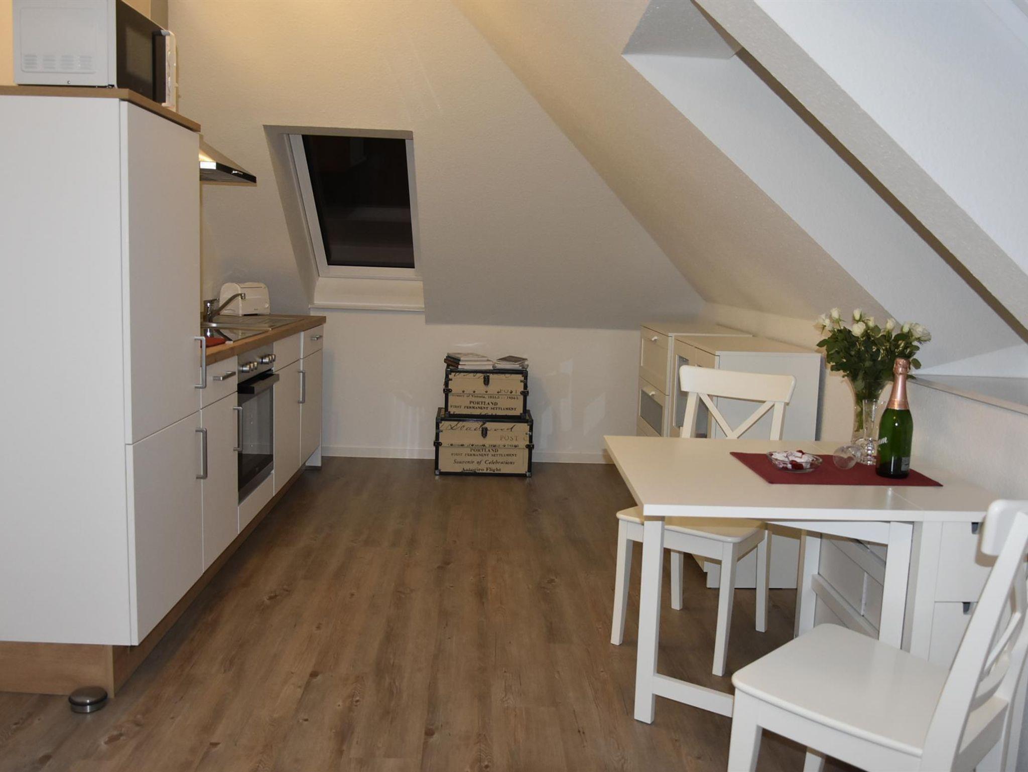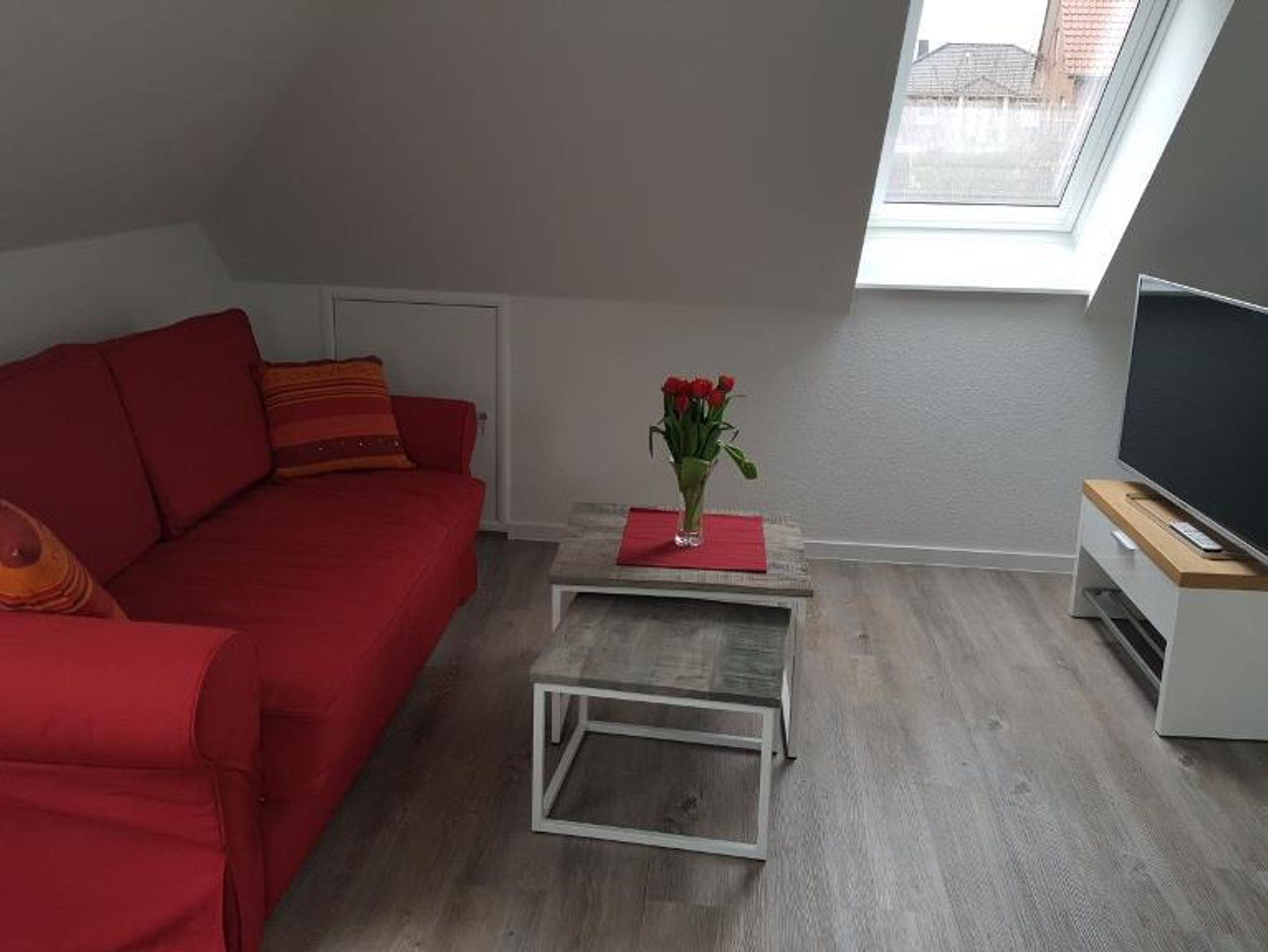 Die 40 qm große, helle Wohnung liegt im ersten Stock eines gepflegten Neubaus. Sie ist mit Liebe zum Detail ausgestattet. Der große Wohnraum verfügt über eine komplett ausgestattete Küchenzeile, einen Essbereich sowie eine gemütliche Sofa-Ecke (komfortables Schlafsofa) mit Farb-TV. Im Schlafzimmer steht ein franz.Bett. Das moderne Bad ist mit DU/WC ausgestattet.