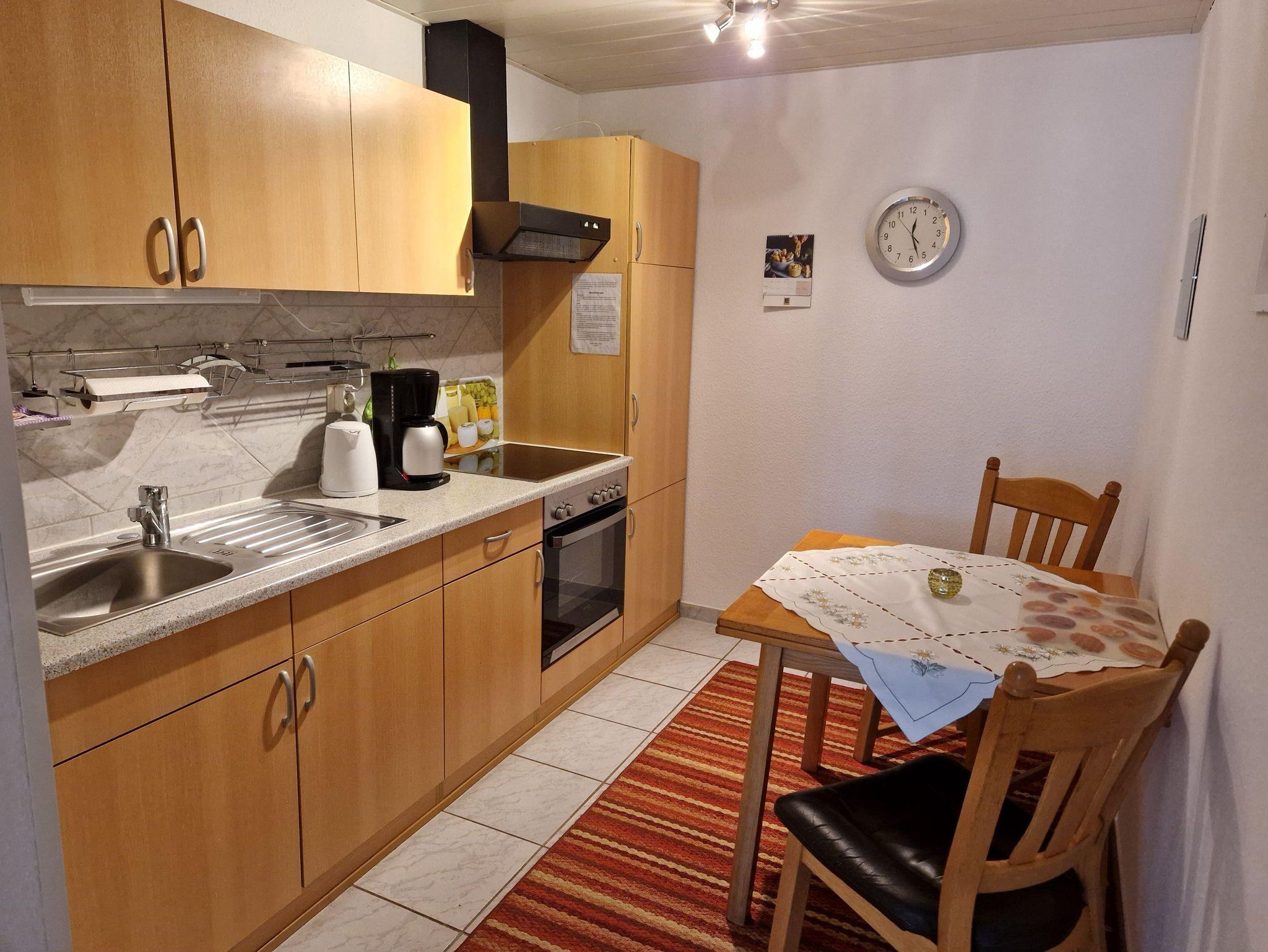 Komfortabel eingerichtete Ferienwohnung mit einem Schlafzimmer, einem Wohnzimmer sowie komplett ausgestatteter Küche.