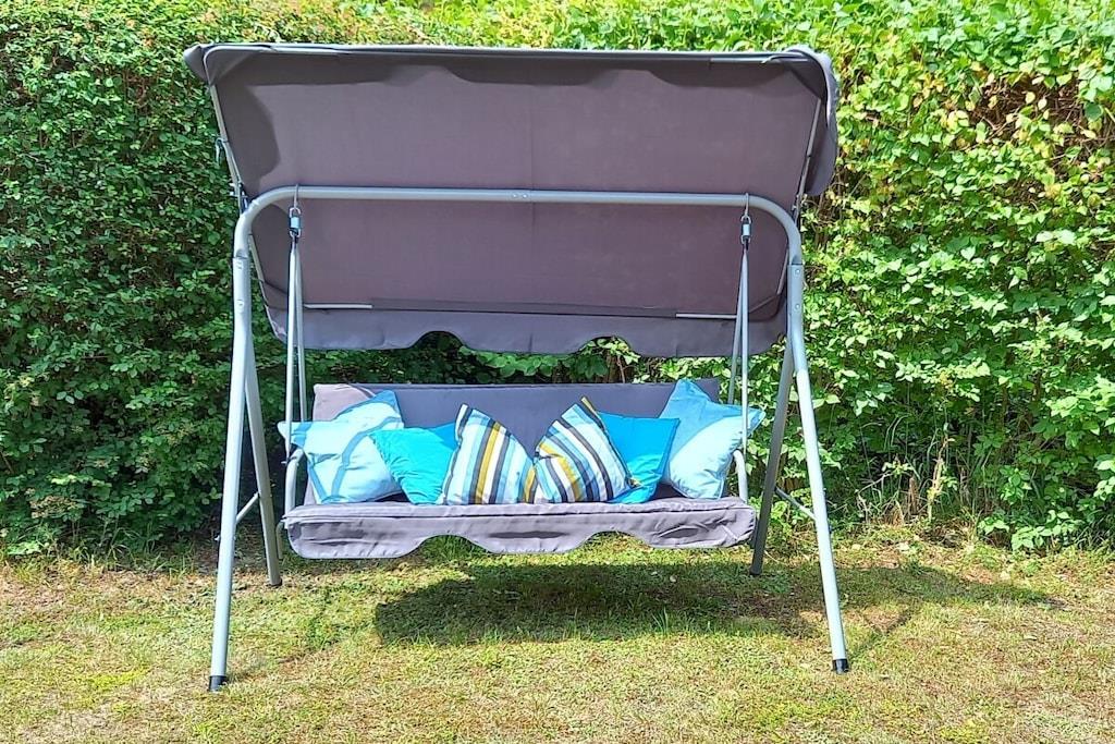 Stueetage: (entre(, ), Køkken(kogeplade, ovn, opvaskemaskine , køleskab, ), stue / spisestue(, Fjernsyn, spisebord), soveværelse(, dobbeltseng), guest toilet(, toilet, håndvask), pulterkammer(, tørreskab)) På 1. etage: (soveværelse(, enkeltseng, enkeltseng), soveværelse(, dobbeltseng), badeværelse(, toilet, bruser, håndvask)) , , , tørretumbler, vaskemaskine, varme, terrasse(havemøbler), have(Grill center, Græsplæne, havemøbler), parkering, tørreskab