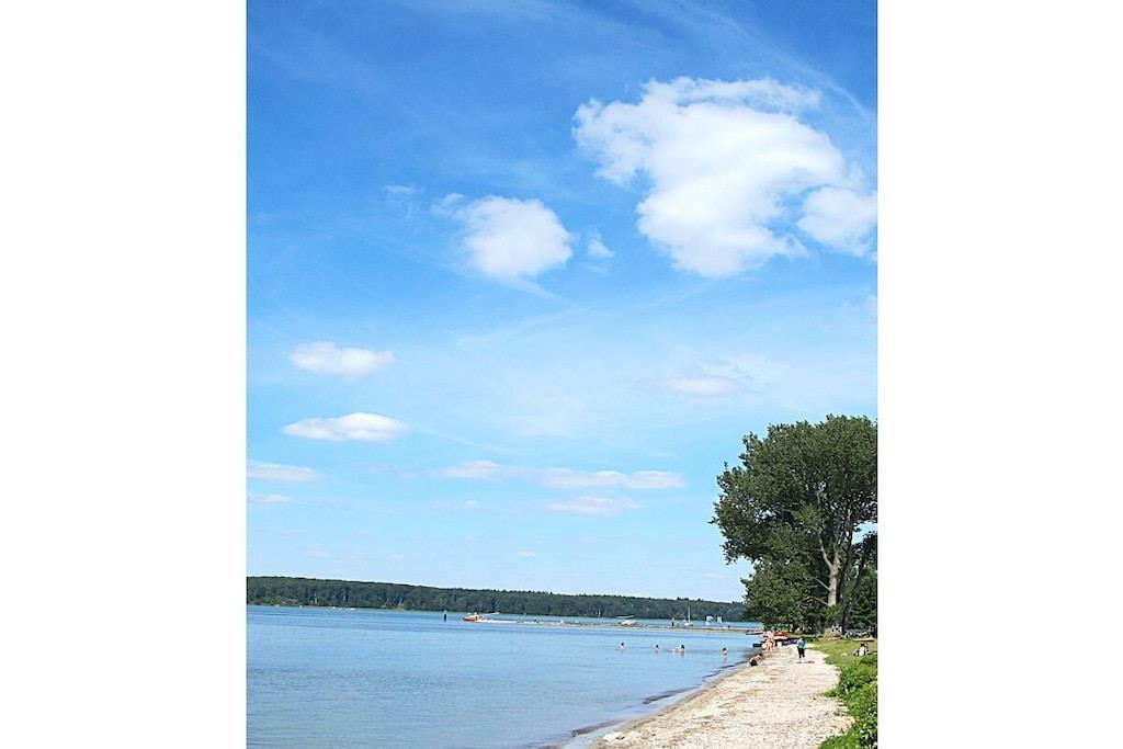 Feriehuset GutSeeZeit ligger i et magisk landskab med søer, enge, skove og marker, direkte ved Plau-søen i naturreservatet Mecklenburg Seenland. Det er en invitation til naturen, en tid til at sætte farten ned, slappe af og lade op. Plads til at trække vejret dybt, leve i nuet og genoplade batterierne. Her synes verden at stå stille et øjeblik. Et sted, hvor glæden bor, og den indre fred hersker. Oplev betagende solnedgange, mærk solen på huden og vinden i håret, mens du sejler, padler eller fisker. Tag på fisketur, udforsk søernes naturlige omgivelser på cykel eller til fods, observer vandfugle, og oplev de charmerende byer i området som Malchow, Plau am See, Röbel, Mirow og Waren (Müritz). Schwerin ligger kun 80 km væk, og Østersøen med sine fortryllende destinationer som Warnemünde, Kühlungsborn, Heiligendamm og Rostock ligger kun 98 km væk. Hold din ferie i de tusind søers land. ... Feriehuset ligger i ferieparken Lenzer Höh direkte ved Plau-søen med egen privat strand og badebro, kun 90 meter fra huset. Det dobbelthus byder på 89 kvadratmeter boligareal fordelt på to etager, en lille have med smukke blomstrende buske og en solrig, rolig vestvendt terrasse med komfortable havemøbler og parasol. I stueetagen træder du ind i huset gennem en gang, forbi gæstetoilet og bryggers, ind i den store, lyse stue med åbent køkken, en væg af vinduer og adgang til solterrassen. Stuen har en komfortabel hjørnesofa, et fladskærms-tv, et bord, et fuldt udstyret køkken og et spisebord med seks stole. Fra gangen træder du ind i det første soveværelse i stueetagen, der er møbleret med en dobbeltseng og et klædeskab. Ved siden af klædeskabet fører en lys trappe til øverste etage med yderligere to soveværelser og et badeværelse med bruser. Alle værelser har mindst ét vindue, og soveværelserne er udstyret med mørklægningsgardiner. Soveværelset ovenpå har en dobbeltseng med natborde og læselamper, et klædeskab med tre døre og en lænestol. Det tredje soveværelse har to enkeltsenge, natborde med læselamper, et klædeskab med to døre, en lænestol og et sidebord. Badeværelset har bruser, et badeværelsesskab med spejl, en hylde og et væghængt toilet. Det bilfri feriekompleks tilbyder en legeplads, et bordtennisrum, et vaskeri med vaskemaskiner og tørretumblere, et cykelkælderrum og gratis parkering. Lad hverdagen bag dig og slap af i feriehuset GuteSeeZeit.