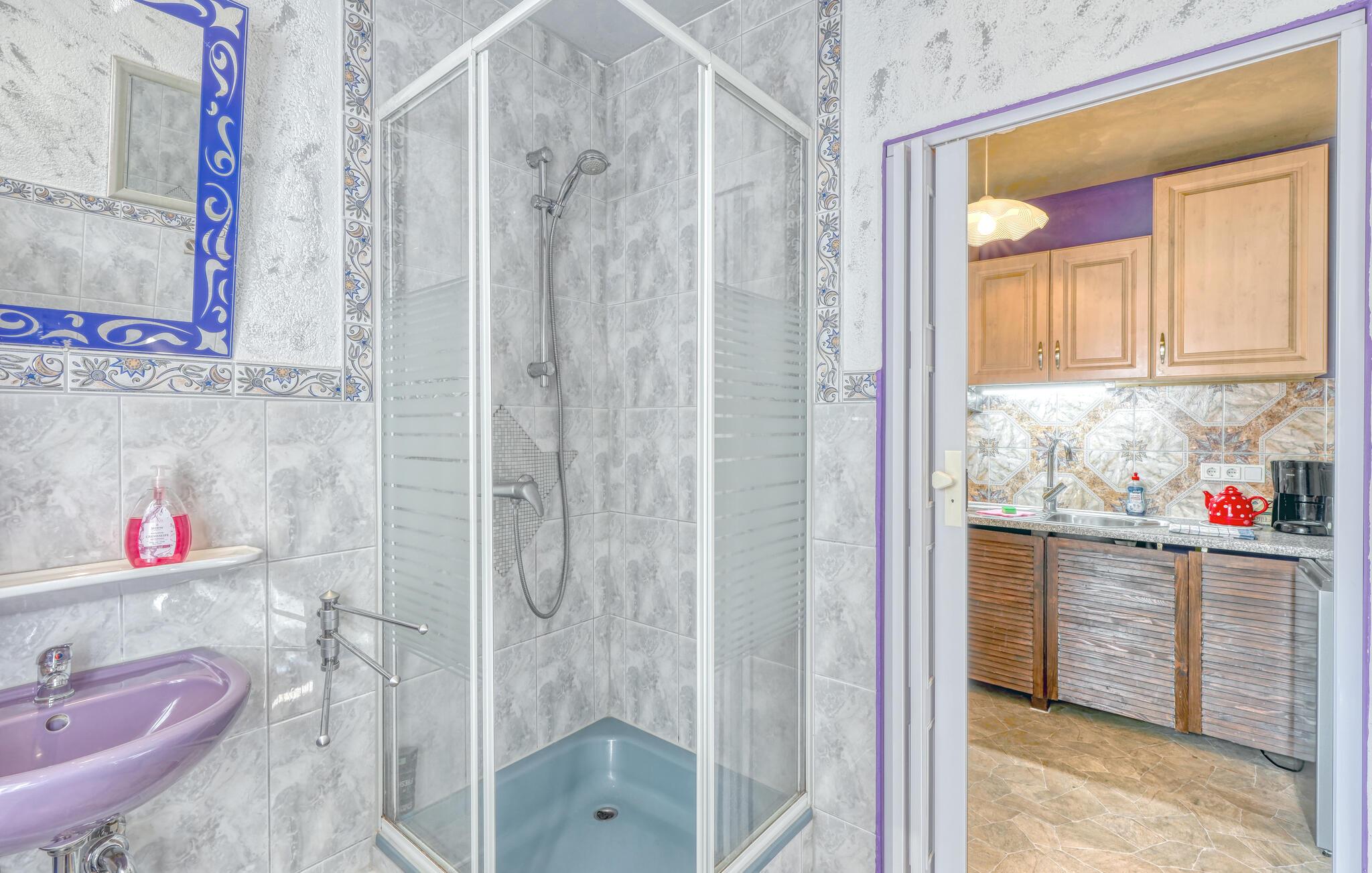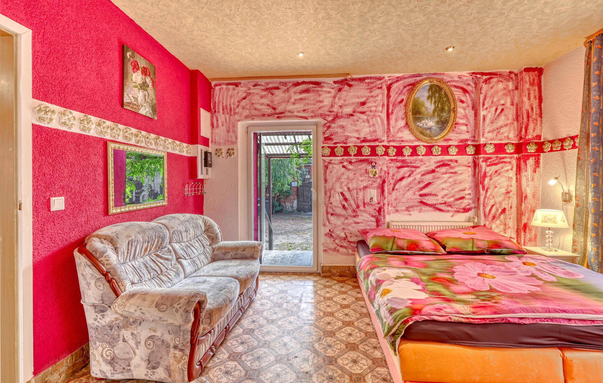 De tre ferielejligheder ligger i ejerboligen på en helt indhegnet grund på omkring 2.500 kvadratmeter rolig beliggenhed i Himmelpfort og har separat indgang. Der er omkring 500 meter til næste svømmeplads. En restaurant og et minimarked ligger også kun få hundrede meter væk. Større butikker og en togstation ligger cirka 8 km væk. Der er også et separat sommerhus (DZV452) på ejendommen. Alle lejligheder har WiFi, opholdsområde på ejendommen med grill, liggestole, cykelrum, bordtennisbord, bålplads, gynge og lille børnezoo samt parkeringsplads. ledig. En robåd er tilgængelig efter anmodning mod et gebyr, og en barneseng og høj stol er også tilgængelige efter anmodning. Slutrengøring og sengetøj er inkluderet i den samlede pris. Betales lokalt: el og vand efter forbrug, robåd (hvis relevant) 10 EUR/dag. Medbring venligst dine egne håndklæder. Kæledyr er ikke tilladt i denne ejendom. Den cirka 30 kvadratmeter store ferielejlighed kan rumme op til 3 personer (inklusive 1 lille barn op til maksimalt 2 år) og ligger i husets stueetage. Lejligheden er udstyret med kombineret opholds- og soveværelse med polstrede møbler, fladskærms-tv, dvd-afspiller, radio, dobbeltseng (1,40 m bred), spiseplads, separat køkken med el-komfur og ovn, køleskab med fryser, og et badeværelse med bruser, toilet og hårtørrer. Lejligheden har centralvarme og insektbeskyttelse foran vinduerne. Rygning er kun tilladt udendørs. Der er en lille møbleret terrasse foran huset til rådighed til brug i lejligheden. Barneseng og høj stol er kun tilgængelige efter anmodning! Himmelpfort er et statsanerkendt feriested i Brandenburg og ligger mellem flere søer. Himmelpfort er en idyllisk landsby midt i naturparken Uckermärkische Seen med små butikker, restauranter og mange turistattraktioner. Det drejer sig blandt andet om klosterhaven med interessant information om lægeplanter og urter, passagerbådsture på vandet, padle- og bådture, tømmerflådeture, trolleyture og lystfiskere får også noget for pengene i de vandrige omgivelser. Vandvandrere kan planlægge deres ture i regionen via de forskellige søer op til Havel og dermed længere nedstrøms. Langdistancecykelstien Berlin-København går gennem byen Himmelpfort er også kendt som en julelandsby langt ud over landets grænser. Hvert år i adventstiden valfarter mange besøgende til byen for at besøge julemanden og de julemarkeder, der finder sted. Det officielle juleposthus ligger også i Himmelpfort. Hundredtusindvis af ønskelister fra børn ankommer der hvert år. I det omkringliggende område er der større byer som Fürstenberg/Havel (ca. 10 km) eller Lychen (ca. 12 km), som har mange butikker, caféer, restauranter og seværdigheder at byde på.