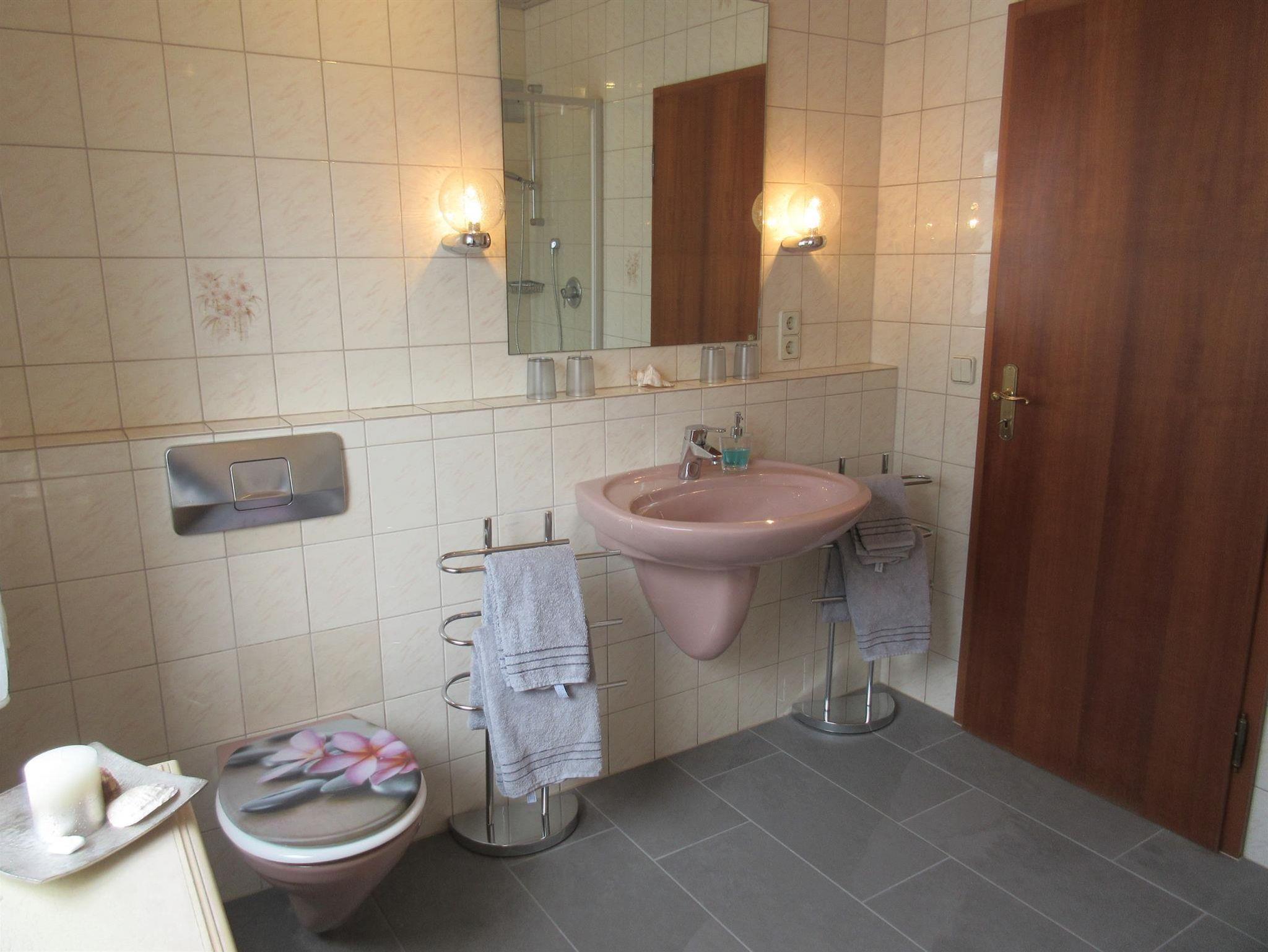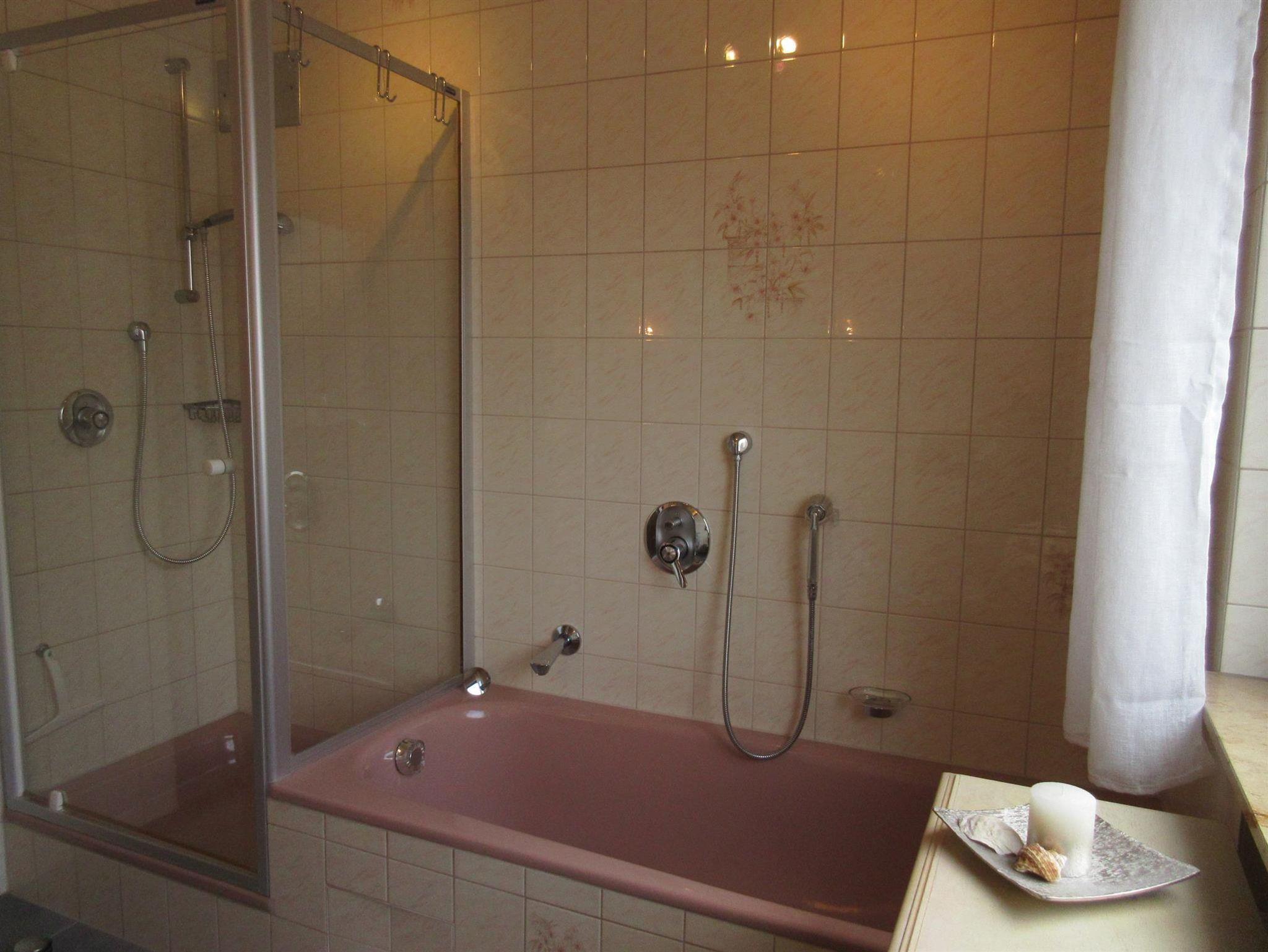 • Bad mit Waschbecken - Dusche - Badewanne - WC - großes Fenster