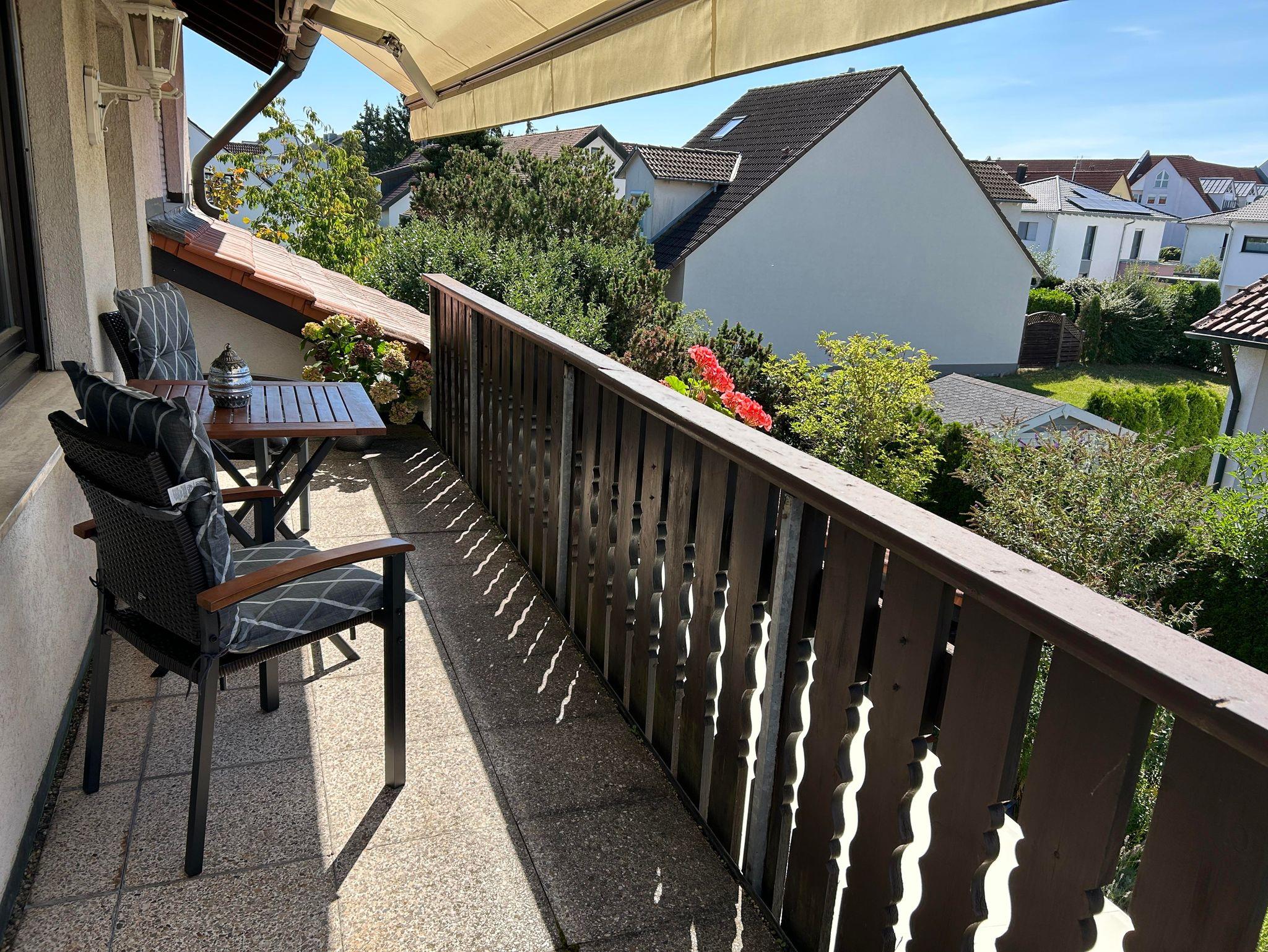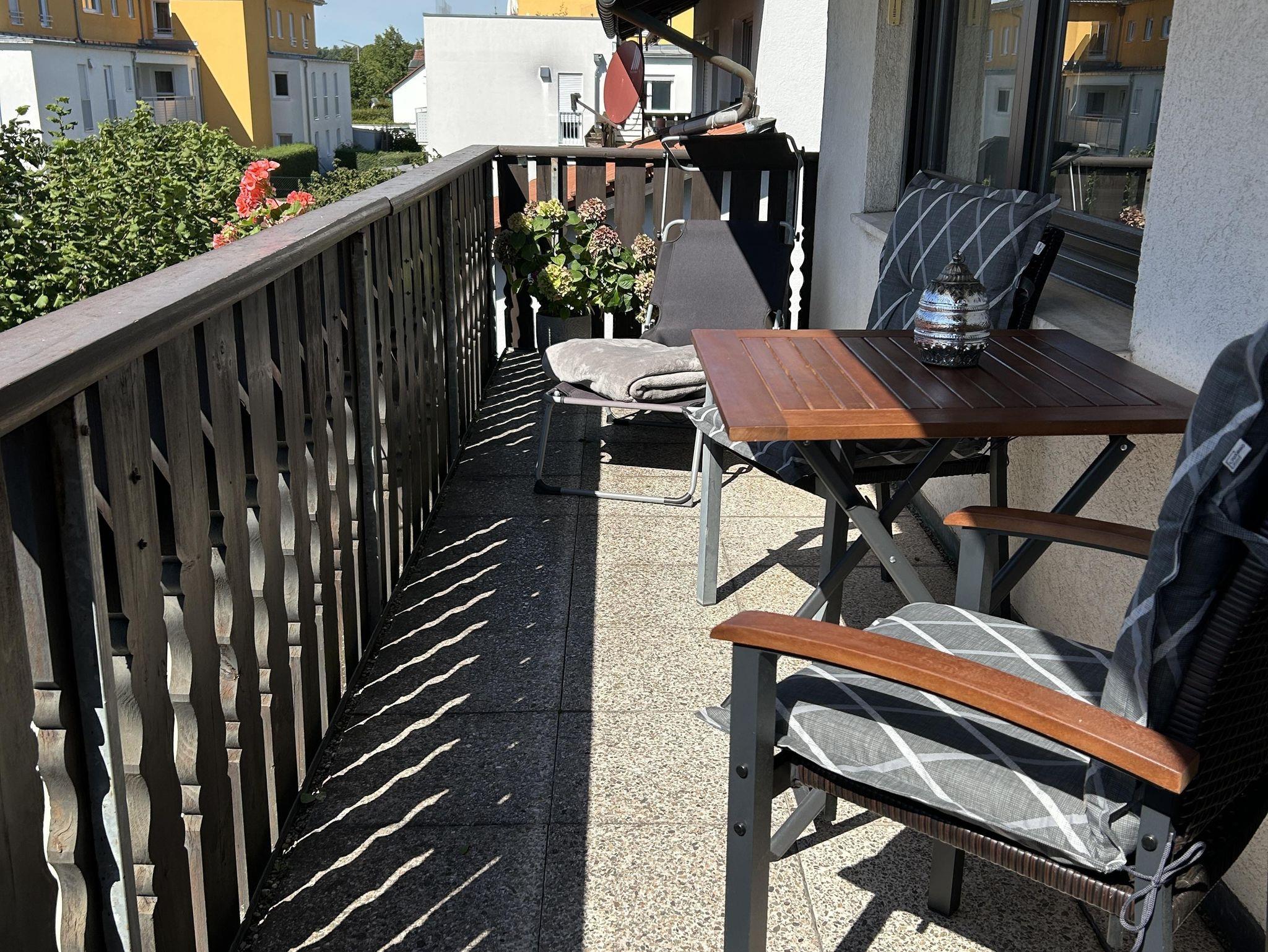 • großer Südbalkon mit Tisch und Stühlen