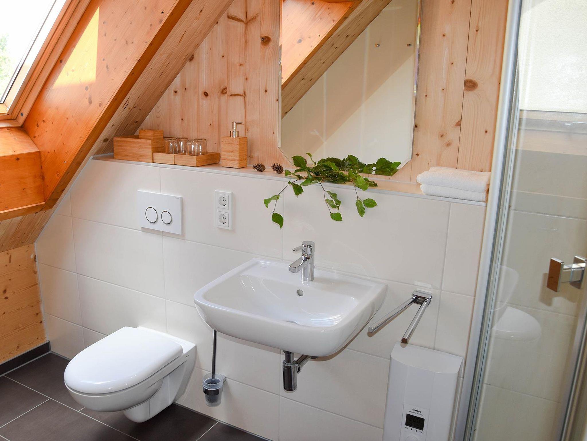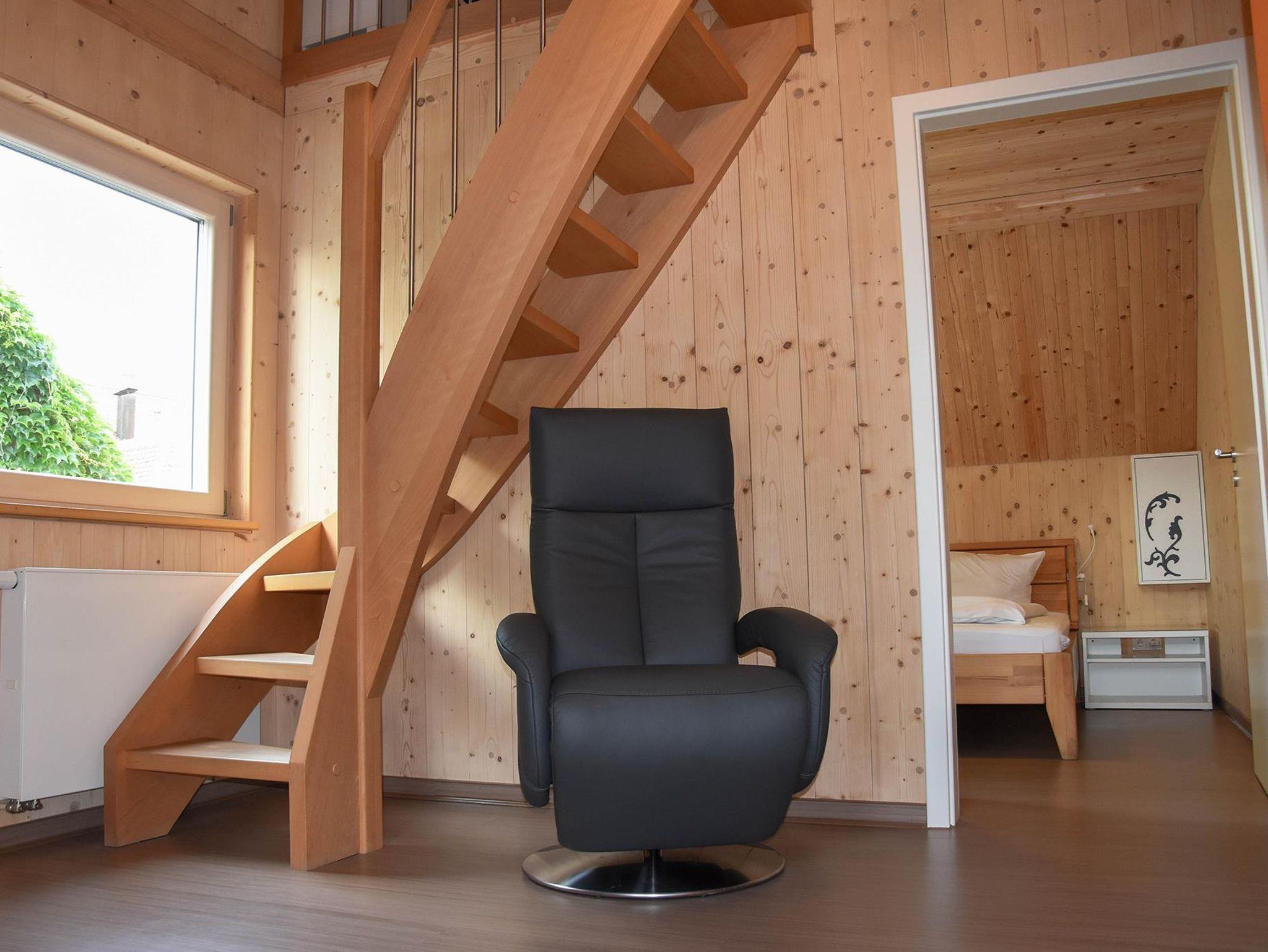 Die Wohnung befindet sich im Obergeschoss. 39 Quadratmeter Wohnfläche bieten Ihnen einen unvergesslichen Urlaub oder Aufenthalt. In dem Schlafzimmer befindet sich ein Doppelbett, ein kleiner Schrank und ein Flachbild Sat TV. Eine weitere Schlafmöglichkeit gibt es auf der Galerie mit zwei Einzelbetten + TV. Die Kochnische ist ausgestattet mit Kühlschrank, Kaffeemaschine, Küchenuntensilien, Wasserkocher und Kochfeld. Das Bad verfügt über eine Dusche, WC und Haartrockner. Das Highlight der Wohnung ist der Balkon mit Gartenmöbeln und Zugang über Schlafzimmer. WLAN nutzen Sie in allen Bereichen der Unterkunft kostenfrei. Privatparkplätze stehen an der Unterkunft ebenfalls zur Verfügung.
