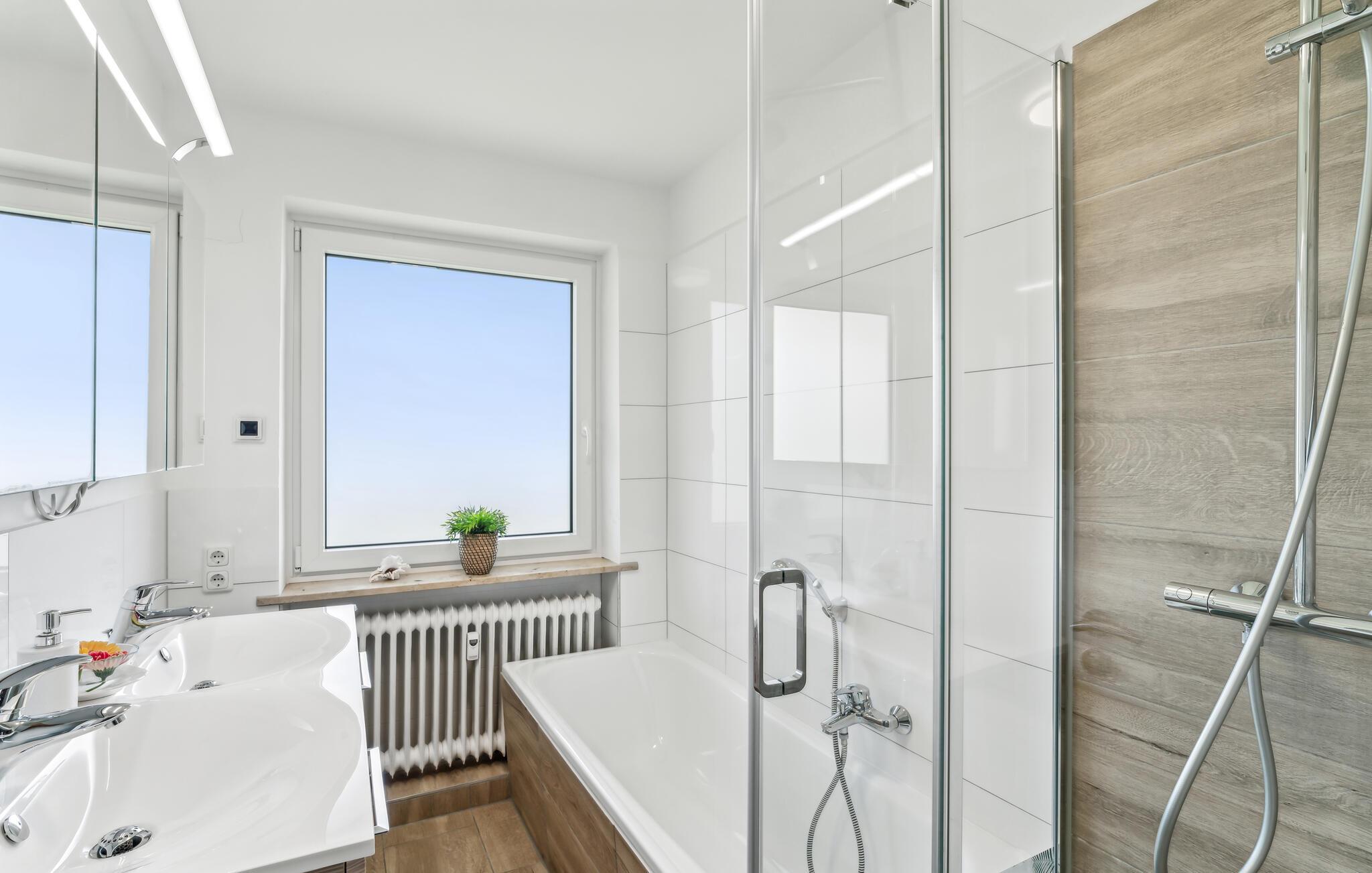 Badeværelse (nr. 1) - Varmt og koldt vand. Bruser og badekar