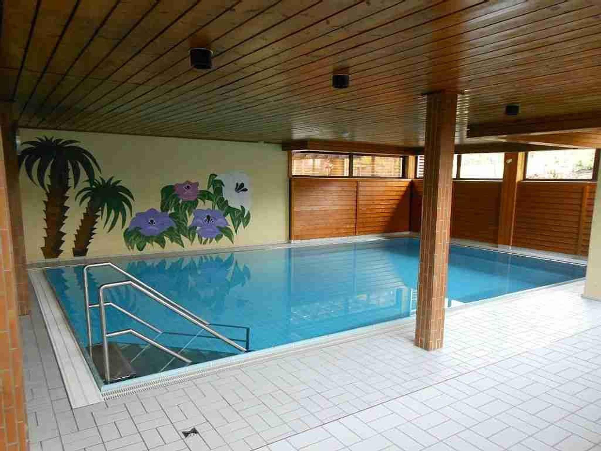 Ein besonderes Angebot im Terrassenhaus ist das Hallenbad mit Sauna (2 Saunen und Ruheräume), Tischtennisraum, Fitnessraum, der großzügige Spielplatz mit kleiner Minigolfanlage sowie der Tennisplatz direkt vor der Haustüre. (Saunen und Hallenbad sind im November wegen jährlicher Revisionsarbeiten geschlossen.)