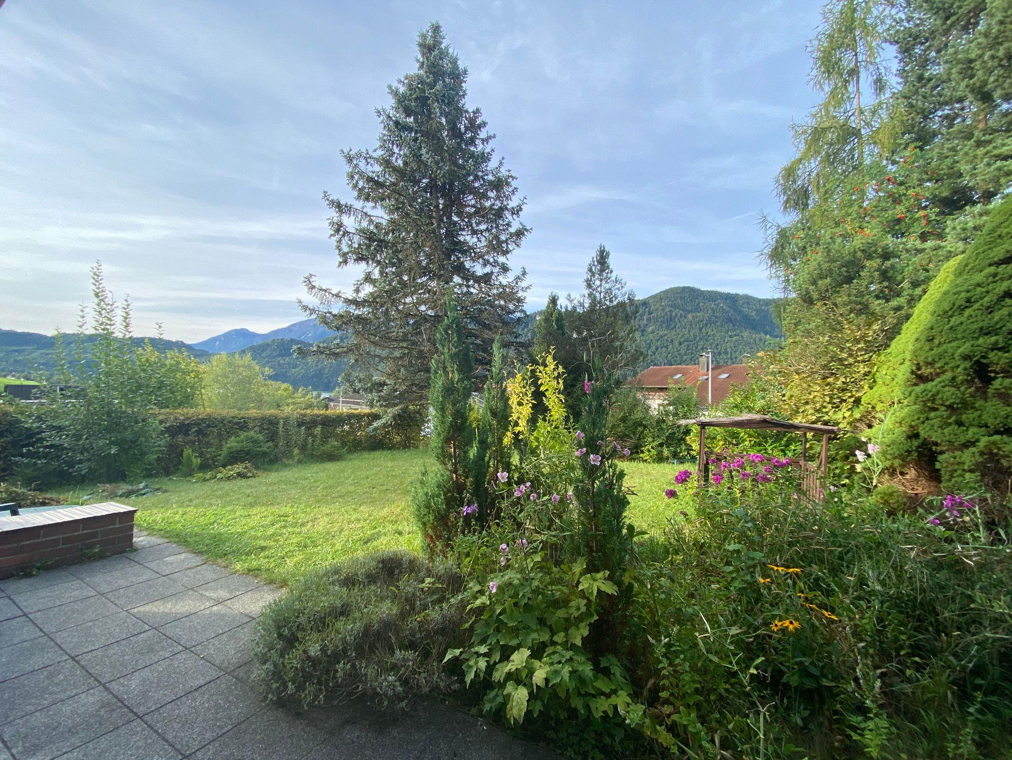 • Terrasse (Seeblick) und großer Garten mit Wiese und Baumbestand