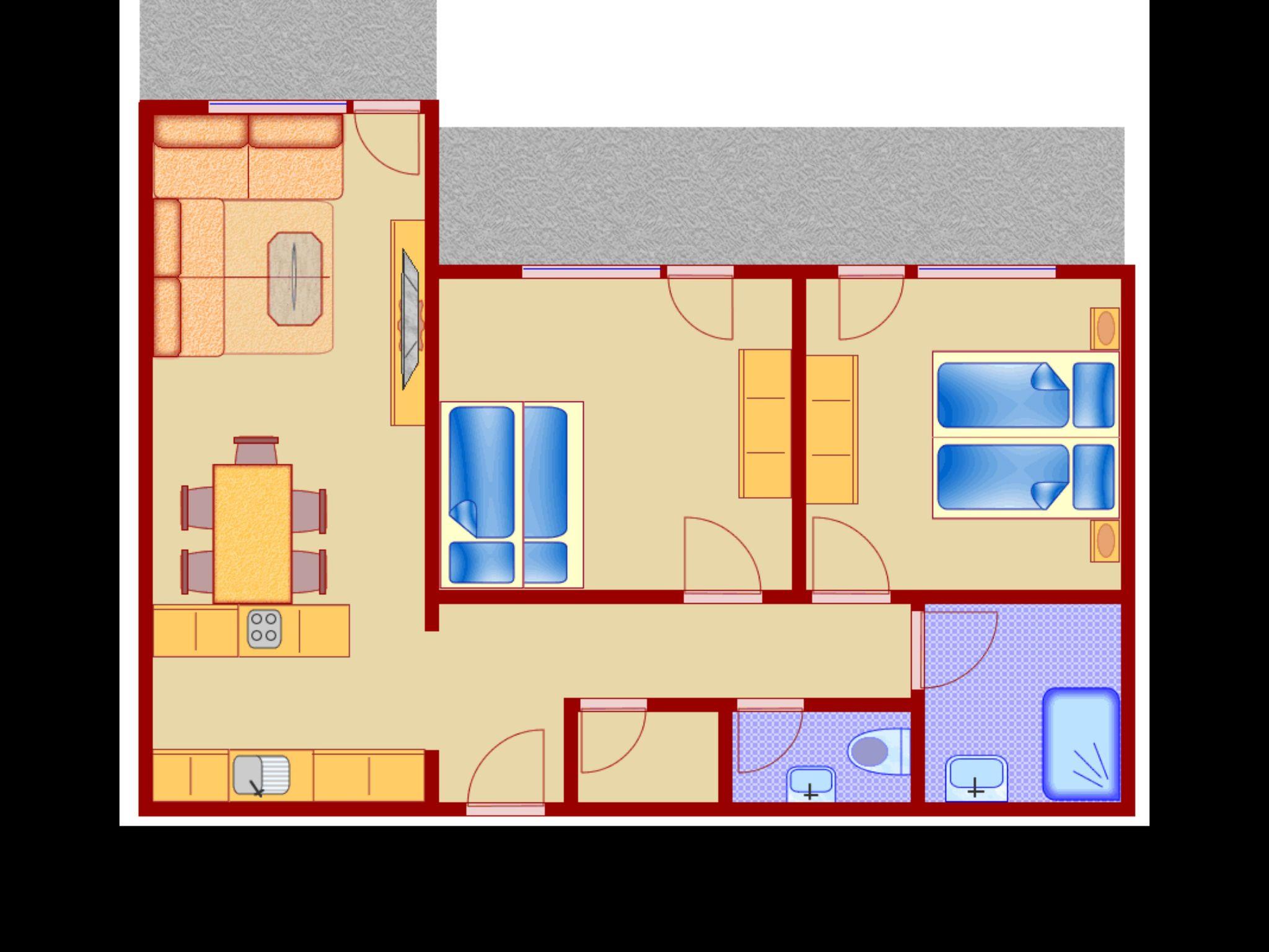 • 2 freundliche Schlafzimmer mit bequemen Betten (insgesamt 5 Schlafplätze) und ausreichend Stauflächen für Ihr Gepäck