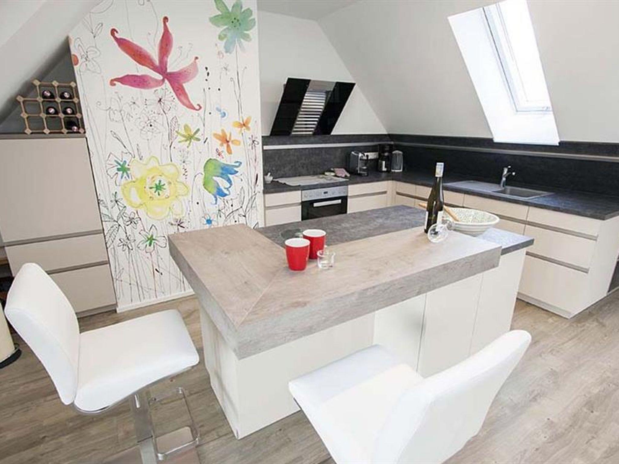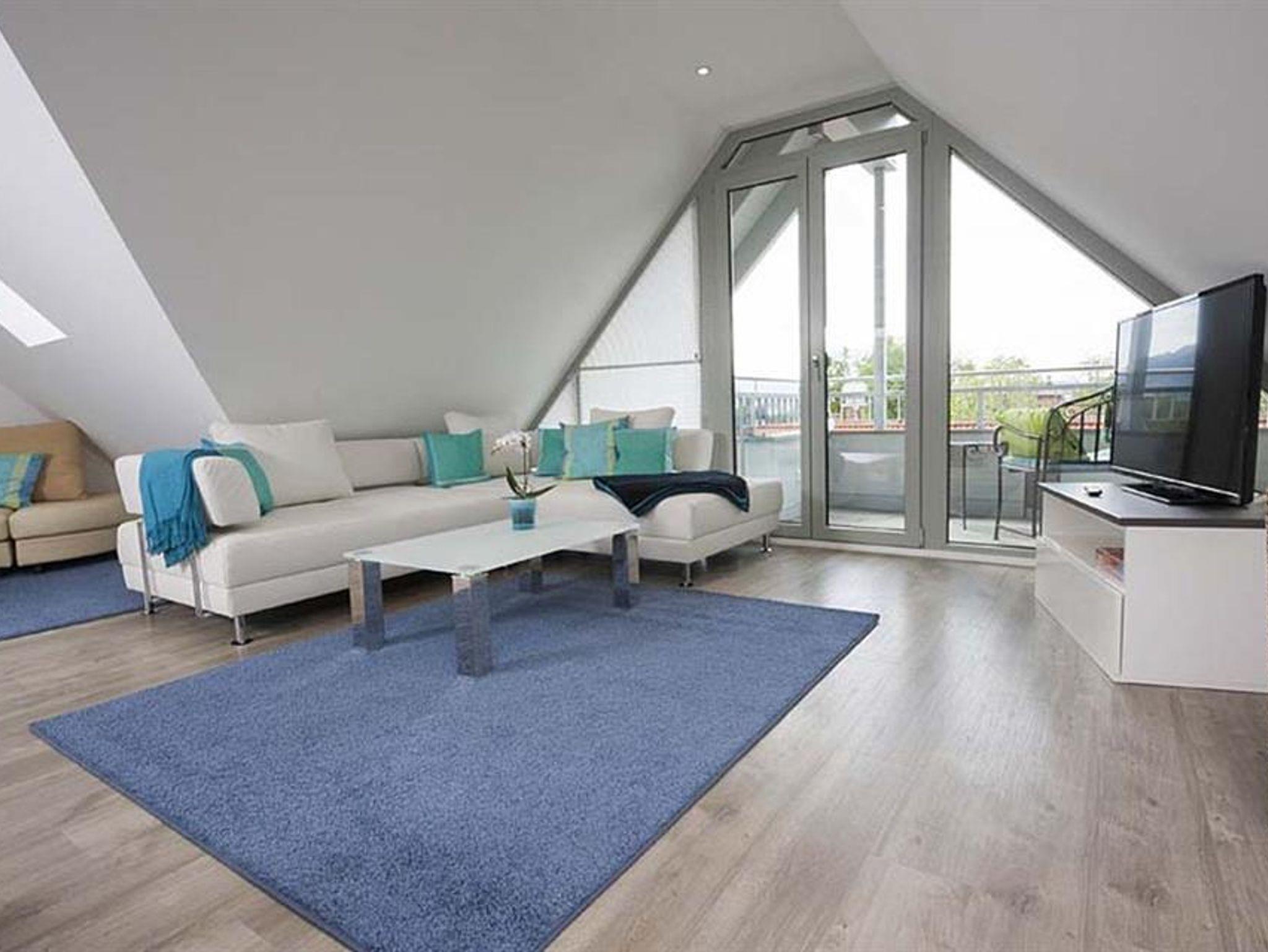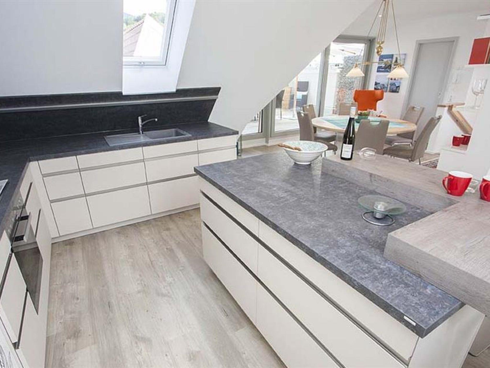 Für Entspannung im Freien sorgen zwei Balkone und eine 40 m² große Terrasse. Im Obergeschoss befindet sich die moderne, voll ausgestattete Küche (inklusive Geschirrspüler, Backofen, Mikrowelle, Kaffeemaschine u.v.m.), sowie ein großzügiger Wohnbereich auf 80 m² mit gemütlicher Kuschelecke und einem einladenden Essbereich.