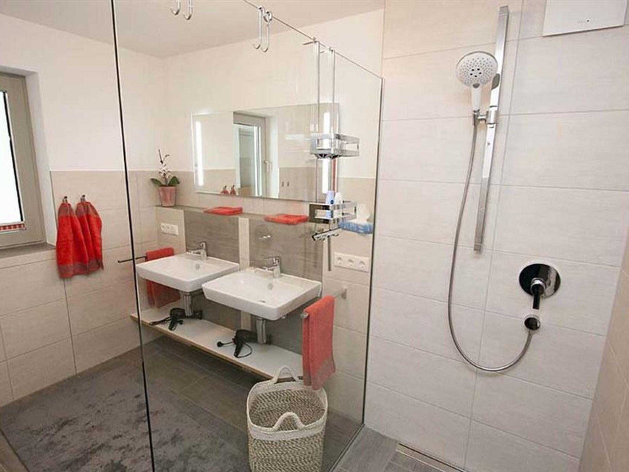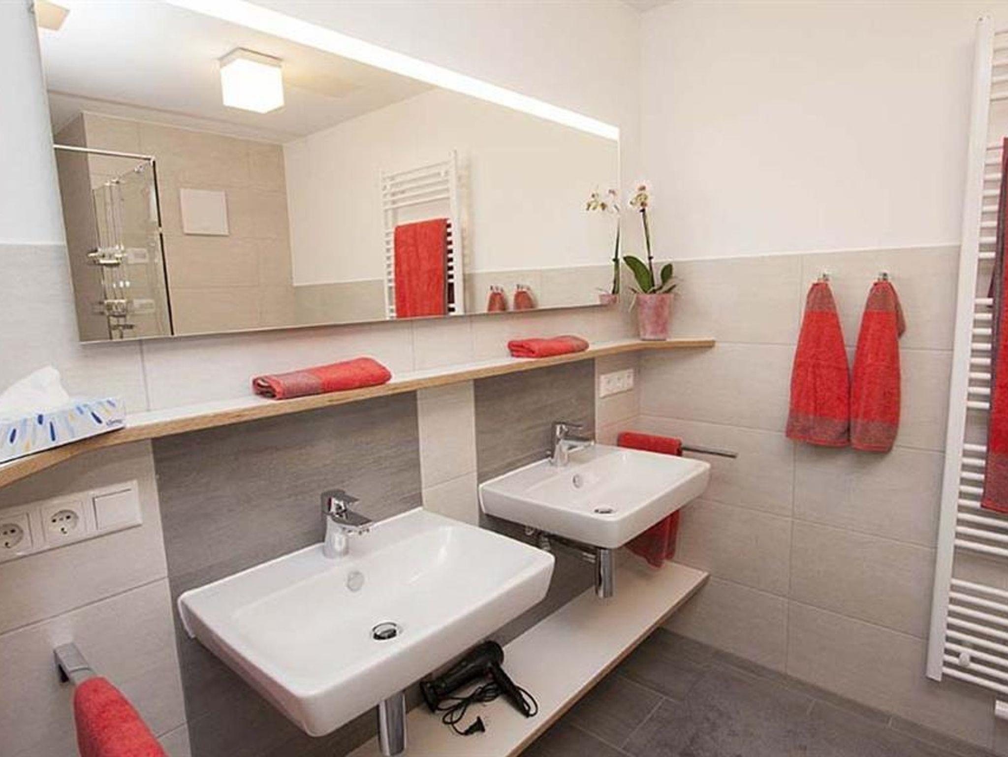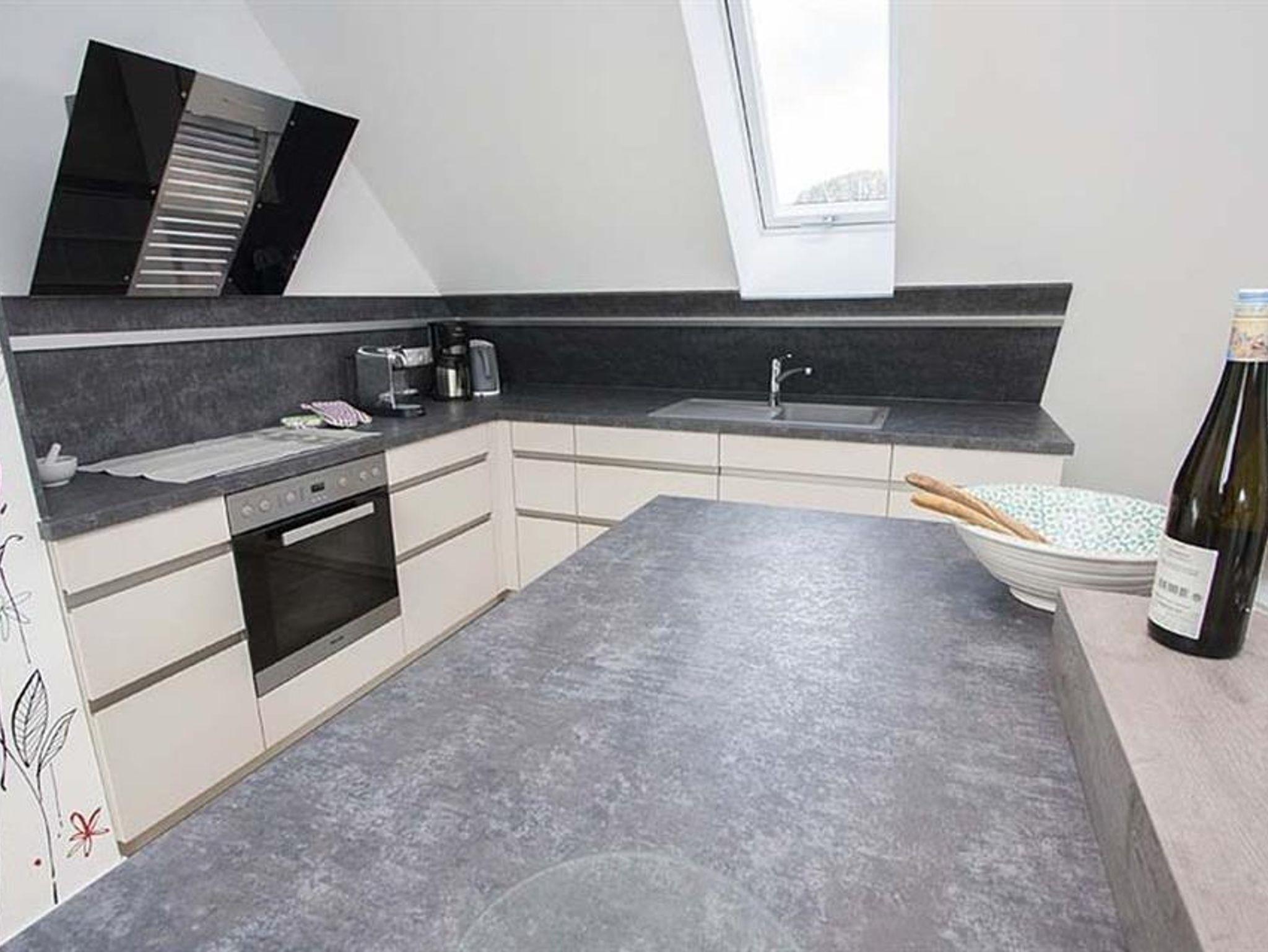 Für Entspannung im Freien sorgen zwei Balkone und eine 40 m² große Terrasse. Im Obergeschoss befindet sich die moderne, voll ausgestattete Küche (inklusive Geschirrspüler, Backofen, Mikrowelle, Kaffeemaschine u.v.m.), sowie ein großzügiger Wohnbereich auf 80 m² mit gemütlicher Kuschelecke und einem einladenden Essbereich.