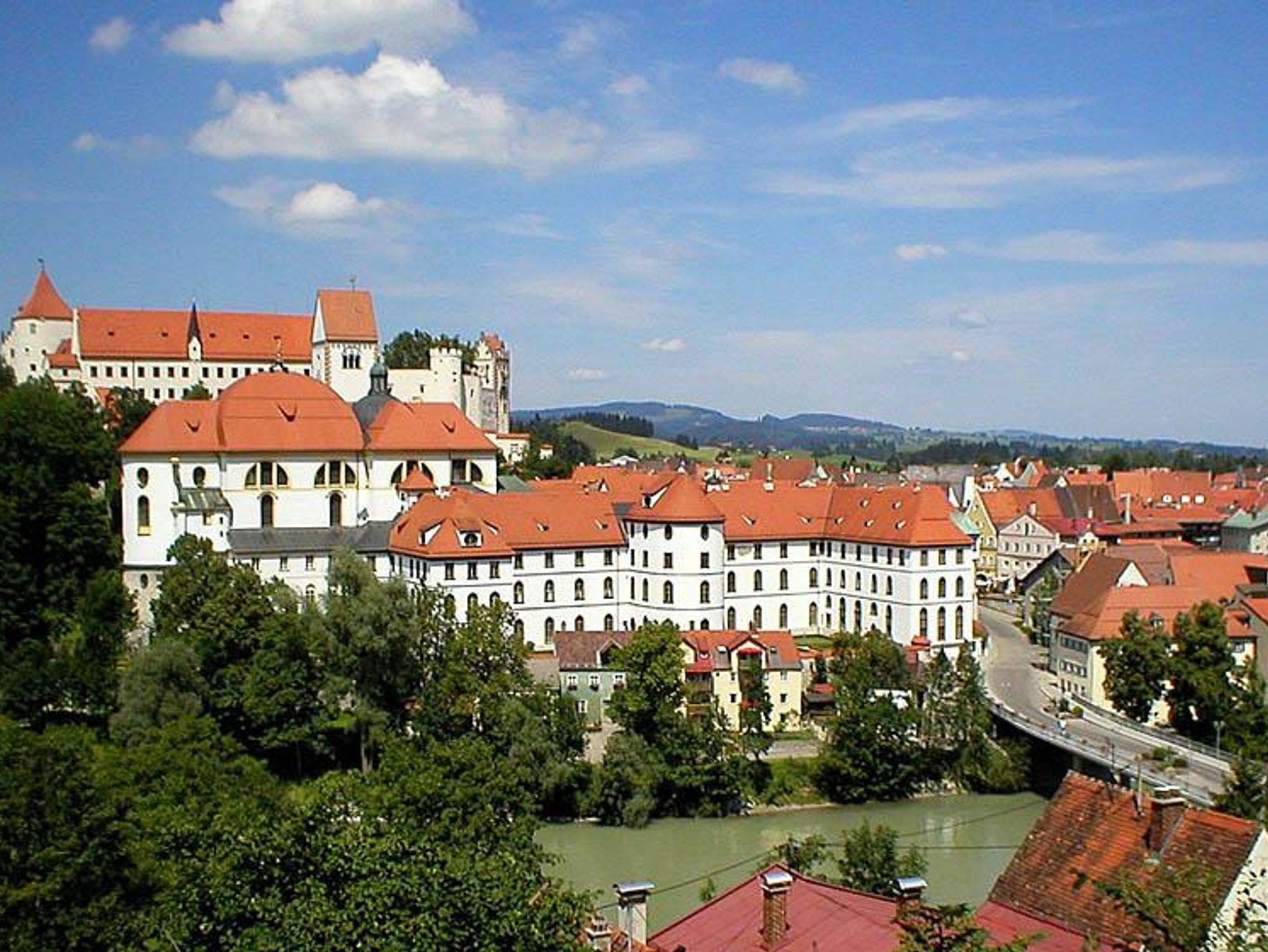 Die Ferienwohnung Wanner liegt zentral in der Altstadt von Füssen im Allgäu, umgeben von historischen Sehenswürdigkeiten, Cafés und Geschäften. Nur wenige Minuten entfernt befinden sich der Lechfall und der Forggensee, die zu Wanderungen, Bootsfahrten und entspannten Spaziergängen einladen. Die weltberühmten Königsschlösser Neuschwanstein und Hohenschwangau sind schnell erreichbar und ein Muss für jeden Besucher.