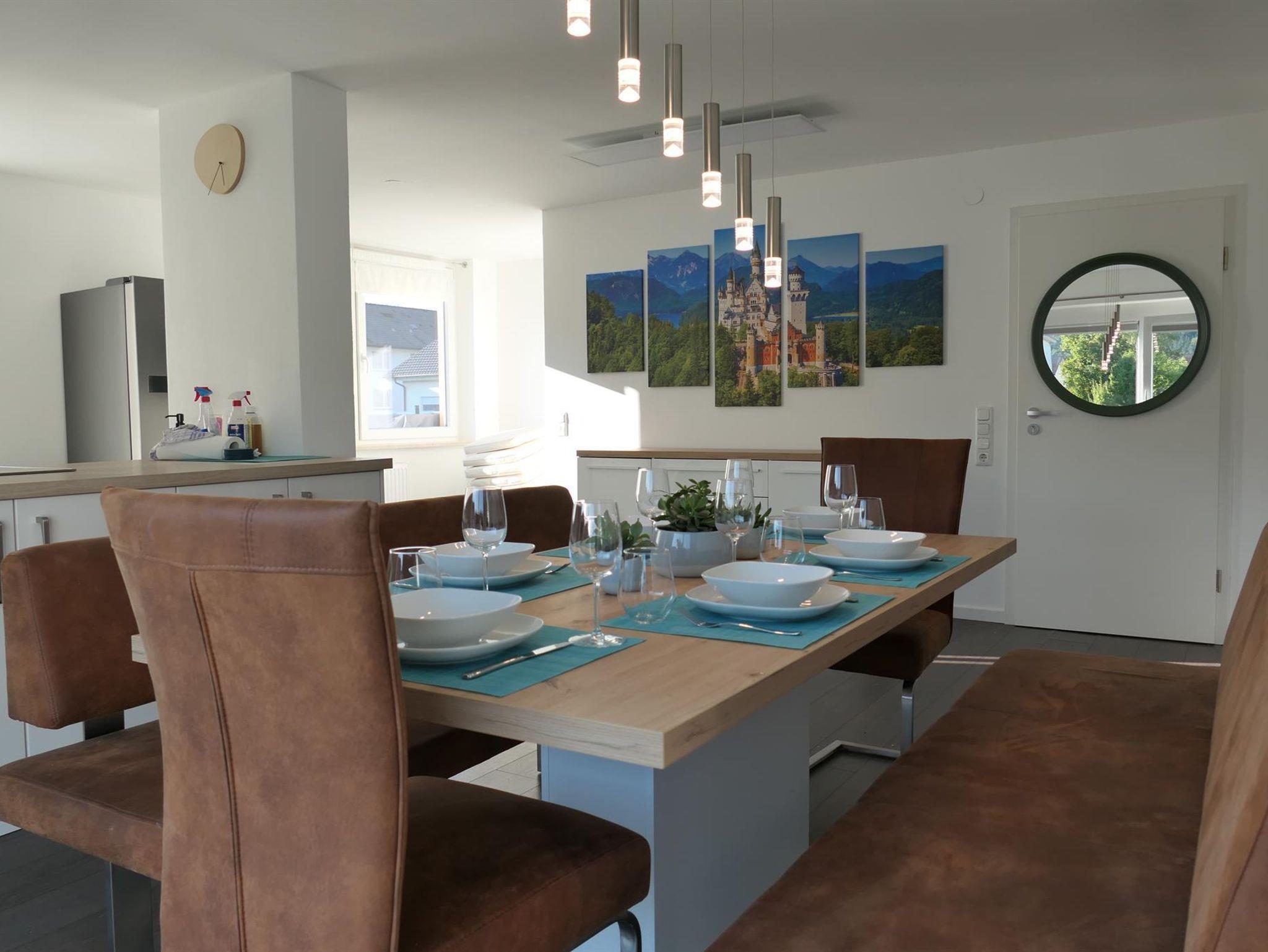 Gemütliches, ruhiges und sauberes Haus im Herzen von Füssen in modernem Stil, 1 km vom Zentrum entfernt, 5 km zu den Schlösser Neuschwanstein und Hohenschwangau, Bushaltestelle am Haus, Fahrradverleih, Bäckerei, Supermarkt und Restaurant 200m vom Haus entfernt, Hol- und Bringservice vom Bahnhof, kostenfreie Parkmöglichkeiten am Haus, Nichtraucherhaus, Fahrräder stehen in der Garage sicher, Eisstadion 10 Gehminuten entfernt.