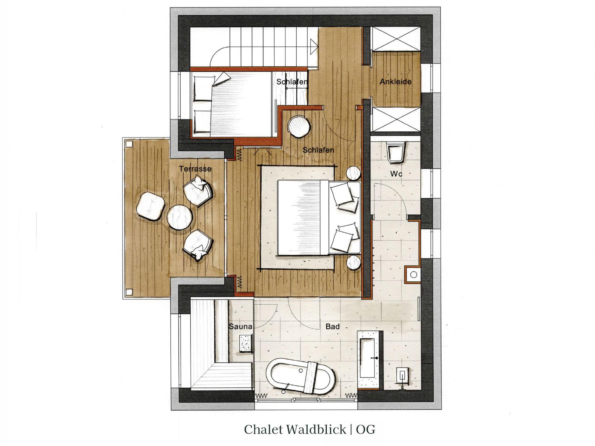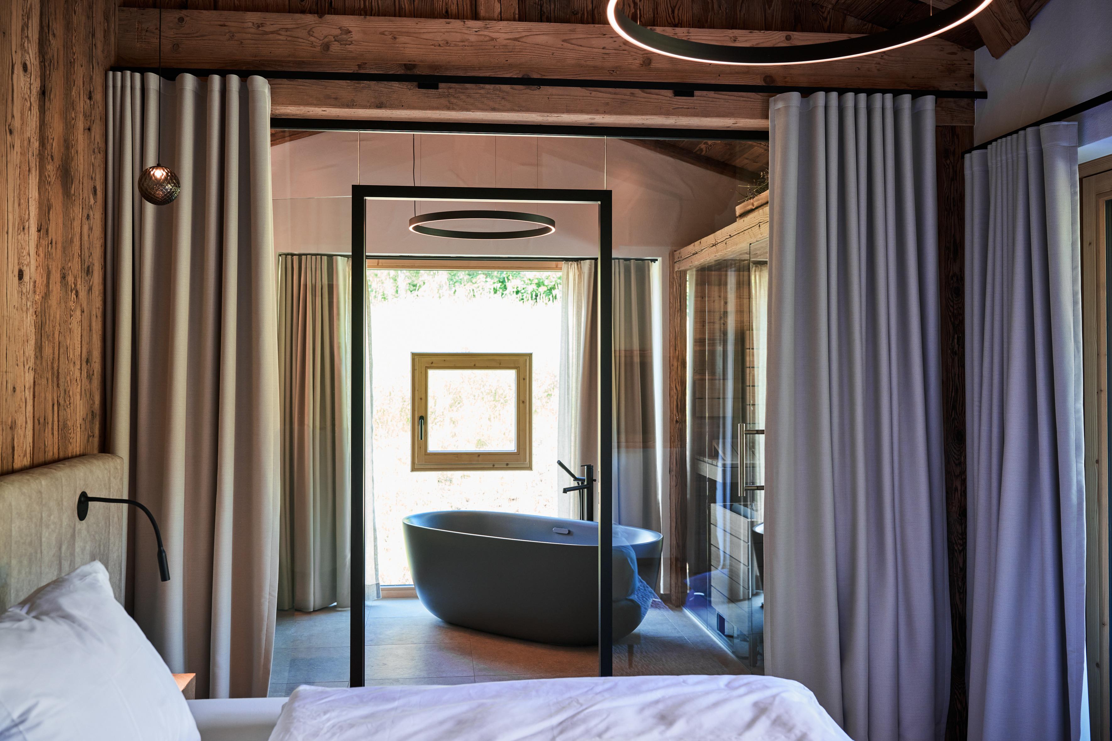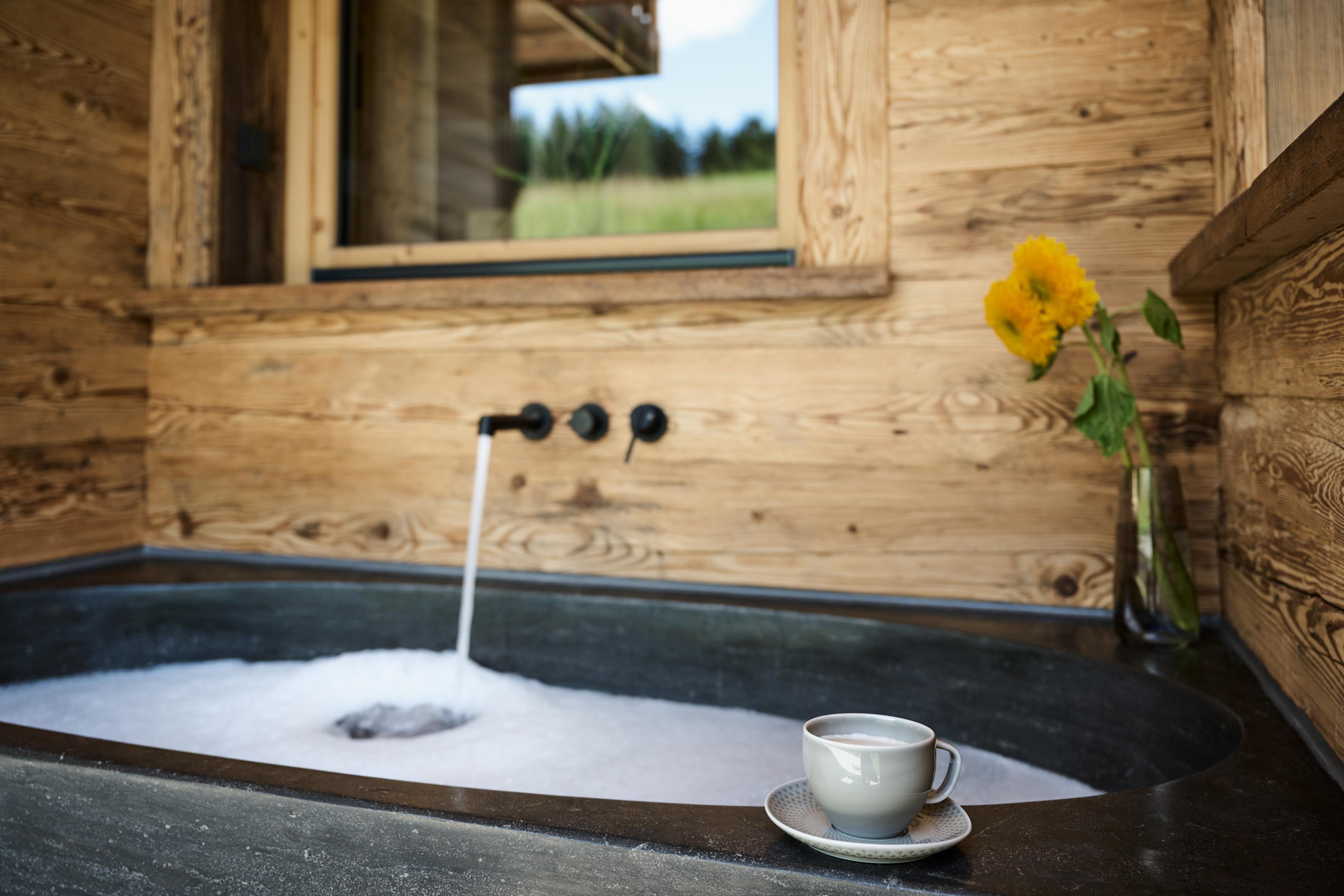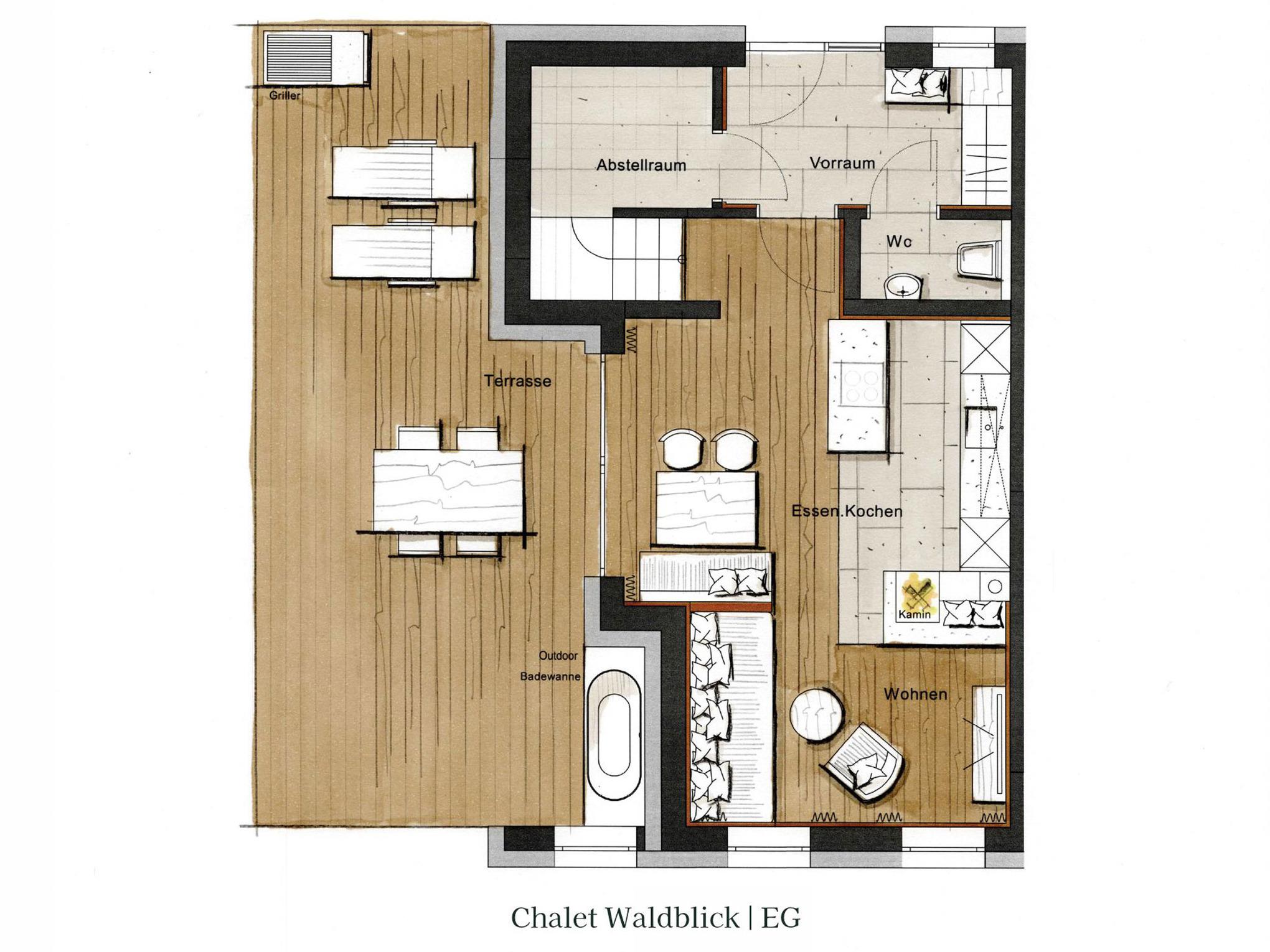 Willkommen im Fünf-Sterne-Chalet Waldblick – ein Ort für romantische Auszeiten und echte Entspannung. Auf großzügigen 90 Quadratmetern erwarten Sie hochwertiges Design, natürliche Materialien und eine Atmosphäre, die Geborgenheit und stilvolle Eleganz vereint. Der große Balkon eröffnet Ihnen einen freien Blick auf den angrenzenden Wald – ein Panorama, das Ruhe atmet und Sie augenblicklich zur Gelassenheit einlädt. Ein besonderes Highlight ist die freistehende Outdoor-Panoramabadewanne – der perfekte Ort für unvergessliche Momente unter freiem Himmel, allein oder zu zweit. Auch die private Sauna mit Blick ins Grüne schenkt Ihnen tiefe Entspannung und ist mit zwei kraftvollen Infrarot-Rückenstrahlern ausgestattet, die gezielt Verspannungen lösen und für wohltuende Wärme sorgen.