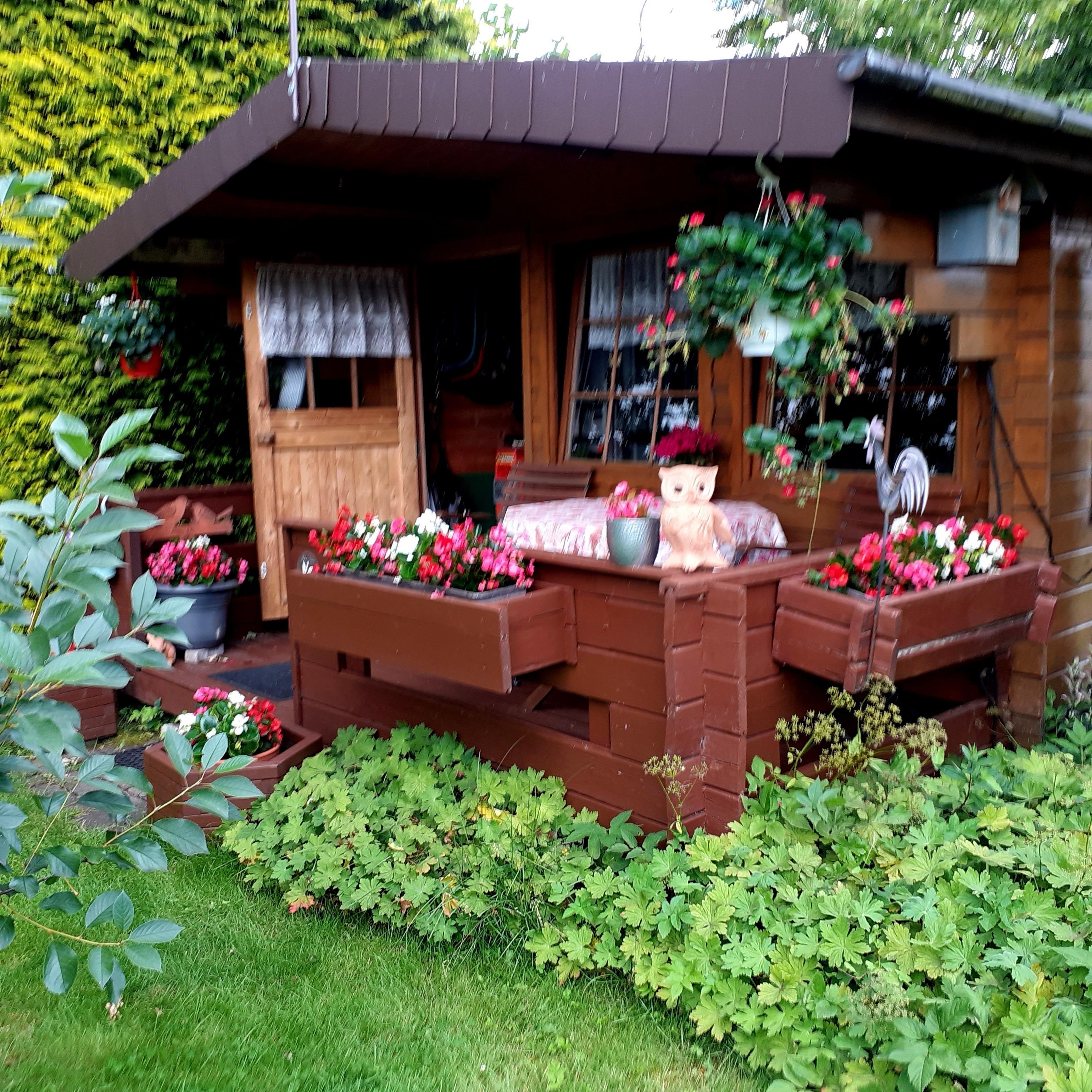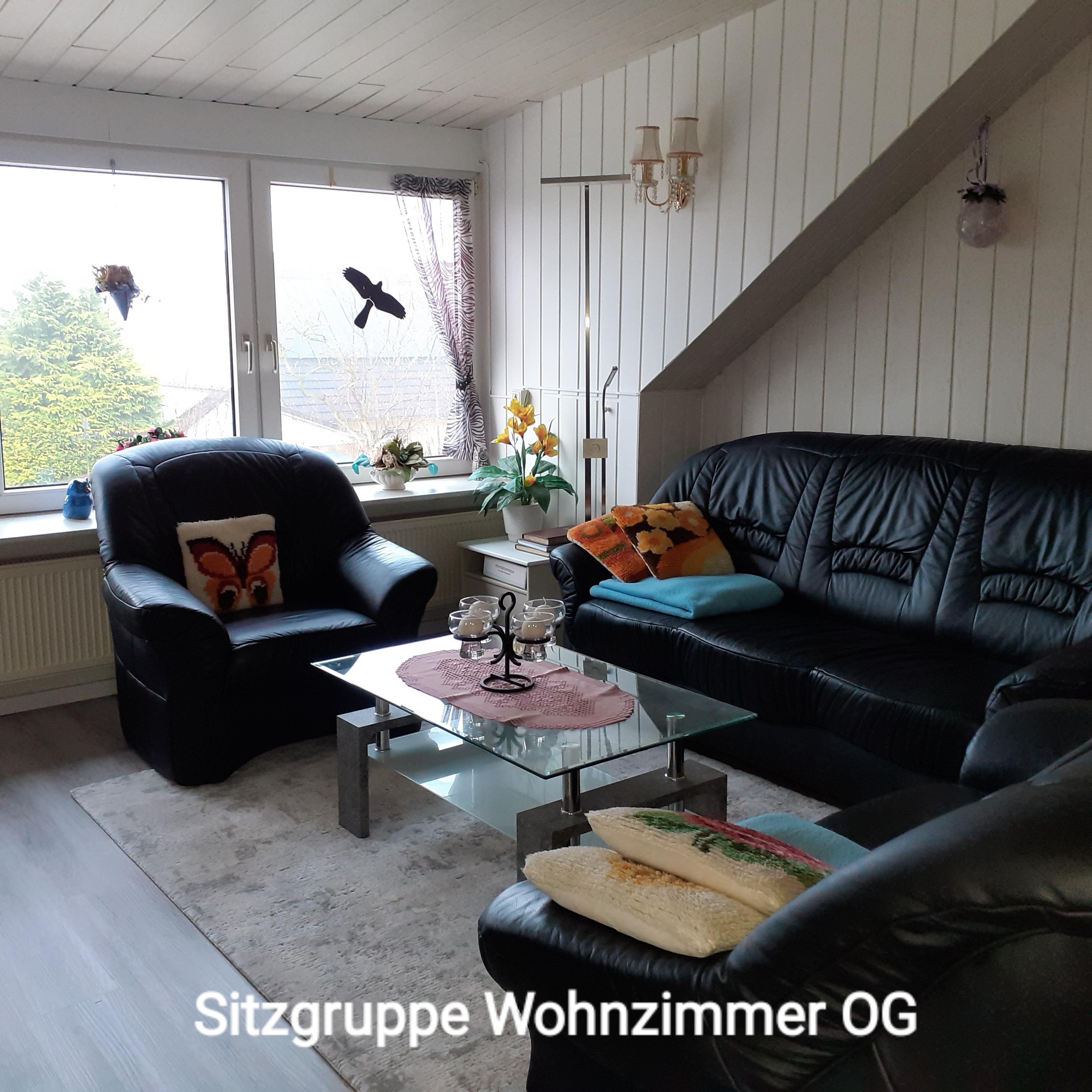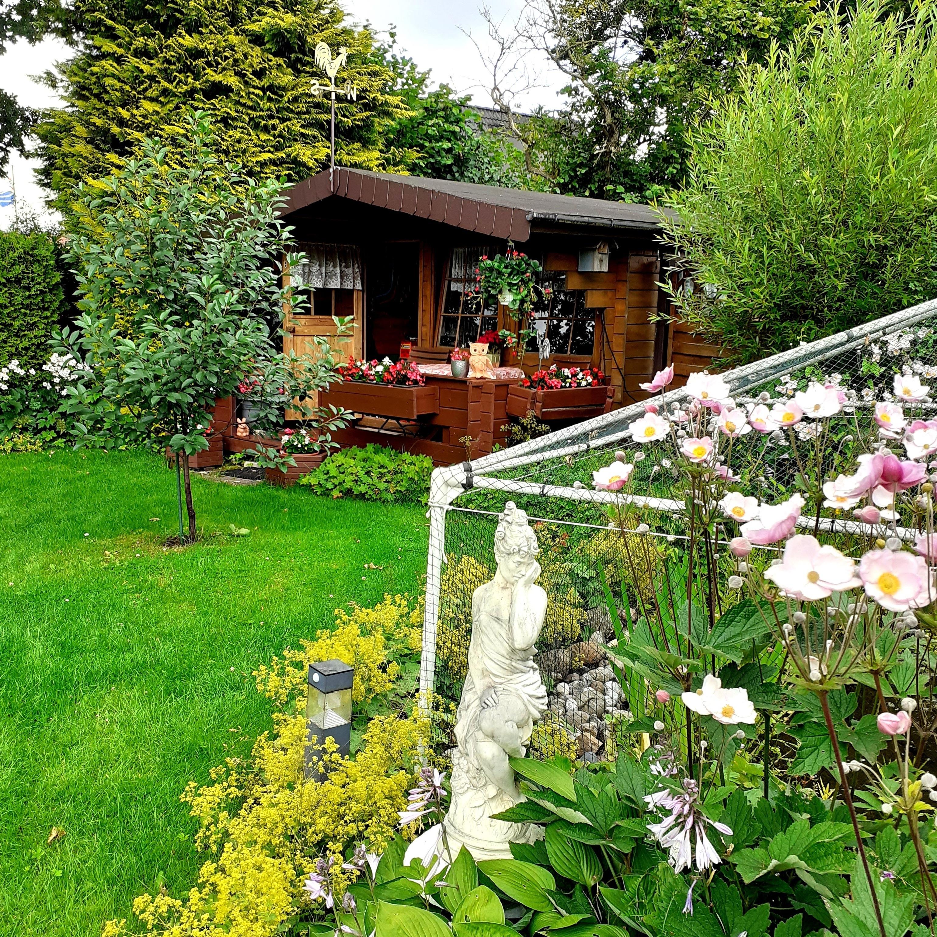 Die liebevoll eingerichtete Ferienwohnung liegt im Obergeschoss eines ruhigen Einfamilienhauses mit Terrasse, Garten, Teich mit Fischbesatz und Blockhütte (Aufenthaltsort für Gäste).