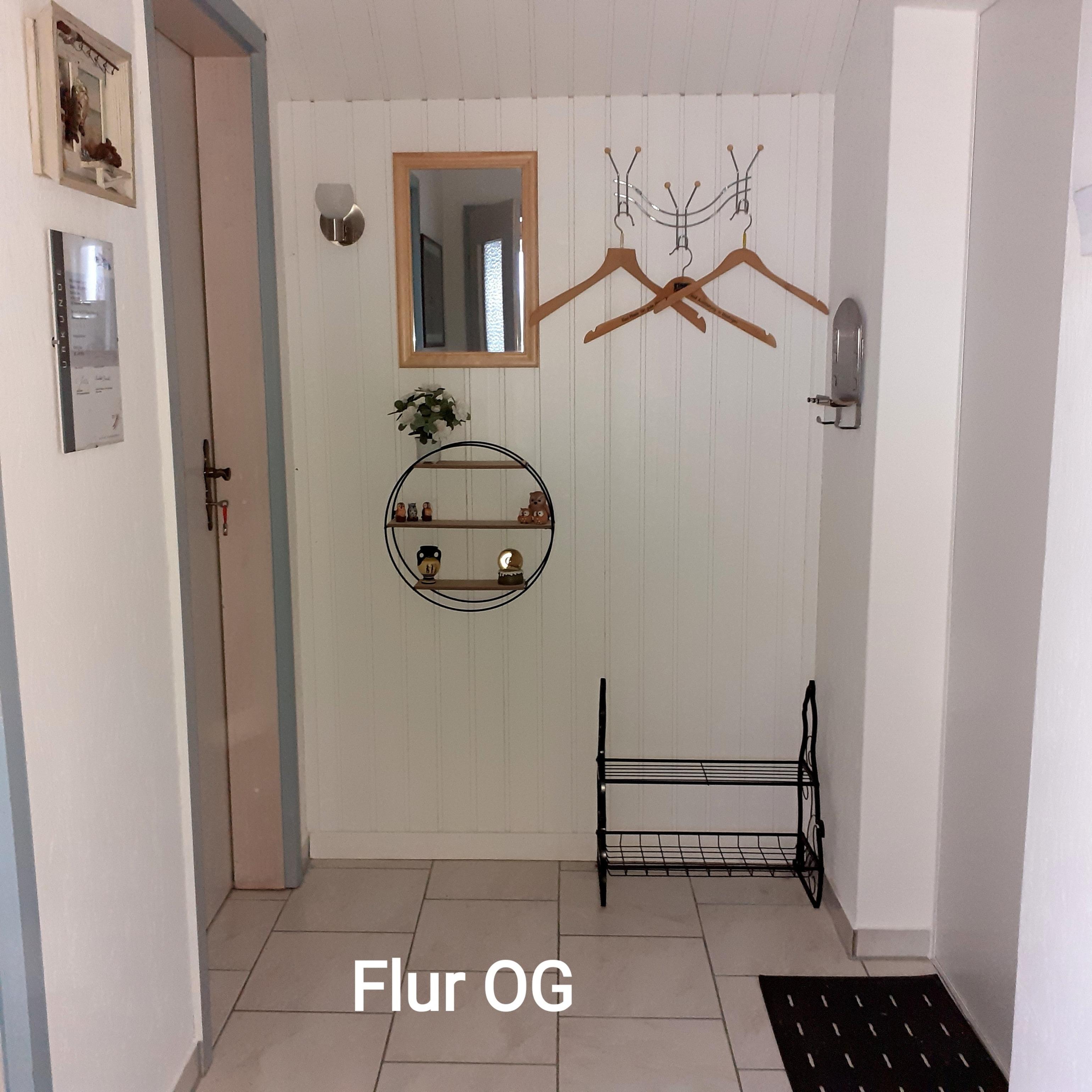Der Wohnungsflur enthält eine Wandgarderobe mit Spiegel und Ablage.