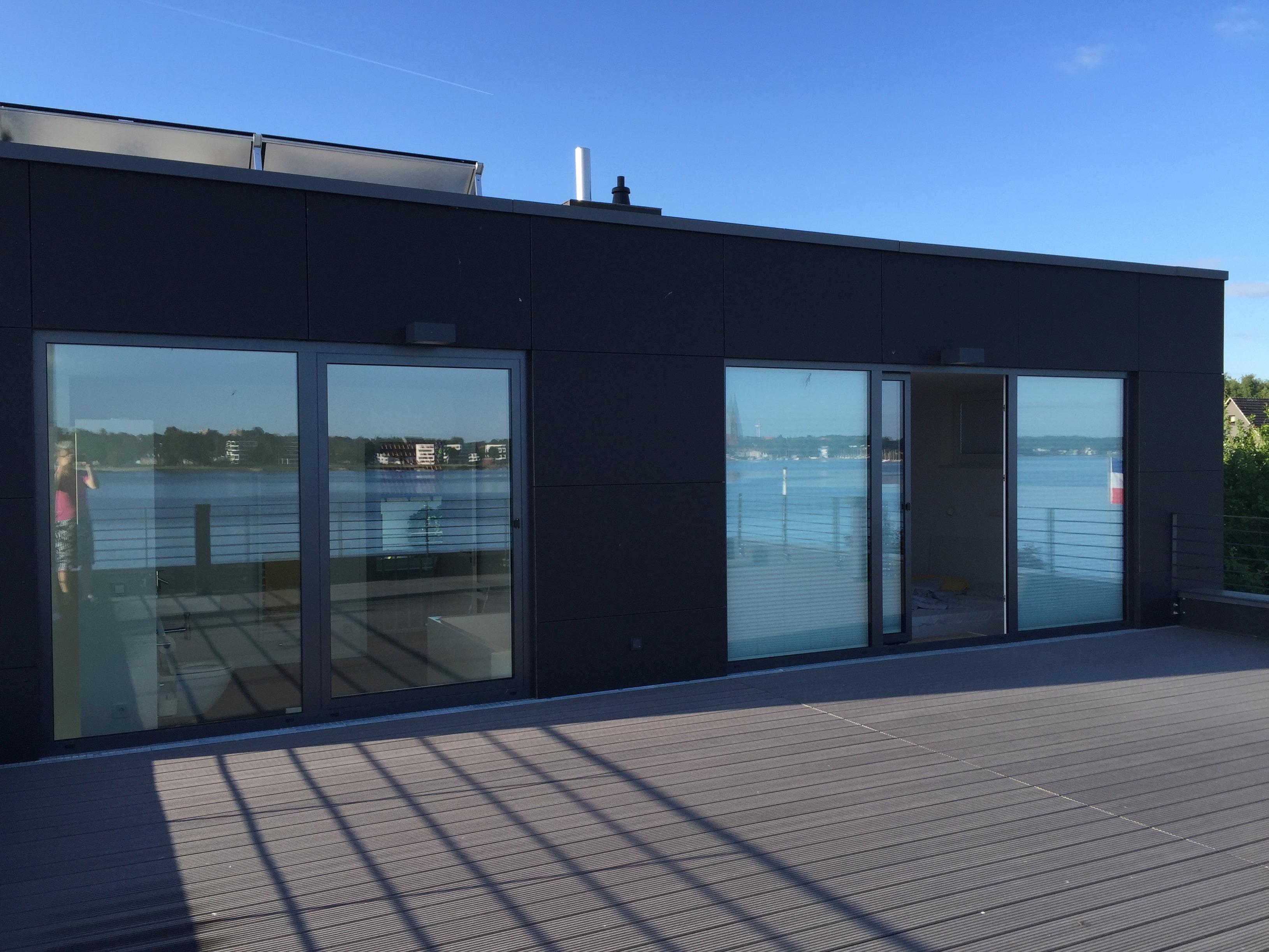 Ursprünglich im Jahr 1955 erbaut, erfuhr Ihr Fjordhaus Schleiwind im Jahr 1977 eine moderne Erweiterung zur Wasserseite, die die Wohnfläche erheblich vergrößerte. Ab 2011 wurde das Haus umfassend modernisiert. Neue, moderne Bäder und eine Küche wurden eingebaut, ebenso wie ein Saunabereich mit Ruhezone und zusätzlichem Bad. Anfang 2016 wurde das Dachgeschoss im modernen Stil komplett neu gestaltet, mit 3 neu gestalteten Schlafzimmern und einem Bad mit Blick auf den Fjord. Selbst beim Duschen können Sie von hier aus die vorbeiziehenden Schiffe beobachten. Die 60 qm große Dachterrasse mit ihrem atemberaubenden Ausblick ist vom großen Schlafzimmer aus erreichbar.