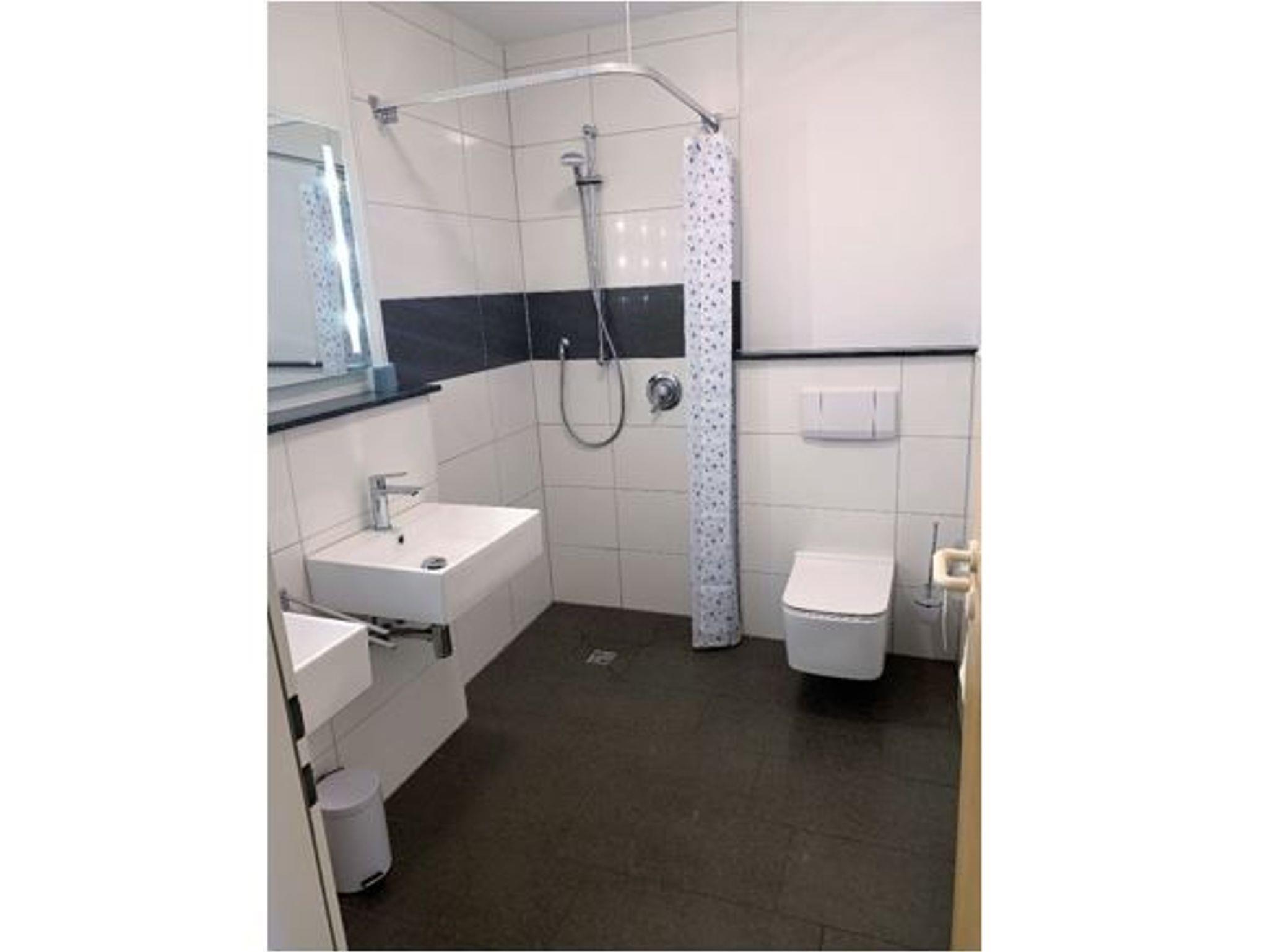 renoviertes Badezimmer mit ebenerdiger Dusche, Föhn, Hocker / separates WC / zwei SAT-LCD-TV/ großer
