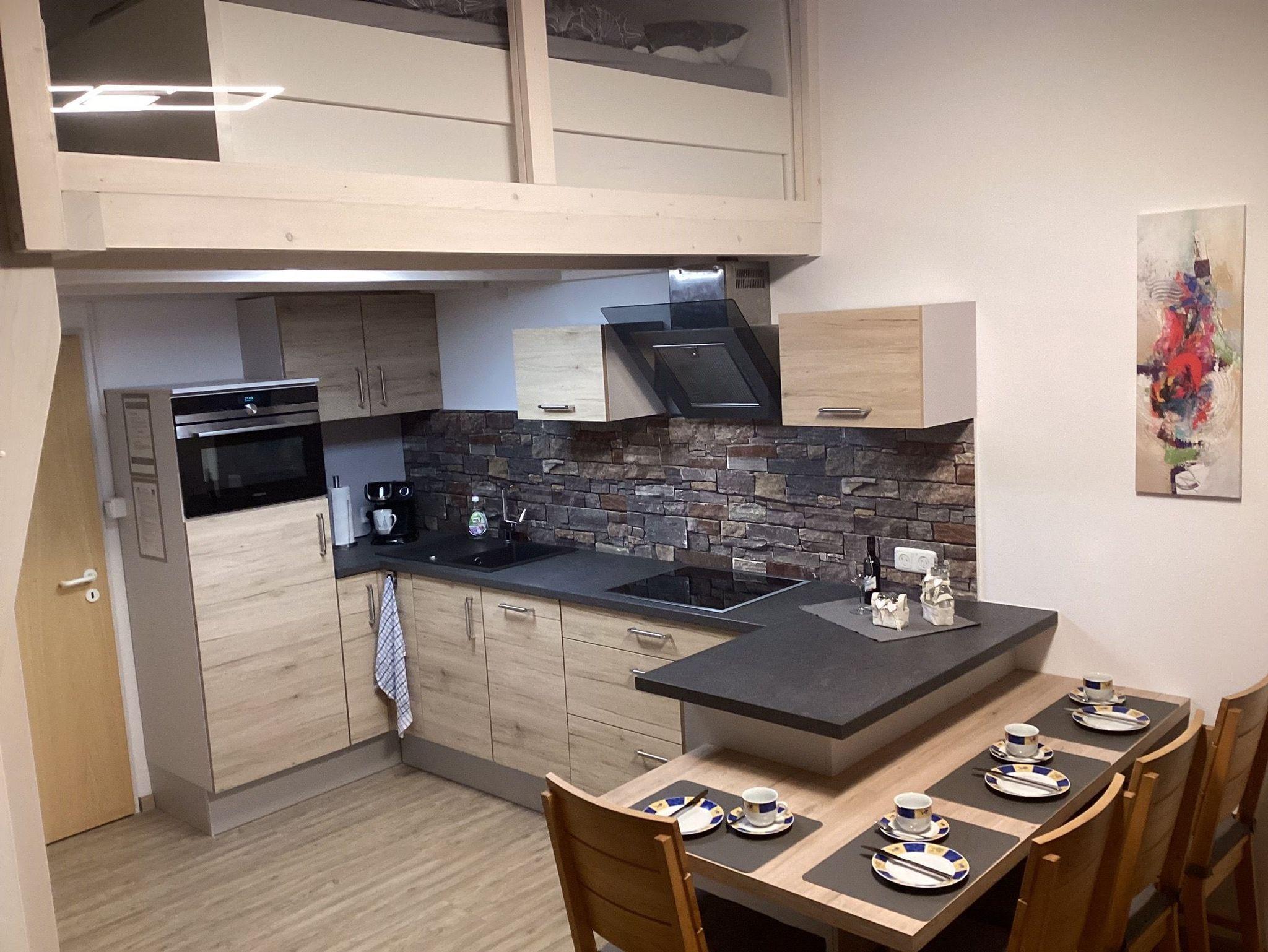 In zum Wohnzimmer offenen Küchenbereich mit Essecke kann der Tag entspannt mit einem gemütlichen Frühstück beginnen.