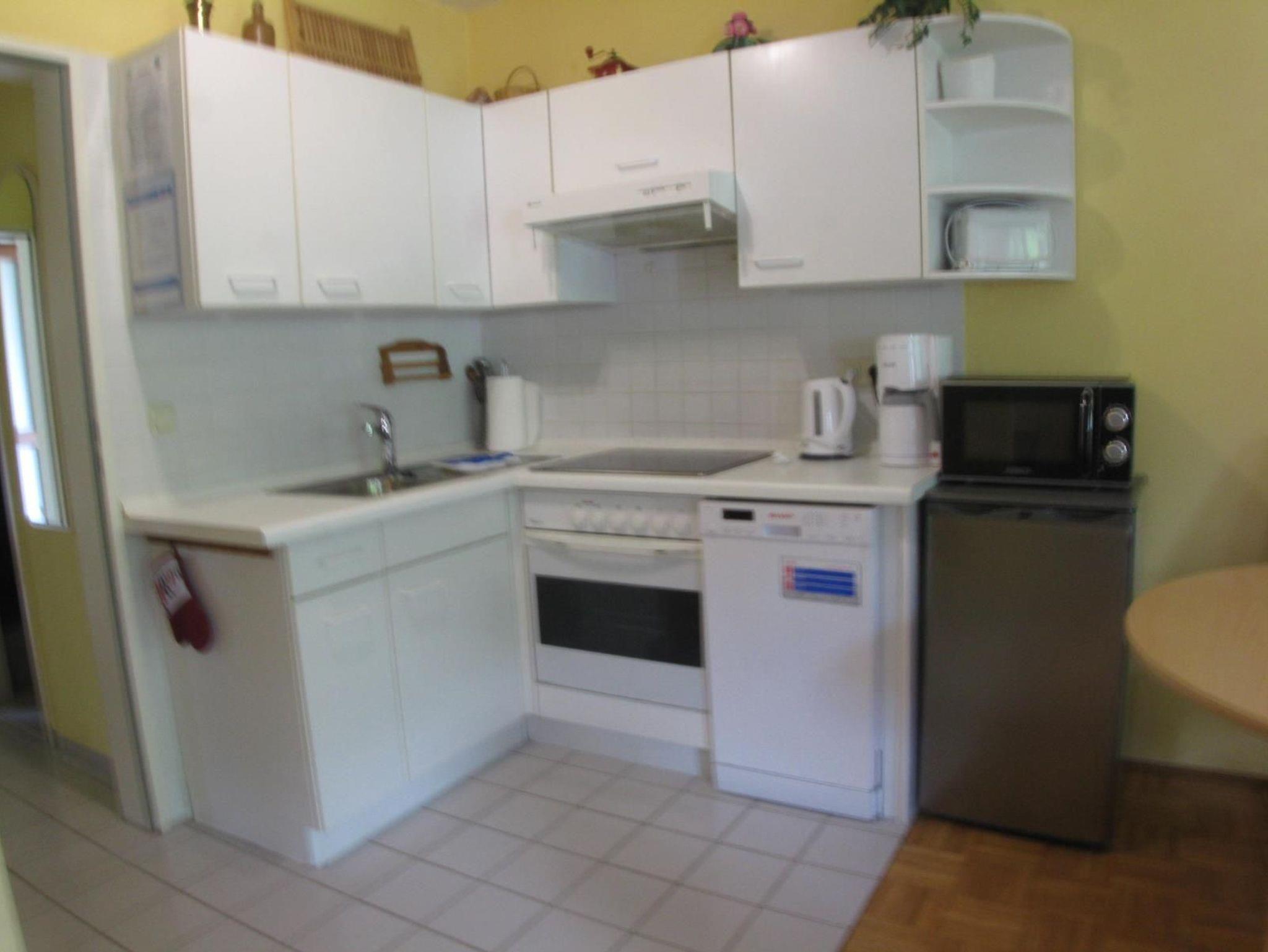 Sie wohnen in einem 2-Zimmer-Appartement für bis zu 4 Personen, ca. 48 m², ein Schlafzimmer mit Doppelbett, Wohn-/Schlafraum mit bequemer Doppelbettcouch, separater Essplatz, voll ausgestatteter Küchenbereich mit Mikrowelle, Diele mit Garderobe, Dusche/WC, Balkon, SAT-Flachbild-TV und Telefon.