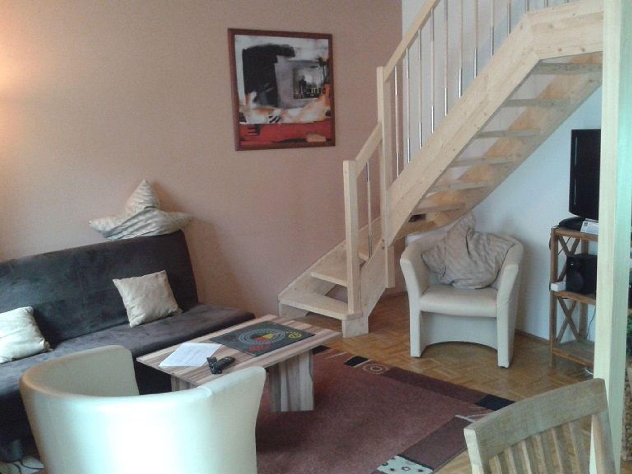 Im Wohnraum finden Sie neben einem bequemen Sofa, zwei Sessel, Kaminofen, SAT-Flachbild-TV und Telefon.