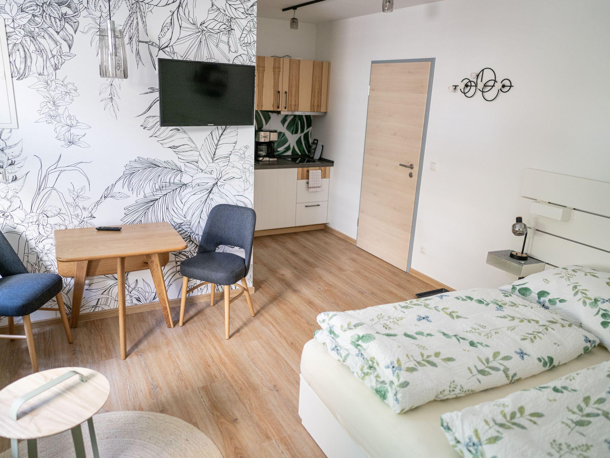 Hell und freundlich gestaltete Kuschelapartments für 2 Personen. Die Apartments verfügen über einen Wohn-/Schlafraum, eine offene, gut ausgestattete Pantryküche und ein Bad.