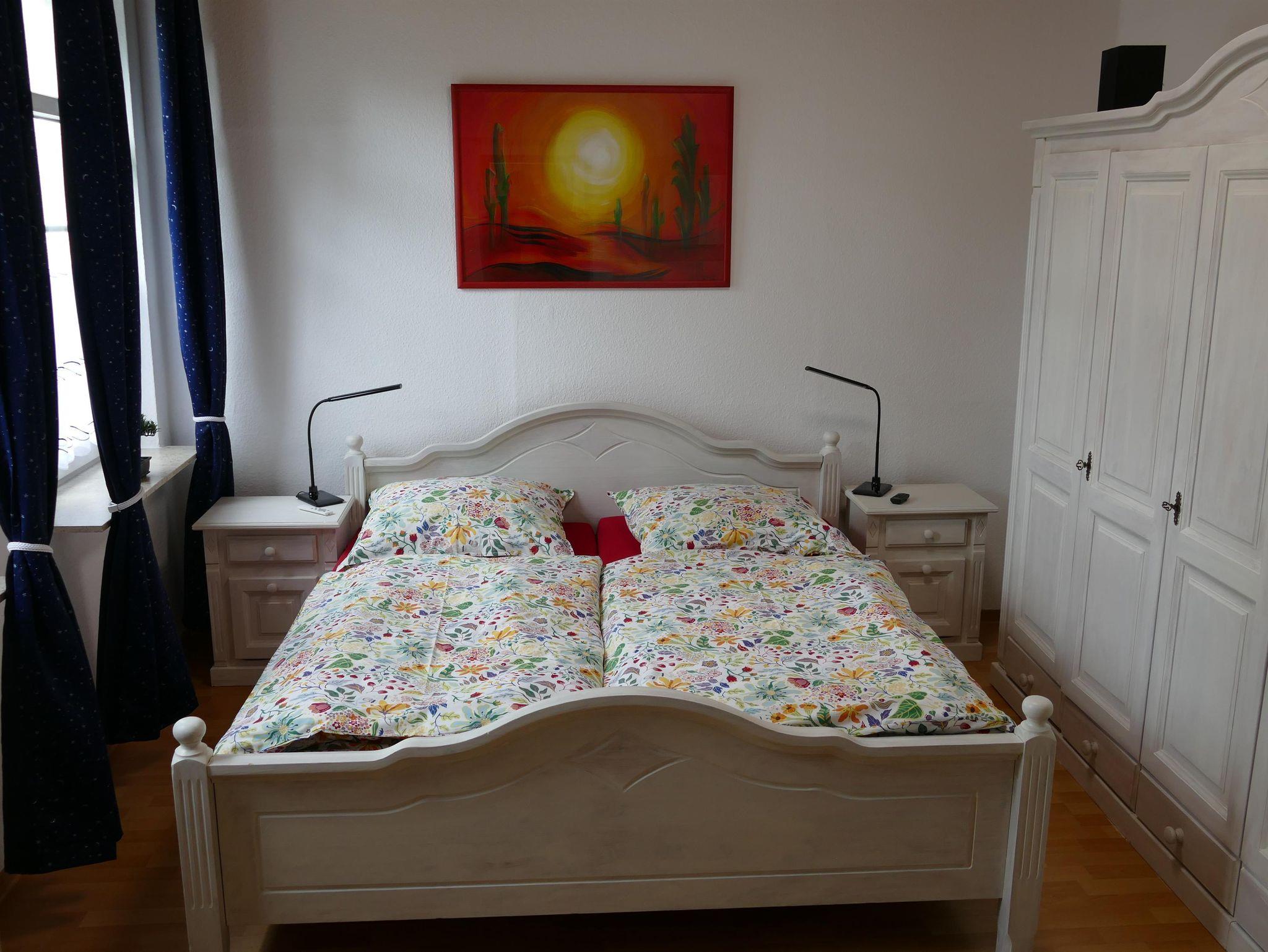 Im separaten Schlafzimmer erwartet Sie ein komfortables Doppelbett für erholsamen Schlaf. Viel Stauraum sorgt dafür, dass Sie sich auch bei längeren Aufenthalten rundum wohlfühlen.