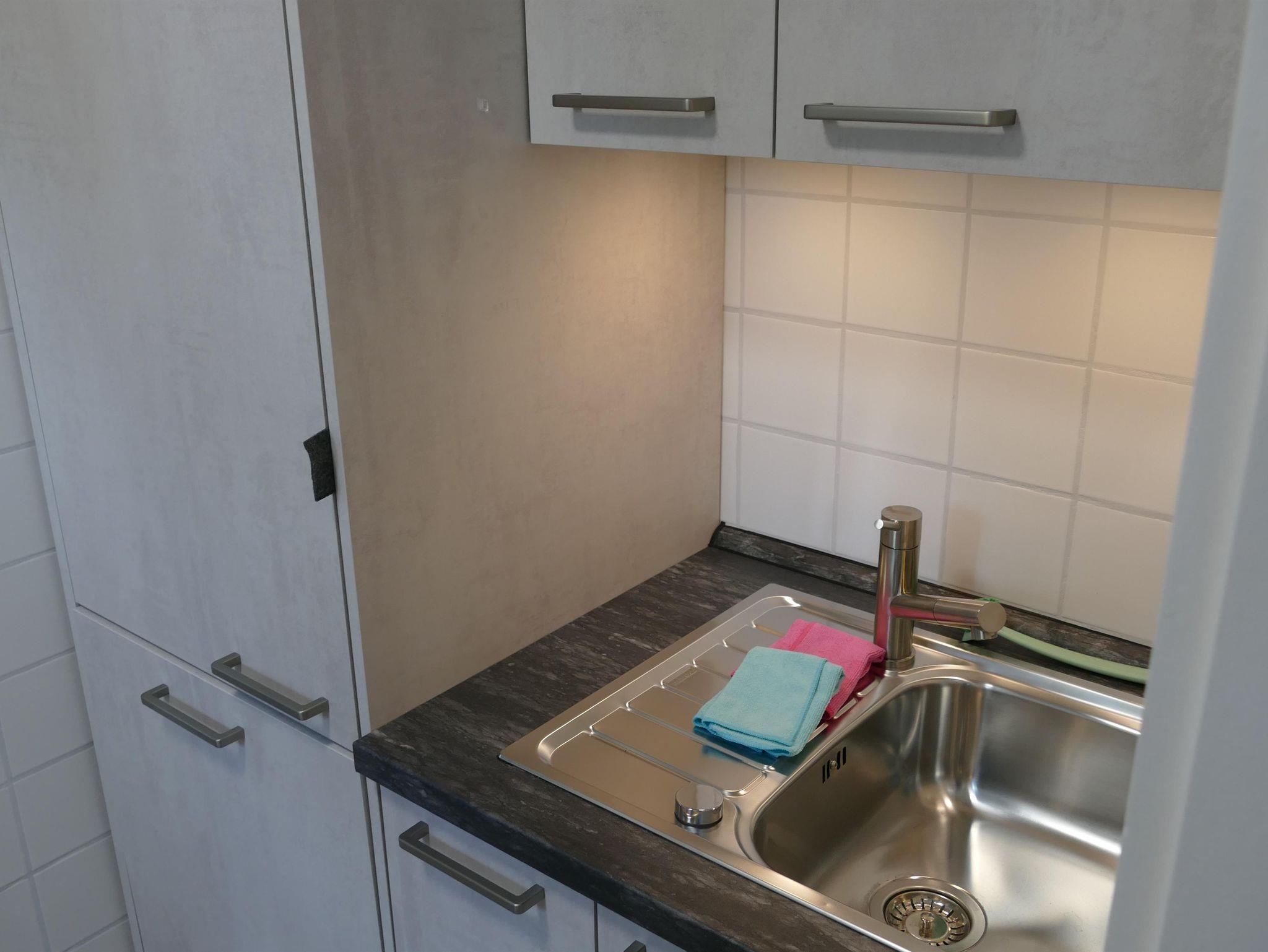 Die voll ausgestattete Küche bietet alles, was Sie zum Kochen brauchen – von Herd, Backofen, Kühlschrank und Geschirrspülmaschine bis hin zu Kaffeemaschine und Geschirr.