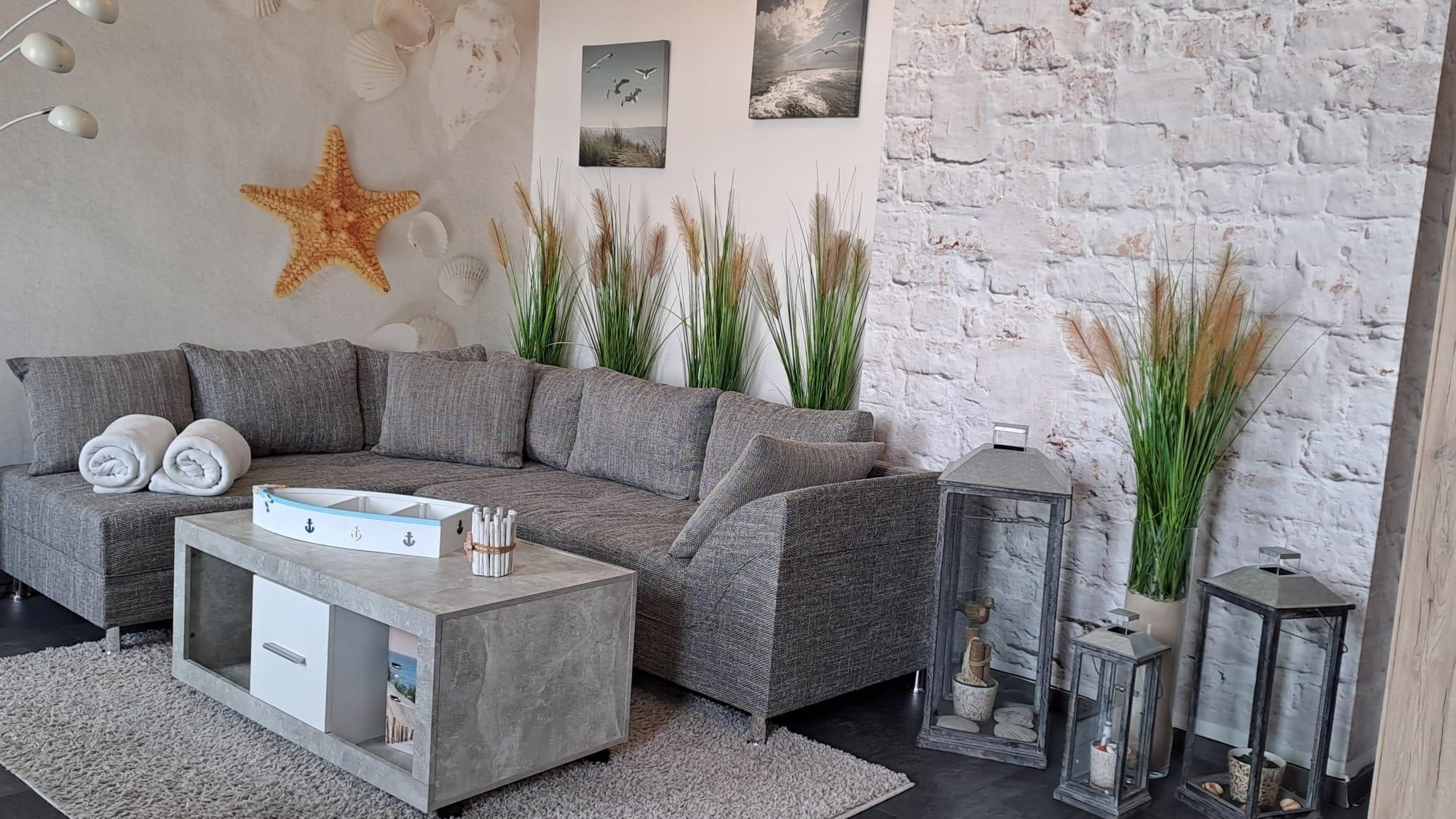 Das Apartment Krabbe ist hell , mediterran und gemütlich eingerichtet.