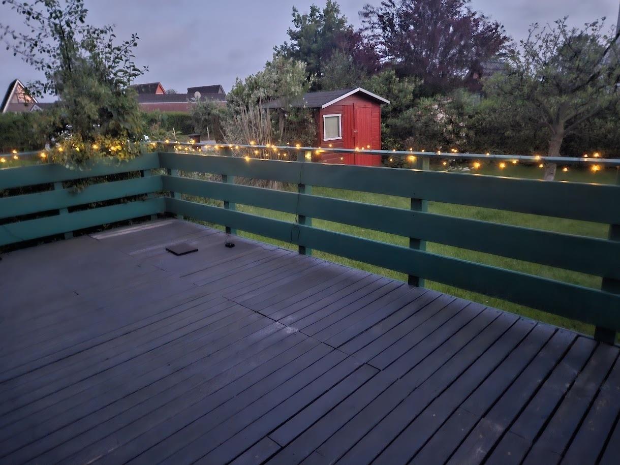 Wohn- und Esszimmer sind mit TV, CD, Radio sowie Sitz- und Essecke ausgestattet. Das Haus verfügt über eine separate Küche mit Geschirrspüler, Herd mit Backofen, Toaster, Wasserkocher, Kaffeemaschine. Im Erdgeschoß befindet sich ein Schlafzimmer mit einer Schlafcouch. Das Bad ist mit einer Dusche ausgestattet. Im Obergeschoß finden sich 2 weitere Schlafzimmer, eins mit Doppelbett, TV und Balkon, das zweite mit 2 Einzelbetten. Das Haus hat einen großen eingezäunten Garten sowie eine große ebenfalls komplett eingezäunte Veranda. Für die Kleinsten steht ein Reisebabybett sowie eine Stuhlsitzerhöhung zur Verfügung. Zum Haus gehört ebenfalls ein eigener Parkplatz. Nebenkosten für Strom und Wasser werden nach Verbrauch berechnet und werden mit einer im Voraus zu entrichtenden Kaution von 180,-€ verrechnet.