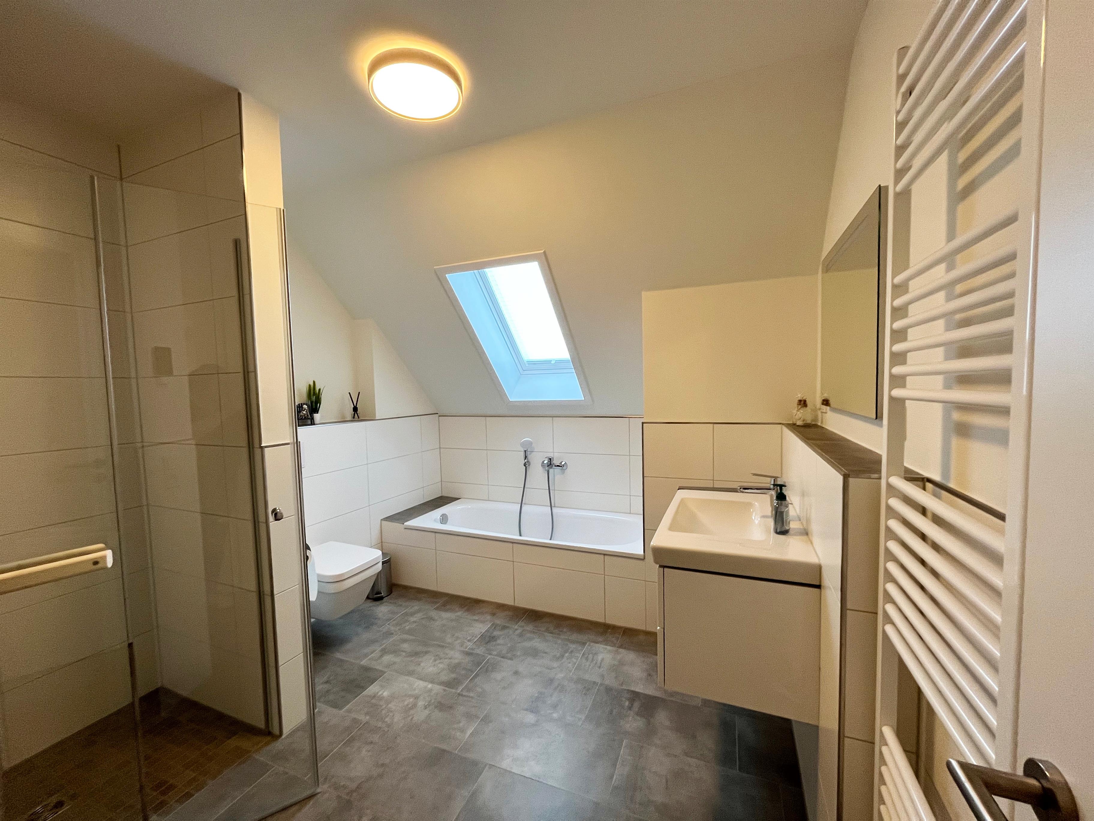 Im eigenen Garten finden wir neben einer überdachten Terrasse mit Sonnenschutz einen Grill vor. Für die kalte Jahreszeit lädt der Ofen für gemütliche Stunden auf dem Sofa ein oder eine im Bad integrierte Sauna.