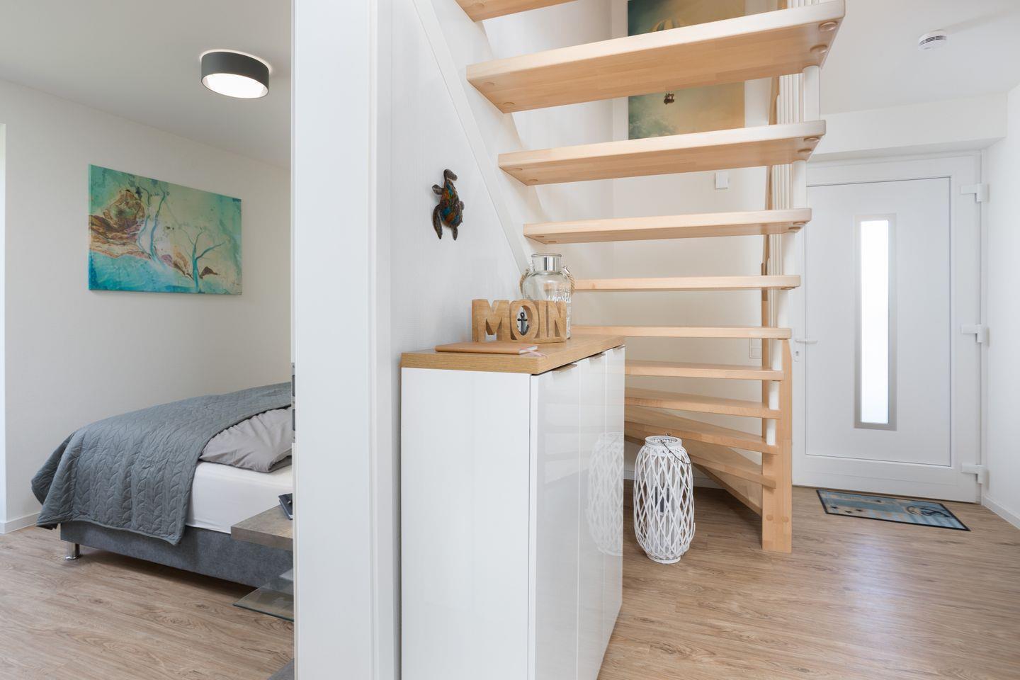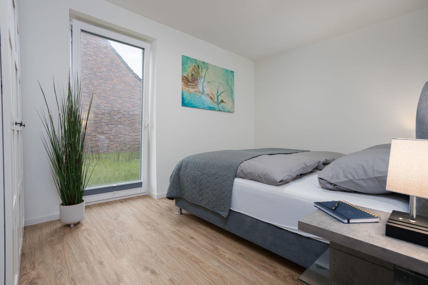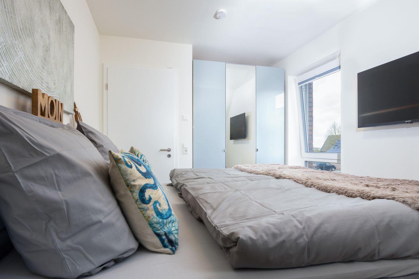 Drei Schlafzimmer mit hochwertigen Boxspringbetten garantieren dir erholsame Nächte. Im Erdgeschoss befindet sich ein Schlafzimmer mit Doppelbett und barrierearmem Zugang – ideal für Senioren oder Gäste mit eingeschränkter Mobilität. Im Obergeschoss erwartet dich ein weiteres Doppelzimmer sowie ein flexibles Zimmer mit zwei Einzelbetten, die auch zusammengestellt werden können.
