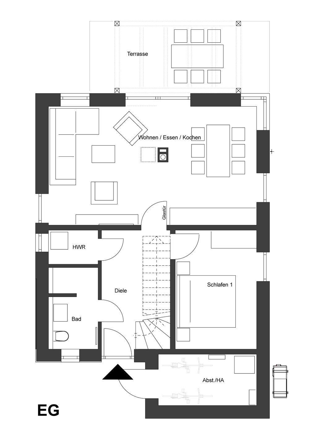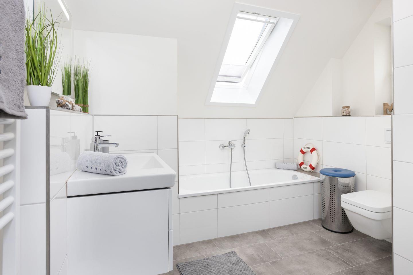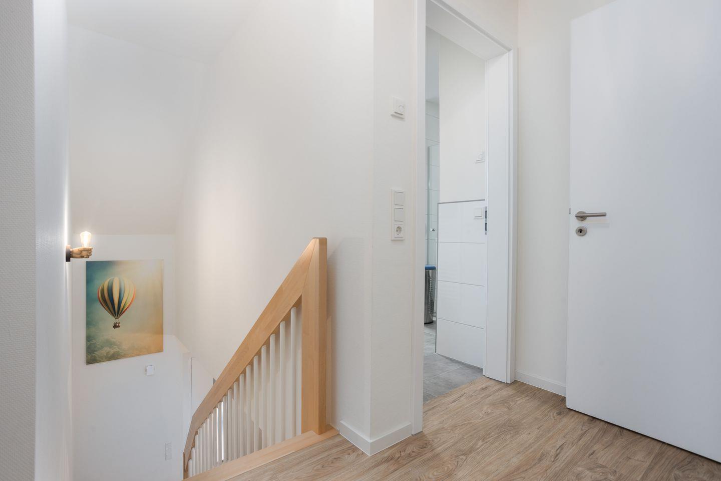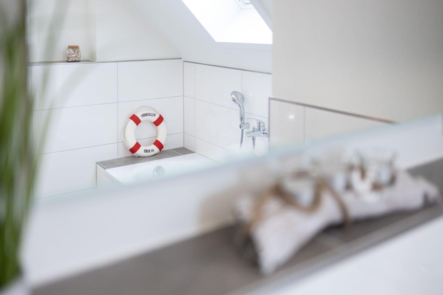 Im Obergeschoss findest du das moderne Wellnessbad mit Sauna, Dusche und Badewanne – perfekt für deine persönliche Auszeit. Ein zusätzliches Duschbad im Erdgeschoss sorgt für extra Komfort, besonders bei voller Belegung.