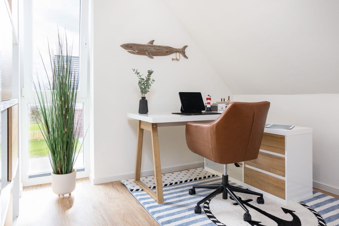 Ein separates Arbeits- oder Spielzimmer mit Schreibtisch und Couch bietet Rückzugsraum für Groß und Klein – ob Homeoffice oder Lego-Abenteuer. Das Haus eignet sich hervorragend für Familien mit Kindern – das weitläufige Gelände und die Nähe zu Freizeitangeboten machen den Aufenthalt besonders angenehm.