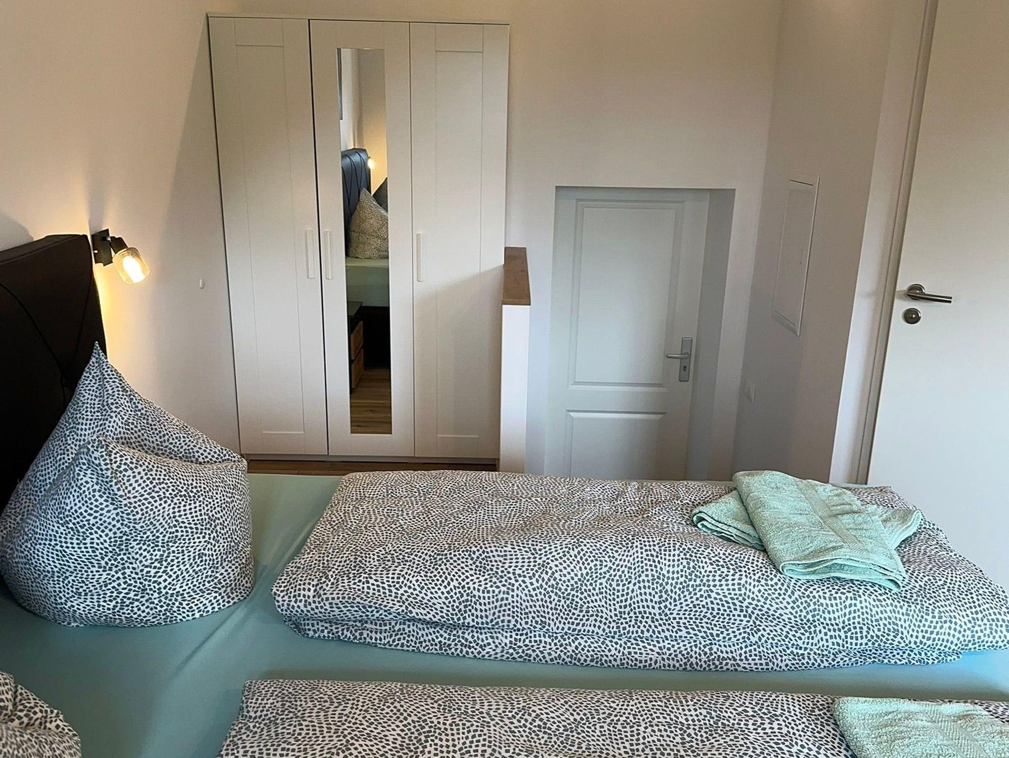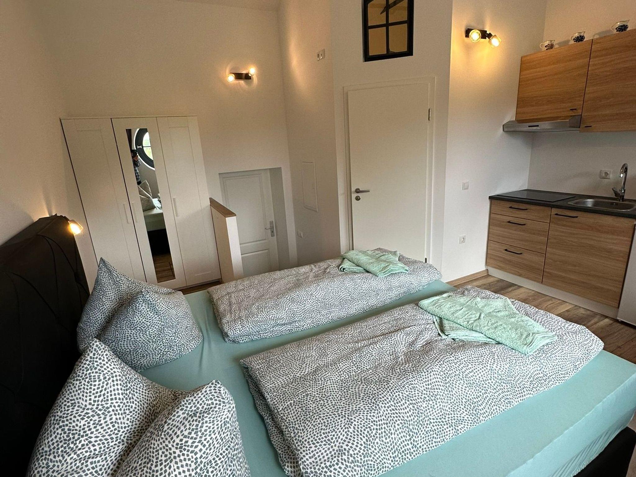 Die Ferienwohnung besteht aus eimem Zimmer mit Badezimmer .Eine kleine Küche ist mit integriert .