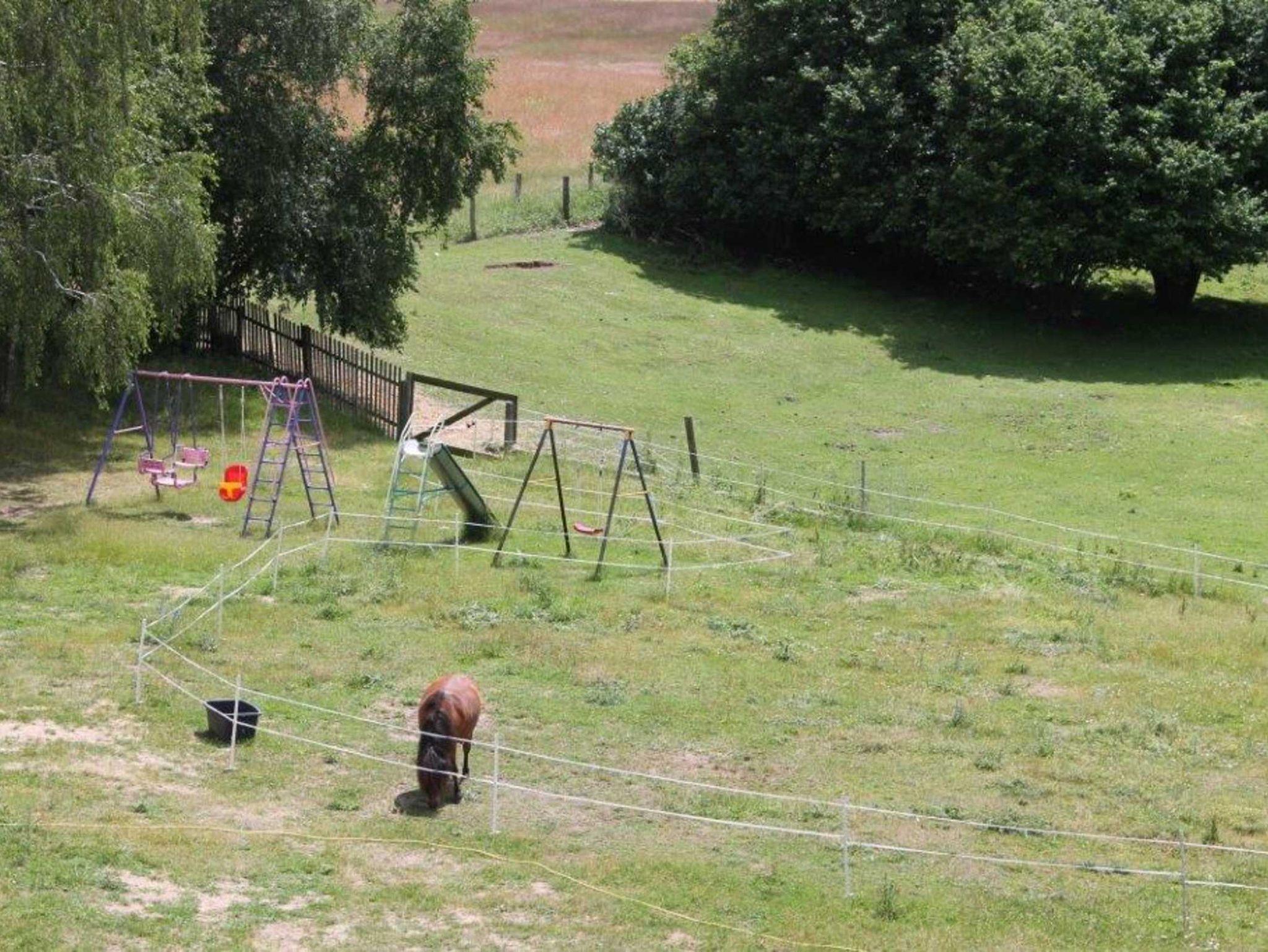 Sie können sich auf dem Grundstück frei bewegen . Es befindet sich auch ein kleiner Spielplatz vor Ort. Schafe , Pferde ,Hunde und Katzen wohnen auch mit auf dem Hof . Sitzecke mit Grillmöglichkeiten ist vorhanden.