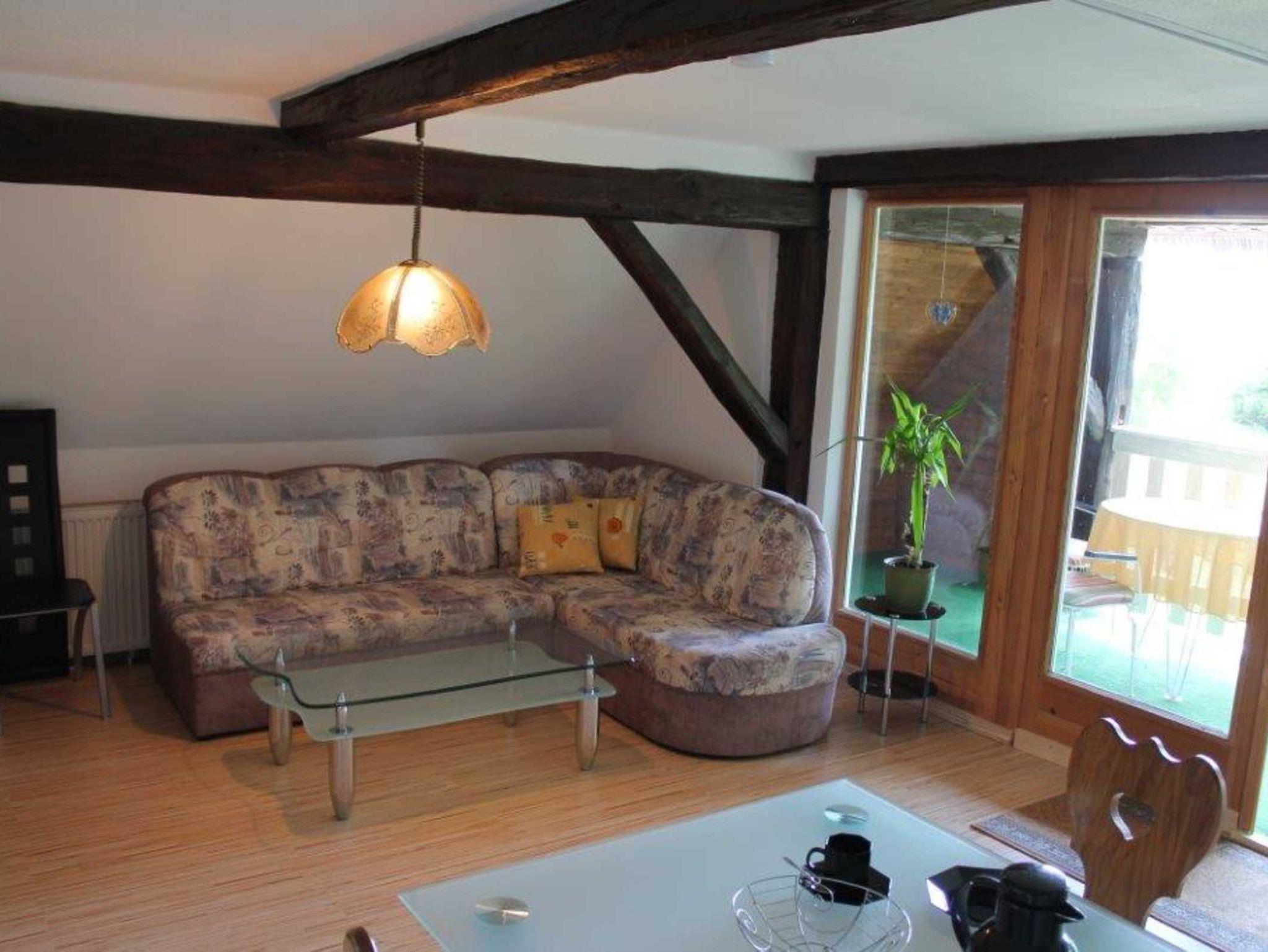 Die Wohnung liegt im Obergeschoß und hat einen Blick in Richtung Süden ( Müritz Nationalpark ).Zur Wohnung gehört ein eigenes Treppenhaus , ein Wohnzimmer mit eingebauter Küche ,ein Schlafzimmer ,ein Bad und ein überdachter Balkon (ca 10 m² ) Gerne kann im Garten die Sitzecke mit Grillmöglichkeit genutzt werden.