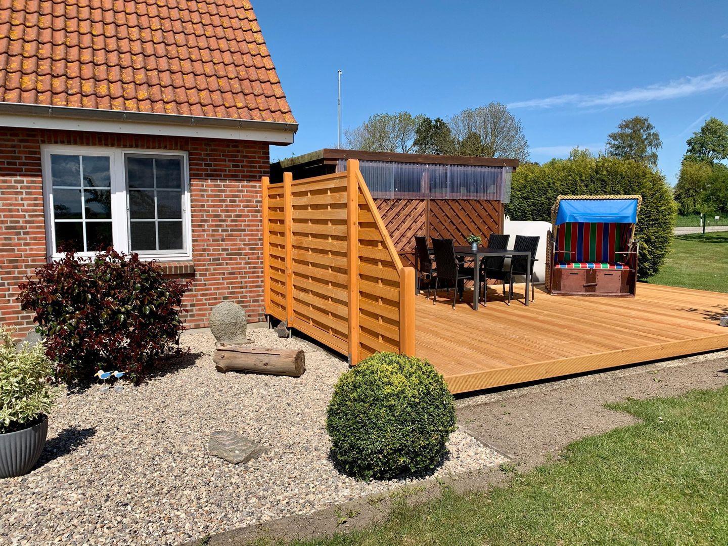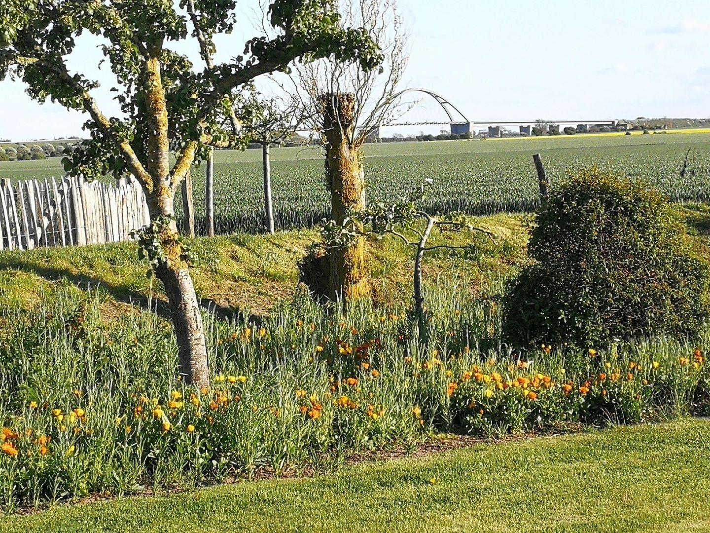 Das große, gepflegte und komplett eingezäunte Grundstück mit eigener Terrasse und eigenem Strandkorb steht zur Mitnutzung zur Verfügung und lädt zu Sonnenbaden, Spielen mit den Kindern und Verweilen ein. Selbstverständlich steht Ihnen auch der große Garten zur Verfügung. Genießen Sie doch einfach die phantastische Aussicht auf die Sundbrücke mit einem Sundowner und/oder einem guten Buch. Selbstverständlich haben Sie überall w-lan Empfang. Am Vorderhaus befindet sich ein PKW-Stellplatz. Ihre Fahrräder können Sie separat am Haus sicher abstellen. Im offen gestalteten Wohnbereich mit Relax-Couch, Flat-TV ist Entspannung und Wohlfühlen garantiert.
