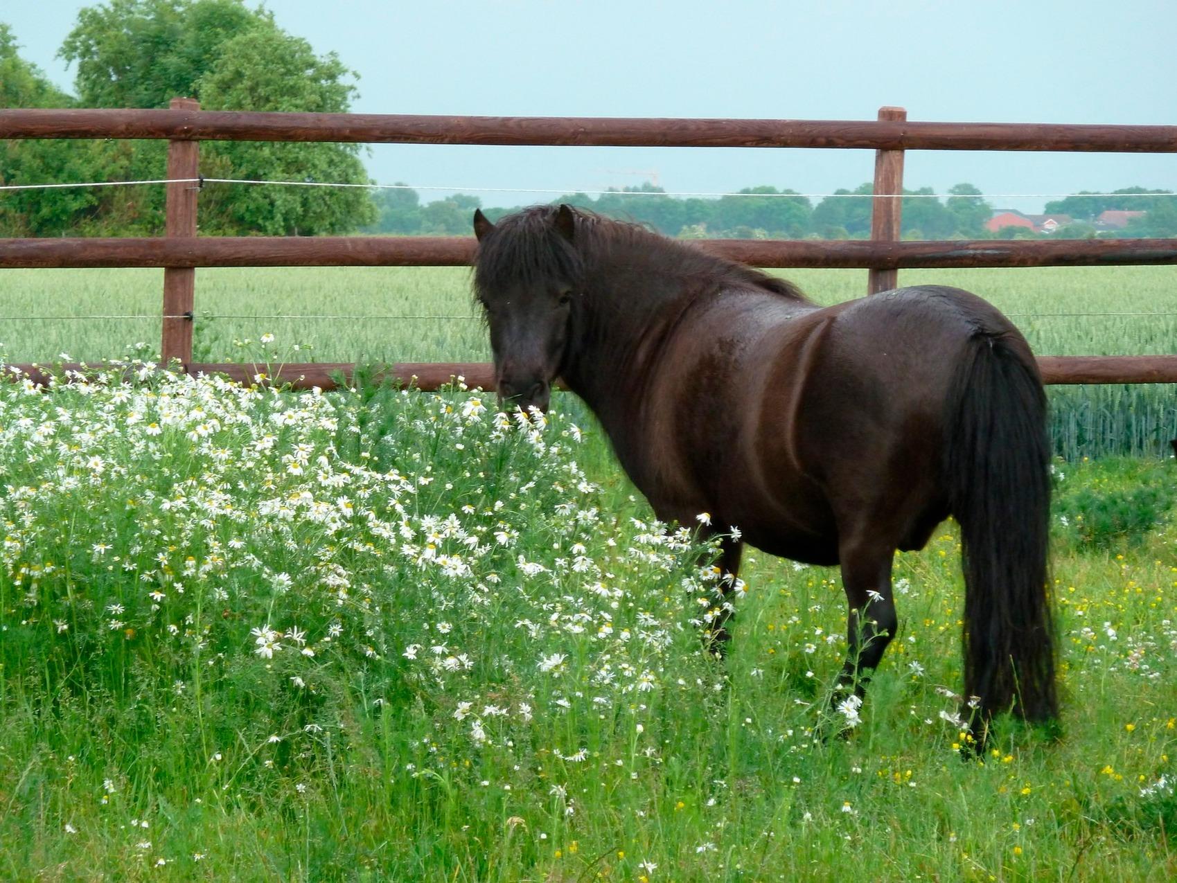 Auf dem Hof wohnen 2 Pferde, 1 großer Hund und eine Katze, die sich gern streicheln lassen. Für Kinder besteht die Möglichkeit unter fachlicher Anleitung einer Reitlehrerin /Reittherapeutin zu reiten oder Kutsche zu fahren und bei der Stallarbeit und Fütterung zu helfen.