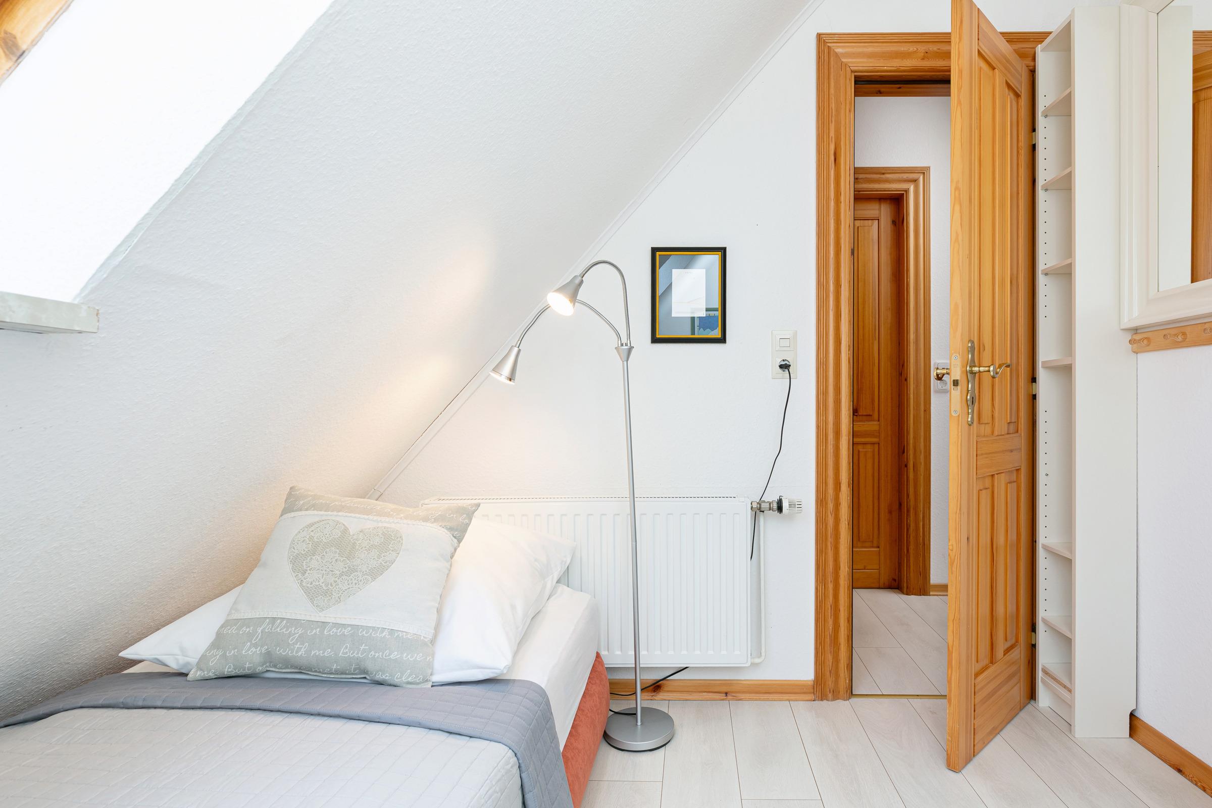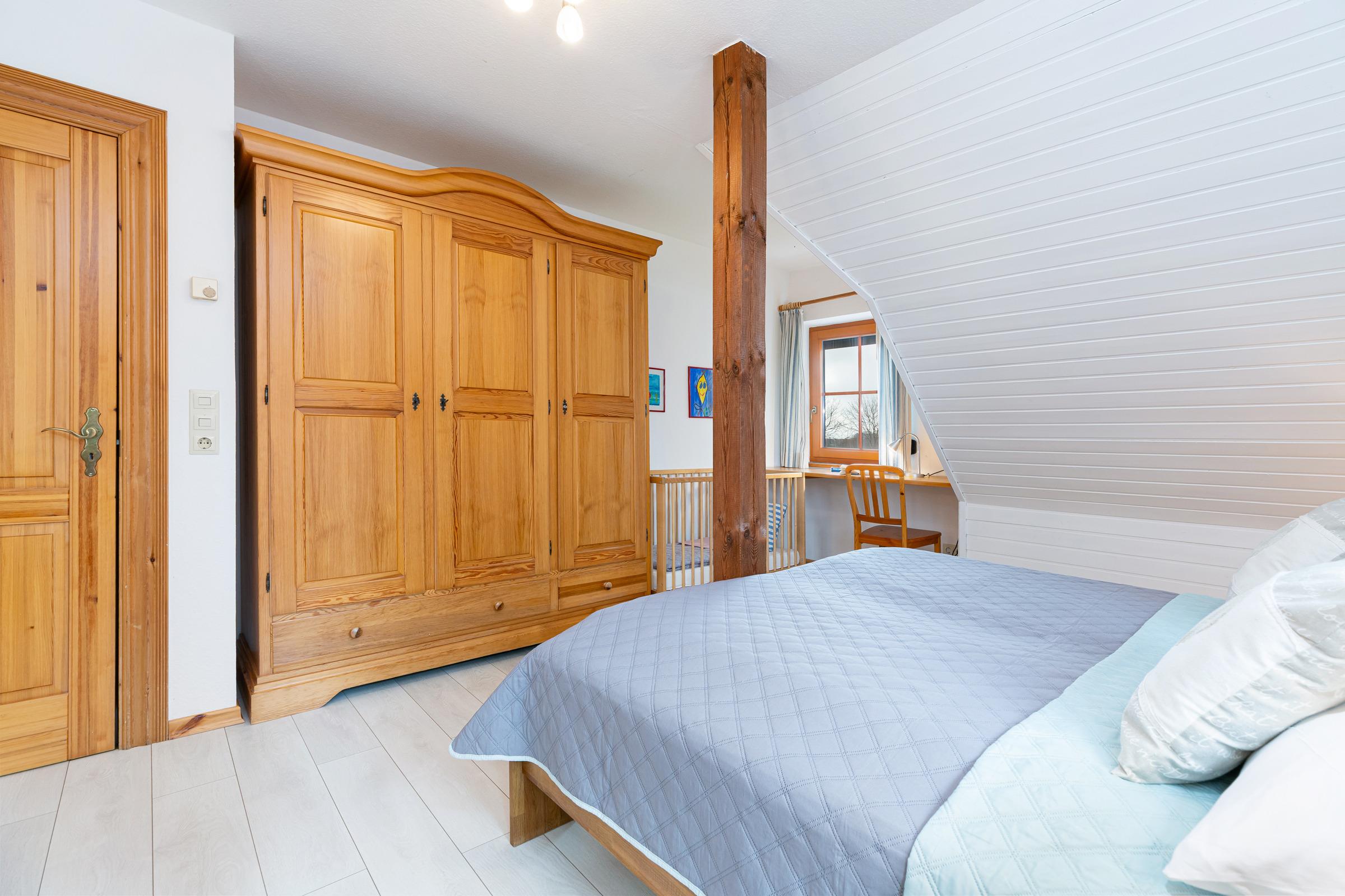 Schlafzimmer 4: 1 Doppelbett (190x200 cm), Verdunkelung: Plissee, Kleiderschrank, Platz für ein Babybett vorhanden