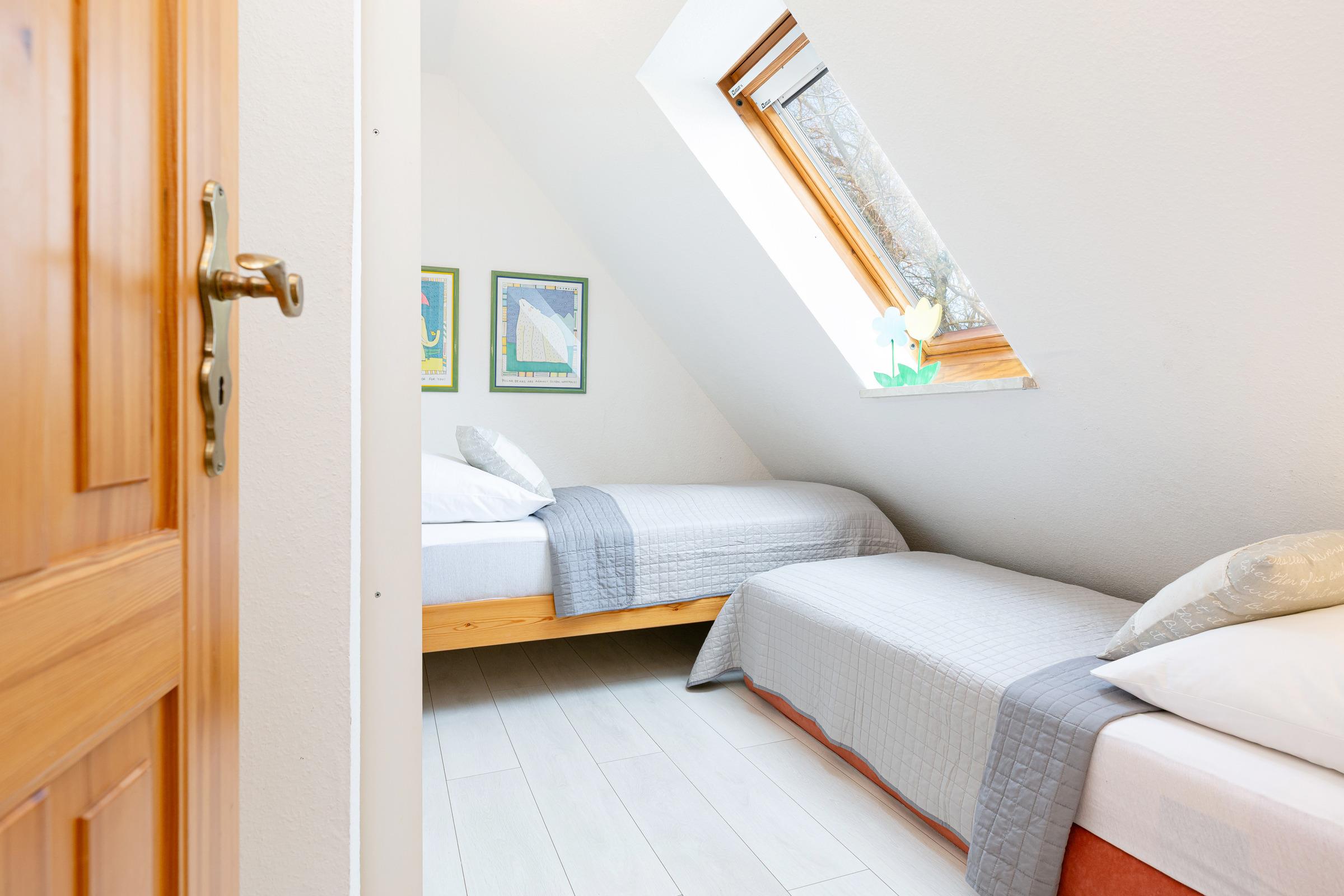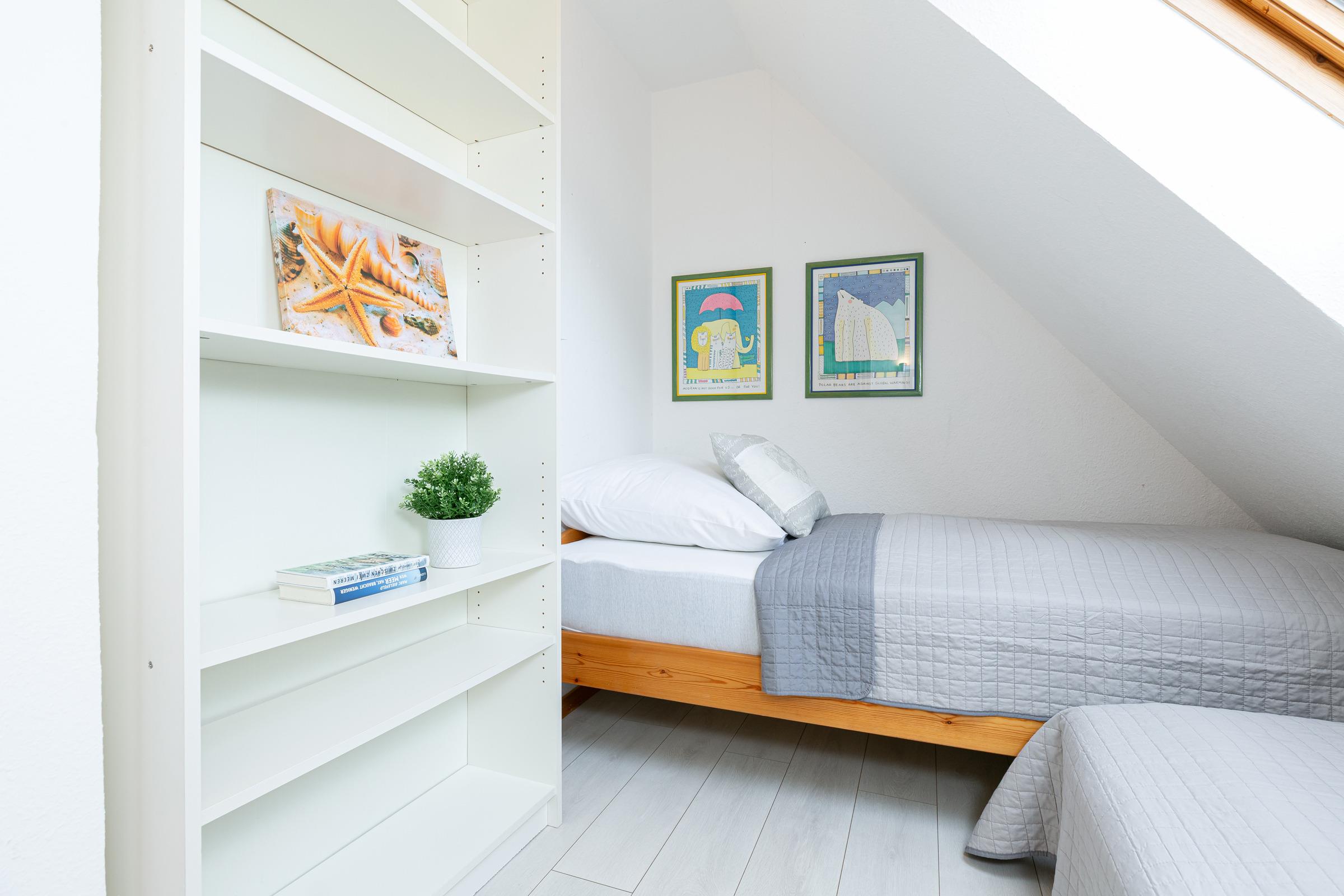 Schlafzimmer 3: 2 Einzelbetten (je 90x200 cm), Verdunkelung: Plissee, Kleiderschrank, kein Platz für ein Babybett vorhanden