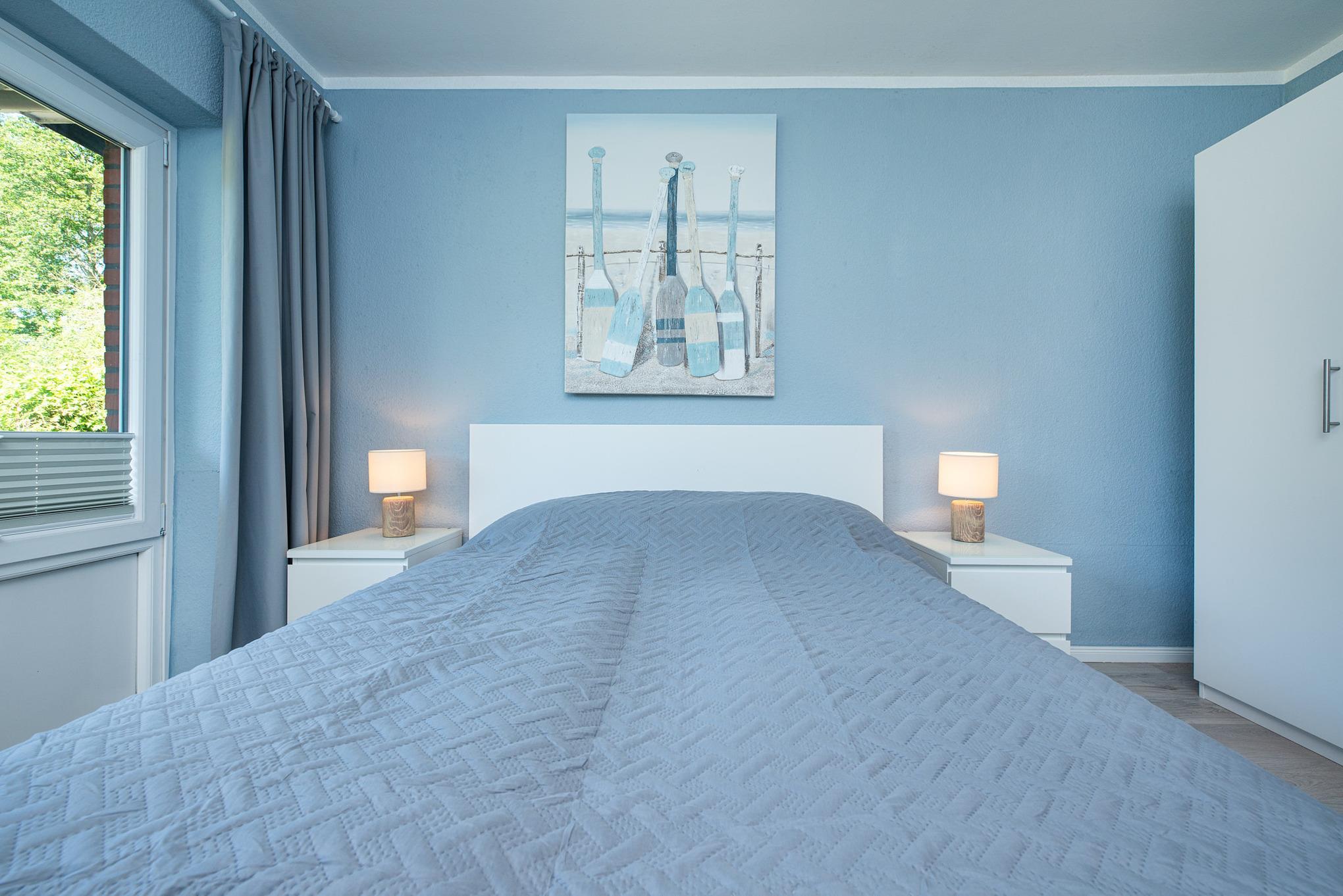 Schlafzimmer 1: Doppelbett (160x200 cm), Verdunkelung: Gardinen
