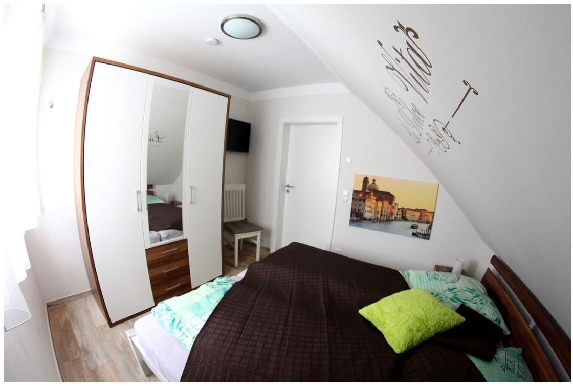 Im unteren Bereich der Wohnung befinden sich zwei Schlafzimmer, (beide verfügen über einen Flachbild-TV) sowie ein Duschbad, sodass jeder nach einem schönen und geselligen Abend in seinen vier Wänden, alternativ im gemeinsamen Wohnbereich, die wohlverdiente Ruhe genießen und den Tag ausklingen lassen kann. Im Studio im DG gibt es ein Doppelbett (1,80 x 2,00 m), ein zweites Duschbad und ausreichend Schränke sind vorhanden. Durch dies geräumige Studio im zweiten Obergeschoss, das mit einer gemütlichen Couch und einem Flachbild-Fernseher ausgestattet ist, können auf insgesamt 95 qm zwei Familien oder auch mehrere Generationen gemeinsam Urlaub machen, ohne auf einen eigenen Rückzugsbereich verzichten zu müssen. Der Wohnbereich unterteilt sich in ein großzügiges Wohnzimmer, eine komplett eingerichteten Küchenzeile und einen Essbereich, dessen Tisch bei Bedarf noch vergrößert werden kann. Der Wohnraum ist mit einer Couchgarnitur gemütlich und stilvoll eingerichtet, er verfügt ebenfalls über einen 46 Zoll Flachbildfernseher, einen CD-Spieler mit Radio und Bluetooth und einen DVD-Player. WLAN ist vorhanden. Die Küchenzeile im Wohnraum ist komplett ausgestattet mit Kühlschrank und Gefrierfach, Ceranfeld, Backofen, Mikrowelle, Kaffeemaschine, Wasserkocher, Mixer und einem Stabmixer sowie diversen Auflaufformen und einem Elektrogrill. Es sind ausreichend Geschirr und Besteck sowie die verschiedensten Küchenhelfer vorhanden. Die beiden geräumigen Badezimmer verfügen jeweils über eine Dusche. Einen Fön finden Sie im Waschbeckenunterschrank.