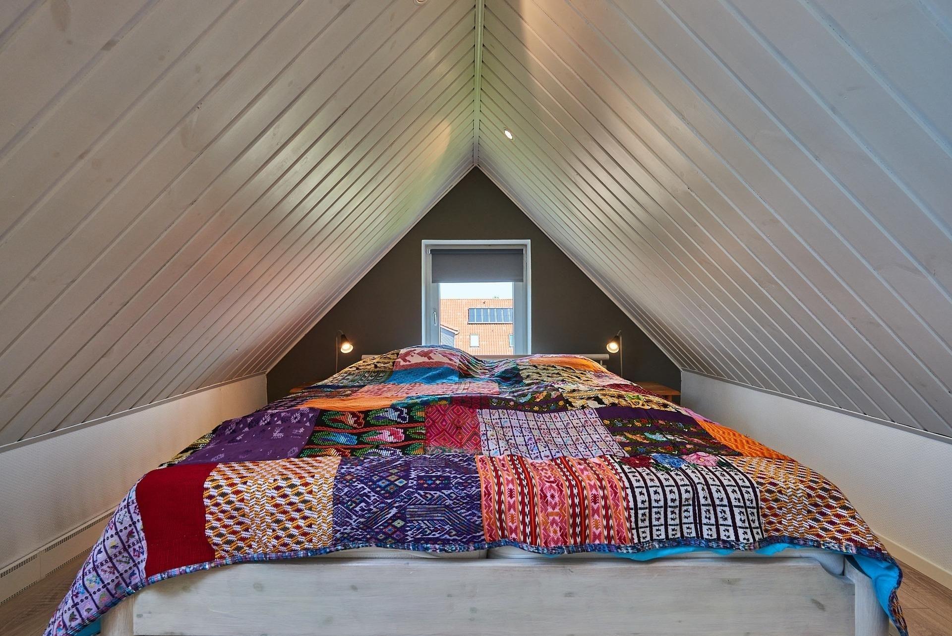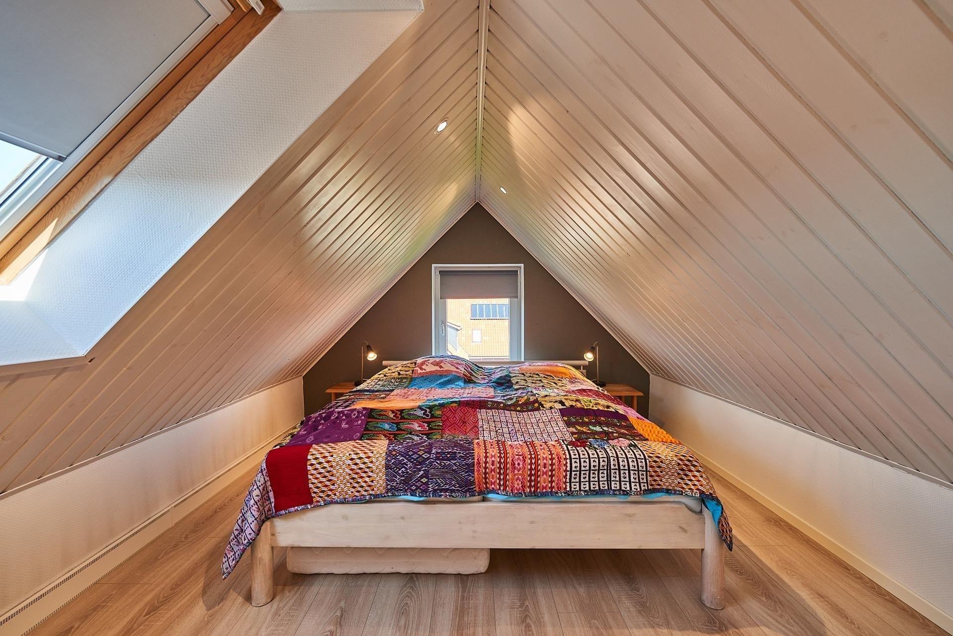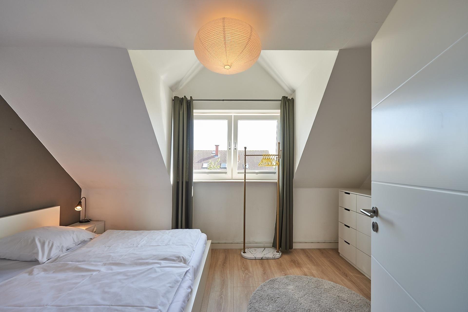 Schlafzimmer 1: Doppelbett (2x 90x200cm), zusätzliches Doppelbett über eine Treppe ins Dachgeschoss erreichbar