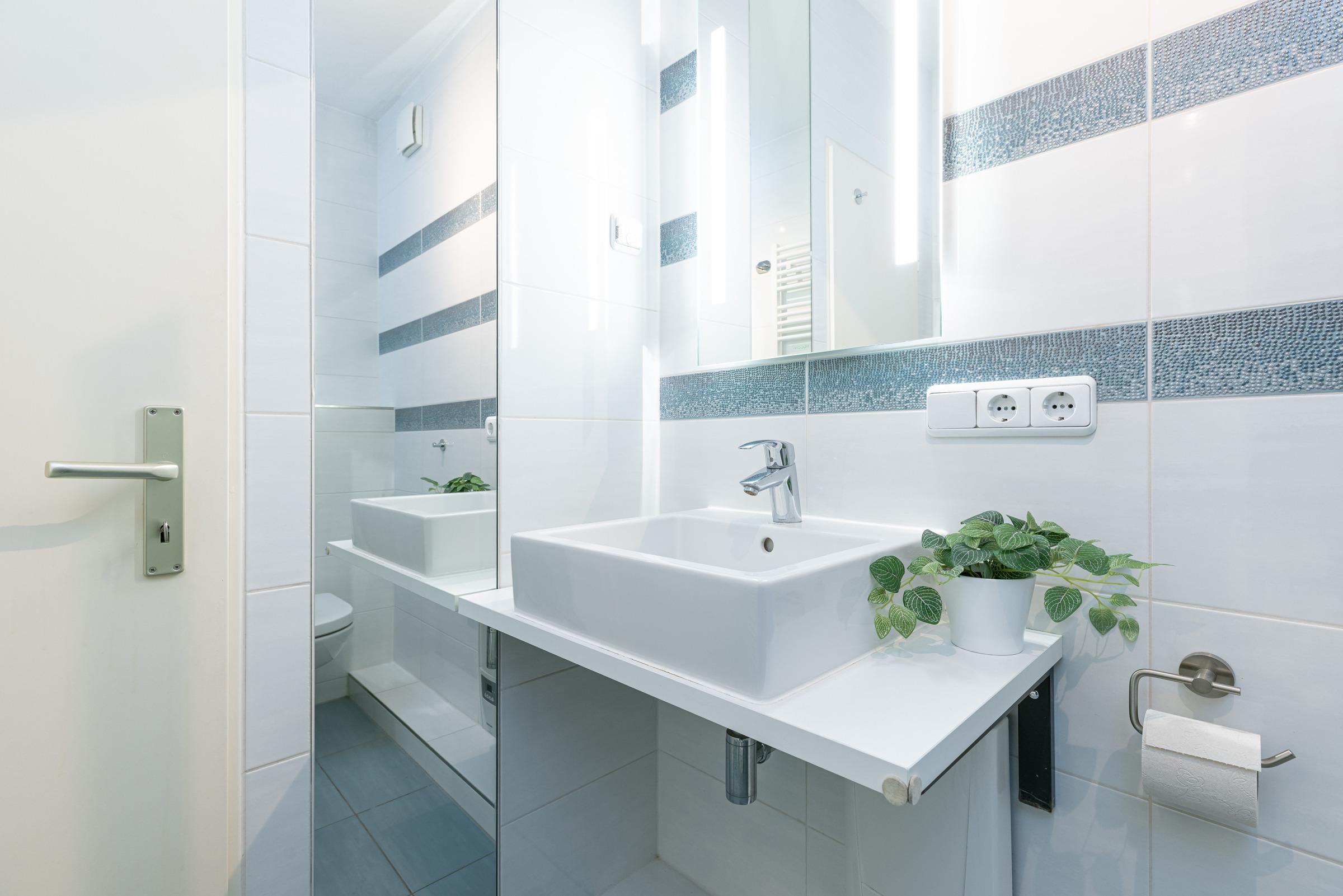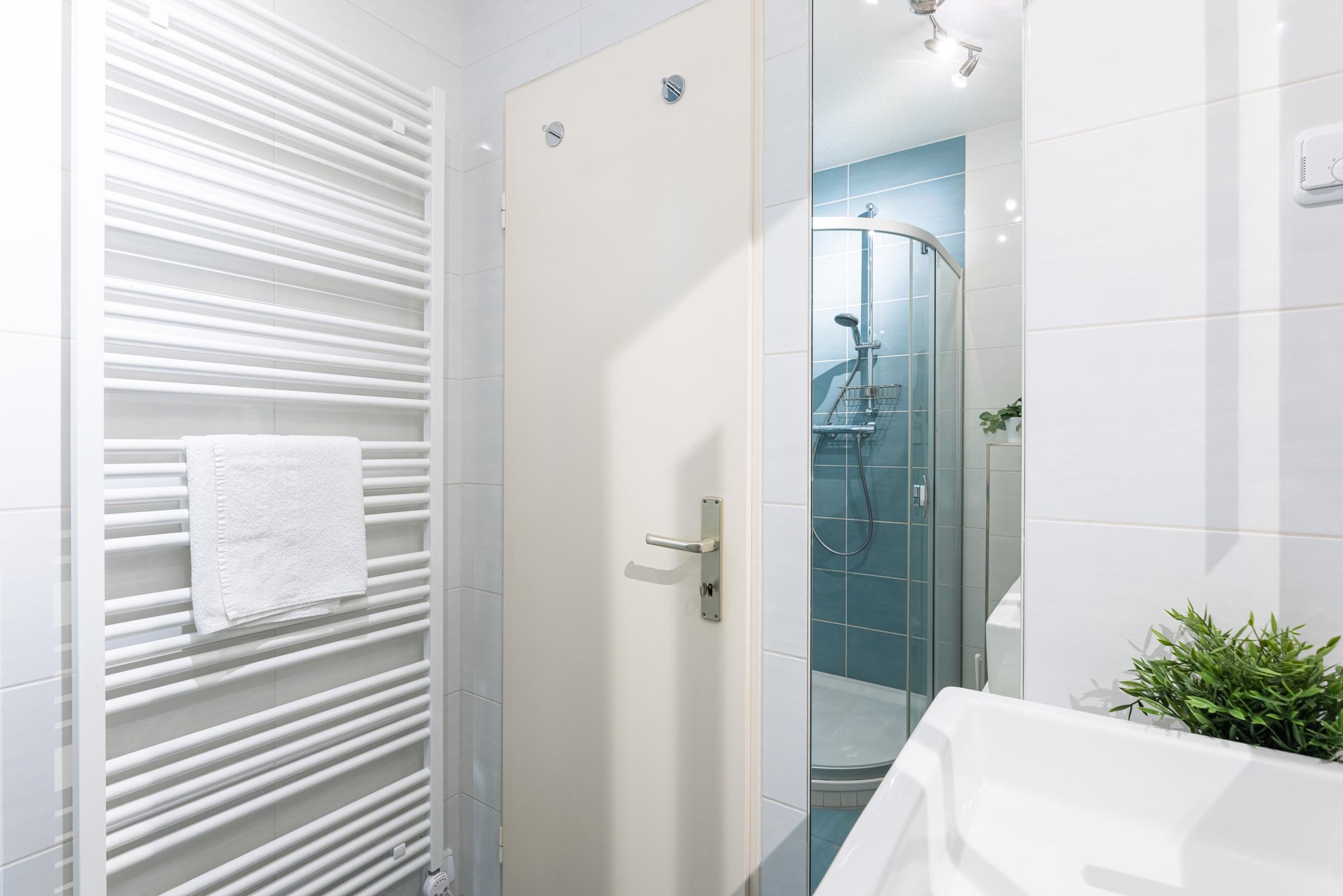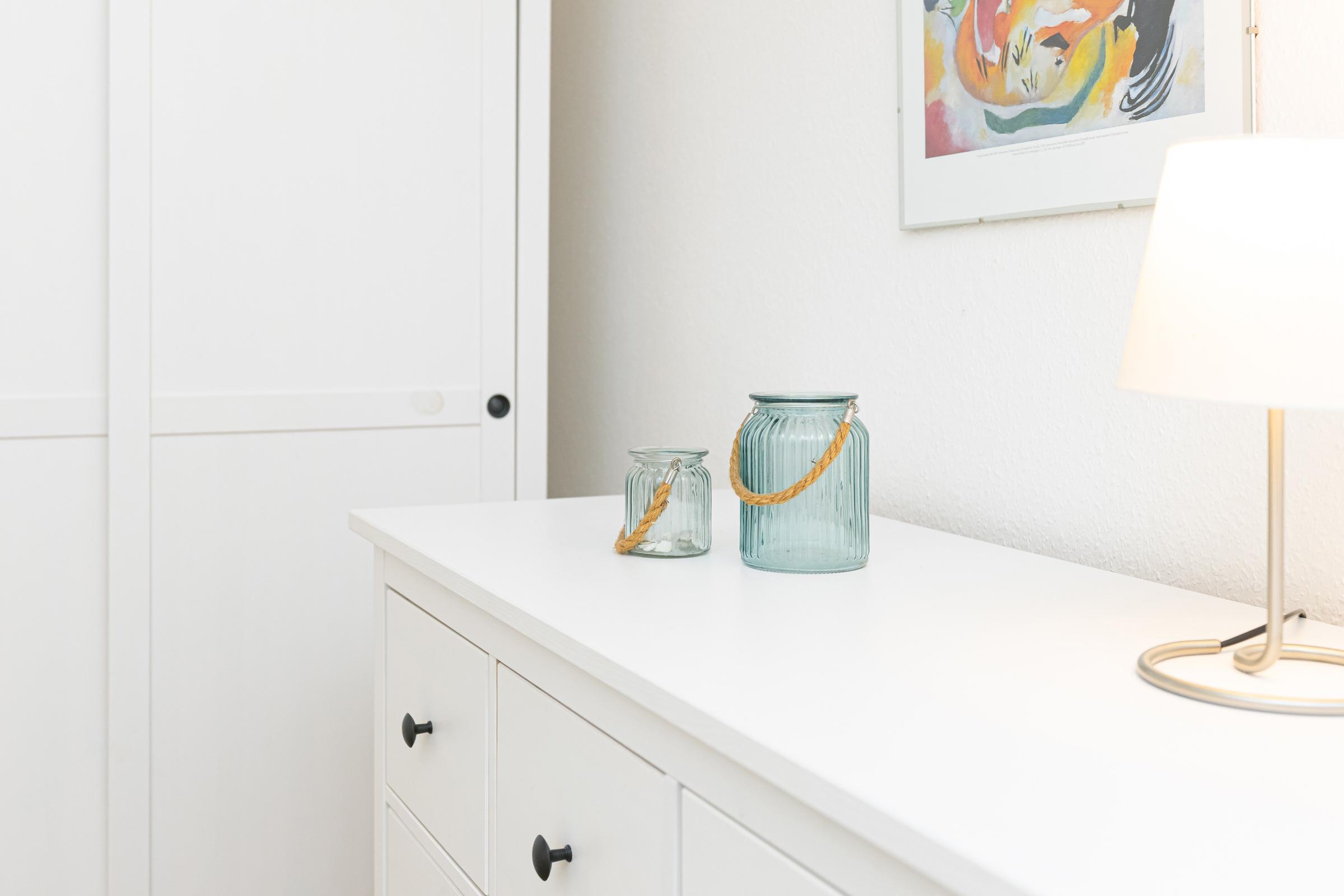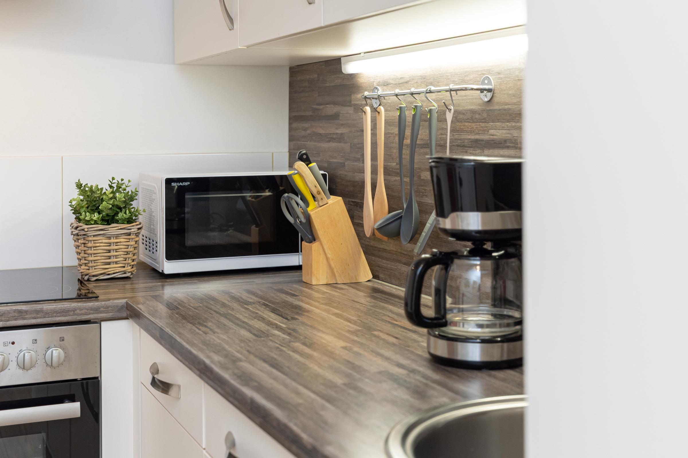 Im kombinierten Wohn-/Schlafraum befindet sich ein Schlafsofa für 2 Personen (140x200 cm), eine Sofaecke mit TV und eine Essecke mit Blick aufs Meer. Am Terrassenfenster als Schiebetür lädt ein 6 m² großer, nach Südwesten ausgerichteter Balkon zum Sonnenbaden oder zum Essen mit Meerblick ein. Ein Flachbildfernseher und ein CD/iPod/mp3-Player mit Radio sind vorhanden. In der Küche befindet sich die übliche Standardausstattung wie Kaffeemaschine, Mikrowelle, Toaster, etc. Im Schlafraum finden Sie ein bequemes Doppelbett (180x200 cm), Kleiderschrank sowie Kommode. Das moderne Bad ist mit einer Dusche, einem Handtuchheizkörper und einem deckenhohen, beleuchteten Wandspiegel ausgestattet. Das Wohn- und Schlafzimmer haben einen Laminatfußboden.