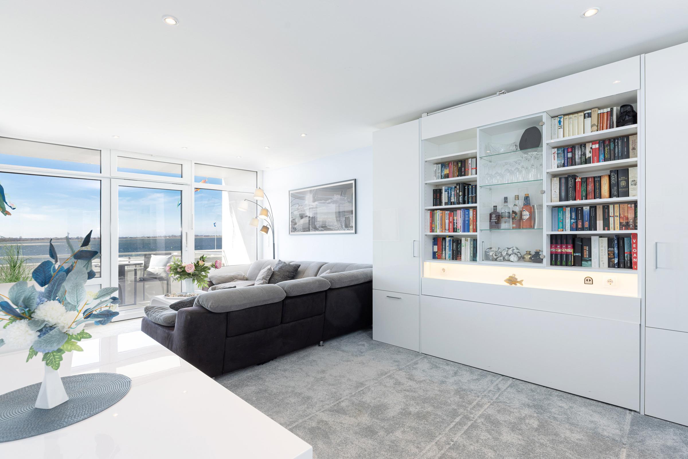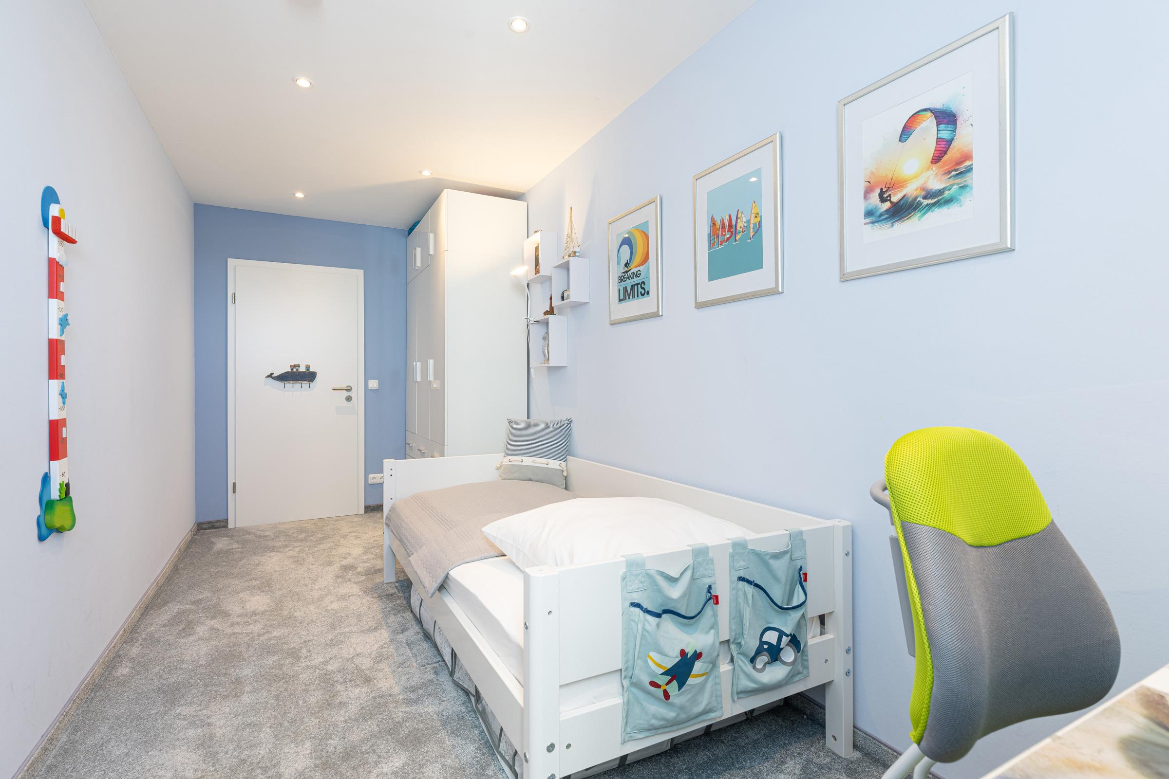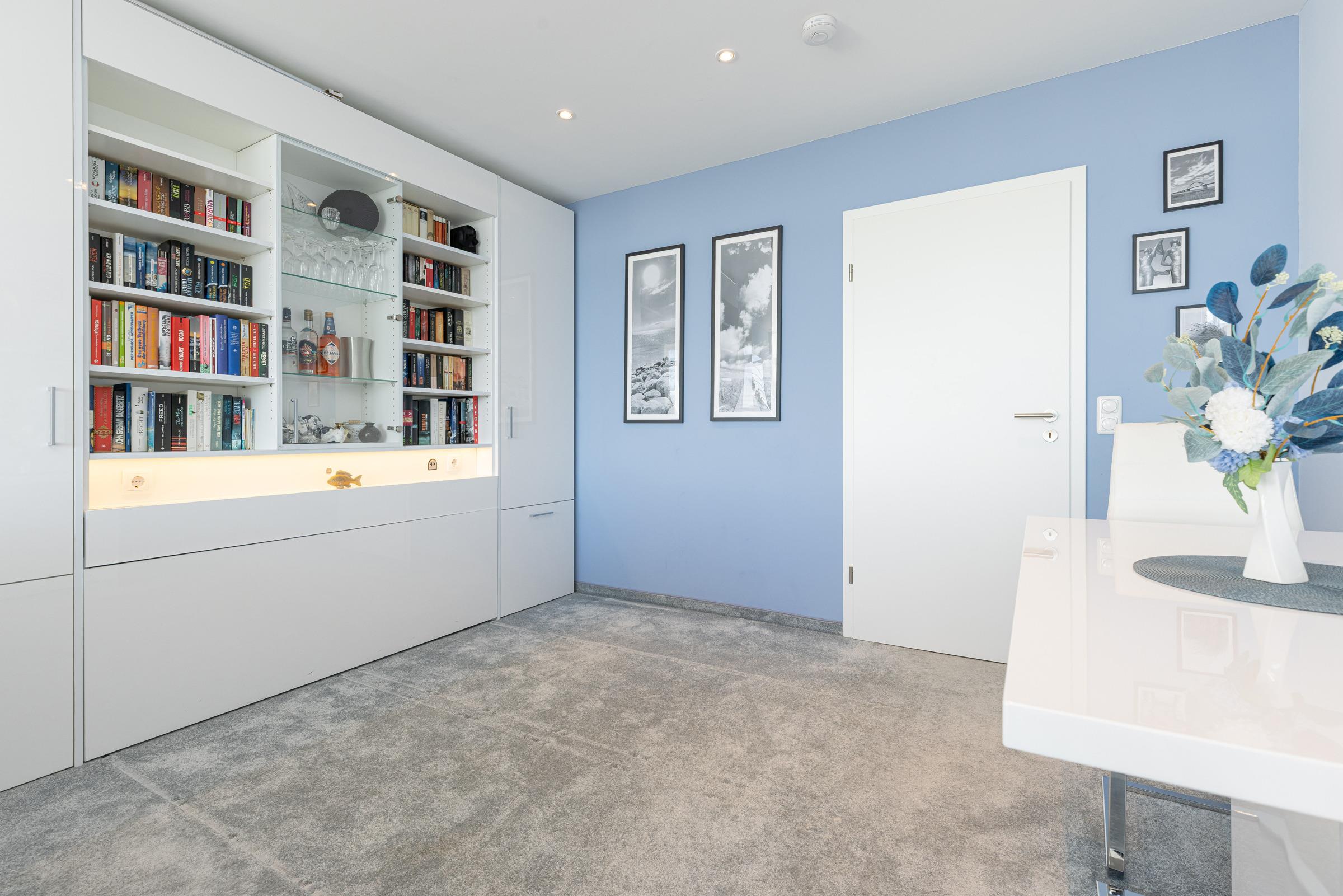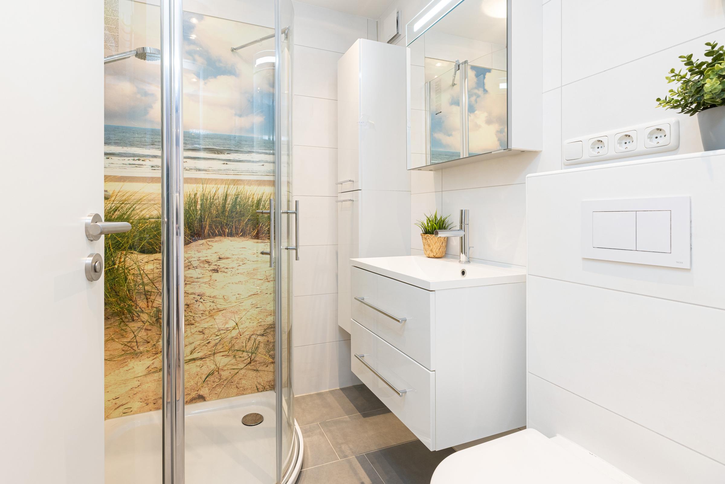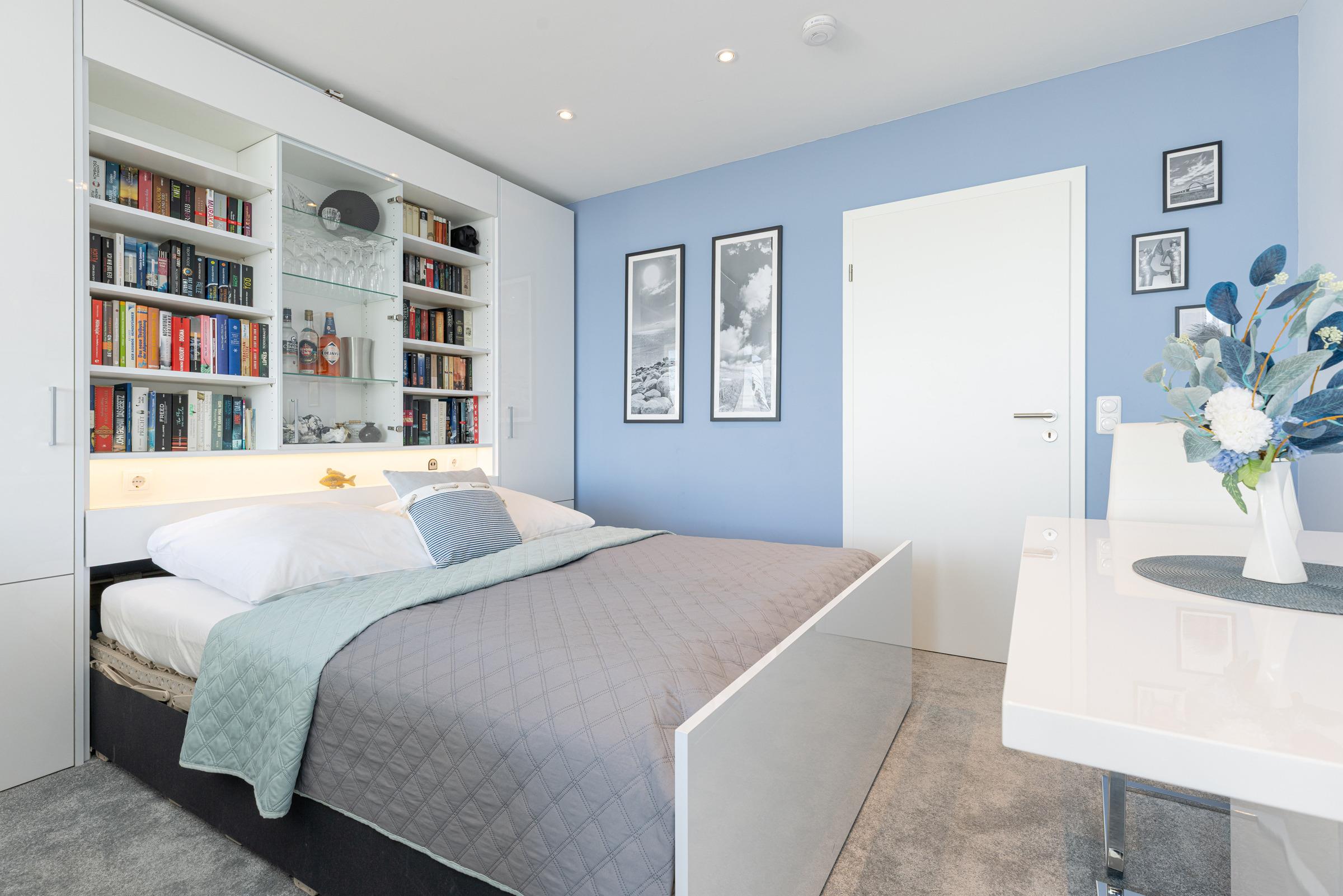 Der Blick vom Balkon und aus den Zimmern heraus ist herrlich: Sie schauen über die davor liegenden Bungalowdächer hinweg direkt aufs Meer in rund 100 Metern Entfernung. Beobachten Sie die ein- und ausfahrenden Schiffe und Boote oder das gegenüberliegende Surf- und Kite-Gebiet. Im Hintergrund ist die legendäre Fehmarnsundbrücke zu sehen. Machen Sie es sich gemütlich im Wohnschlafbereich. Das Doppelbett ist ein elektronisches Schrankbett, das tagsüber charmant verschwindet. Es fährt per Knopfdruck ein und aus. Auch die gemütliche Couch hat eine Doppelbett- oder Fernsehposition-Funktion (nach vorne hin ausklappbar). Die Küche umfasst sämtliche Annehmlichkeiten: Herd mit Cerankochfeld, Backofen, Kühlschrank mit kleinem Eisfach, Mikrowelle, Spülmaschine, Waschmaschine/Trockner (Waschtrockner), Kaffeemaschine, Wasserkocher, Toaster, Sandwich Maker sowie Raclette. Genießen Sie Ihre Mahlzeiten am Esstisch oder auf dem Balkon. Im Kinderschlafzimmer befindet sich ein gemütliches Einzelbett (ca. 90x200 cm) sowie ein Schreibtisch. Im modernen Duschbad gibt es eine Fußbodenheizung und eine große Handtuchhalterheizung. Für ein angenehmes Urlaubserlebnis sorgt ein Fliegengitter vor dem Schlafzimmerfenster und der Balkontür.