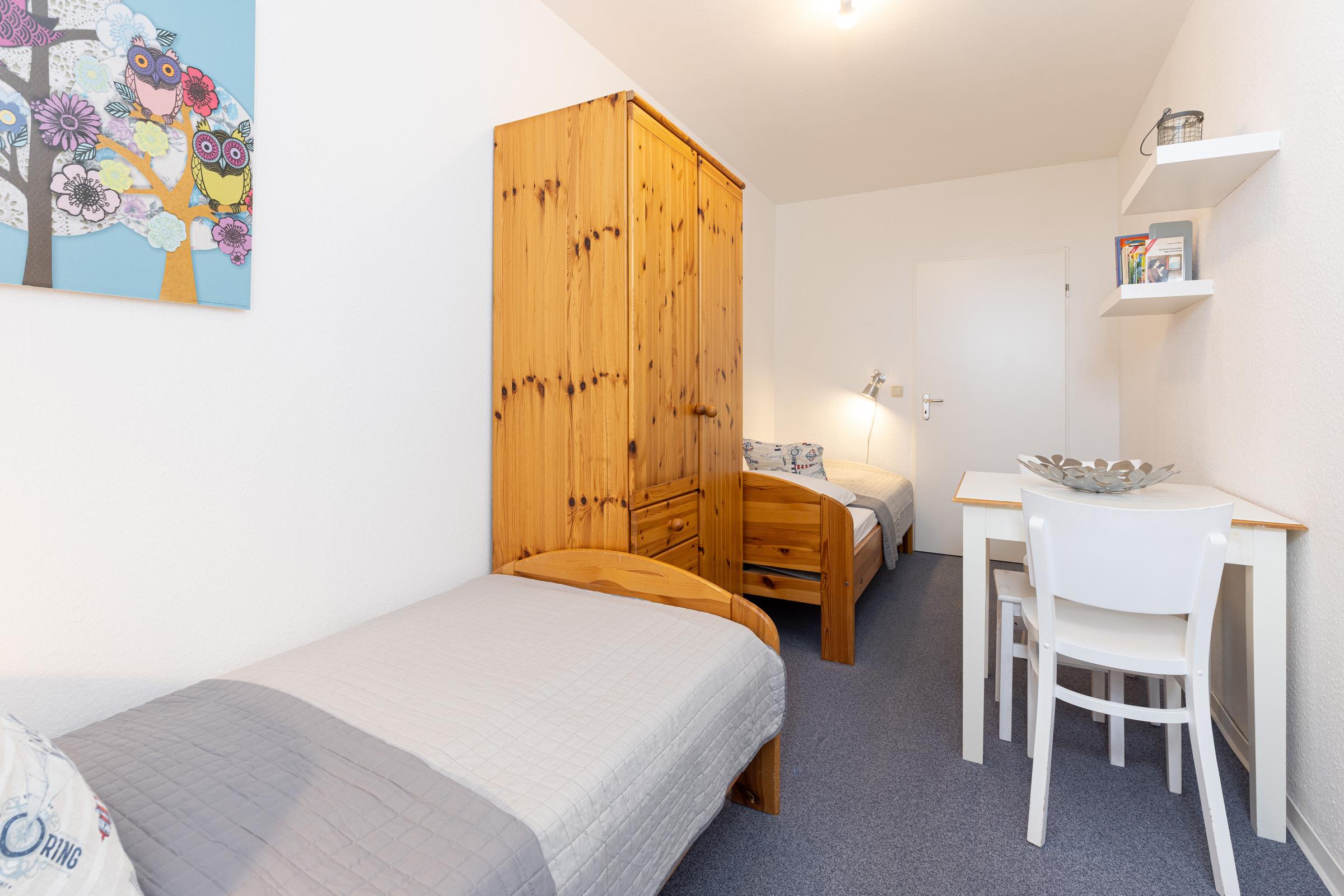 Schlafzimmer: 1 Einzelbett, Kleiderschrank, kein Platz für ein Babybett vorhanden