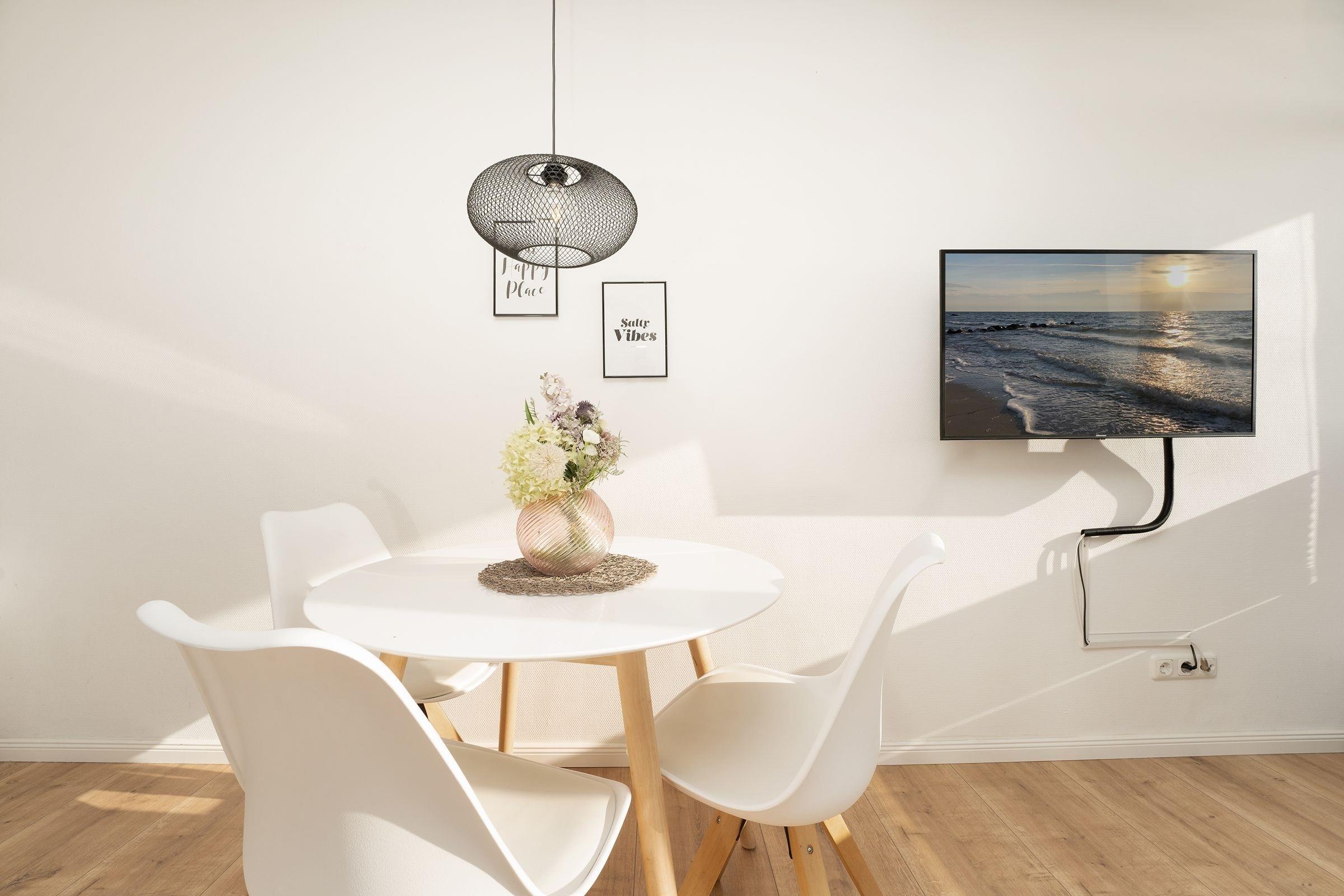 Die zauberhafte Wohnung bietet Ihnen ein gemütliches Wohnschlafzimmer mit komfortablen Doppelbett und einer gemütlichen Schlafcouch. Hier können Sie sich nach einem ereignisreichen Tag perfekt erholen. Ein Highlight ist der schöne möblierte Balkon, von dem aus Sie das Meer überblicken können. Genießen Sie die gesunde Meeresbrise und tauchen Sie in die pure Entspannung ab. Die gut ausgestattete Küche bietet Ihnen alles, was Sie für die Zubereitung Ihrer Lieblingsspeisen benötigen. Ein kleines aber feines Bad rundet die Wohnung ab. Nur wenige Schritte von der Ferienwohnung entfernt befindet sich der Yachthafen, von dem aus Sie zahlreiche Cafés, Restaurants, Bars und Spielplätze entlang der Strandpromenade erreichen können. Genießen Sie kulinarische Köstlichkeiten und lassen Sie sich von der lebendigen Atmosphäre des Ortes verzaubern.