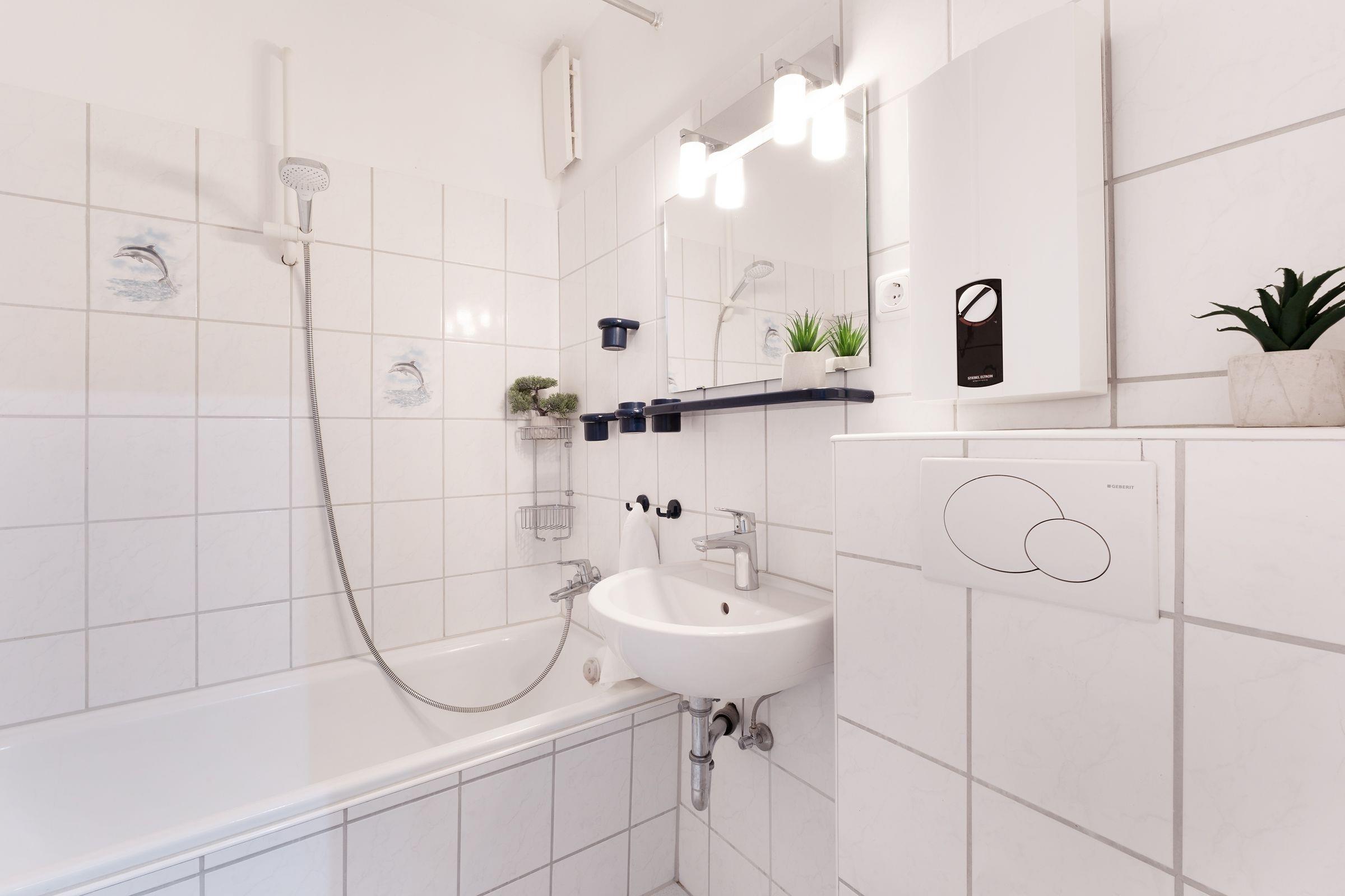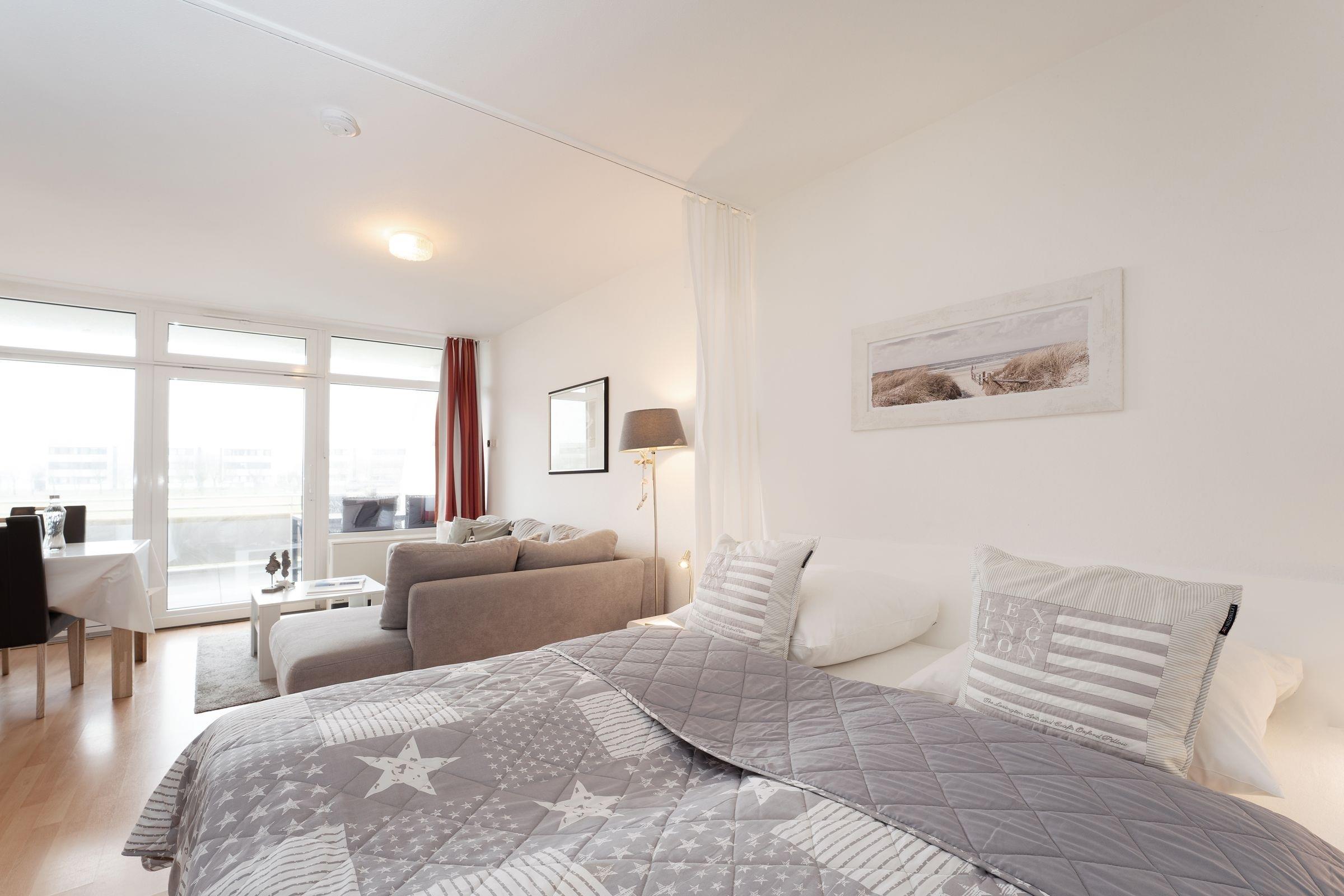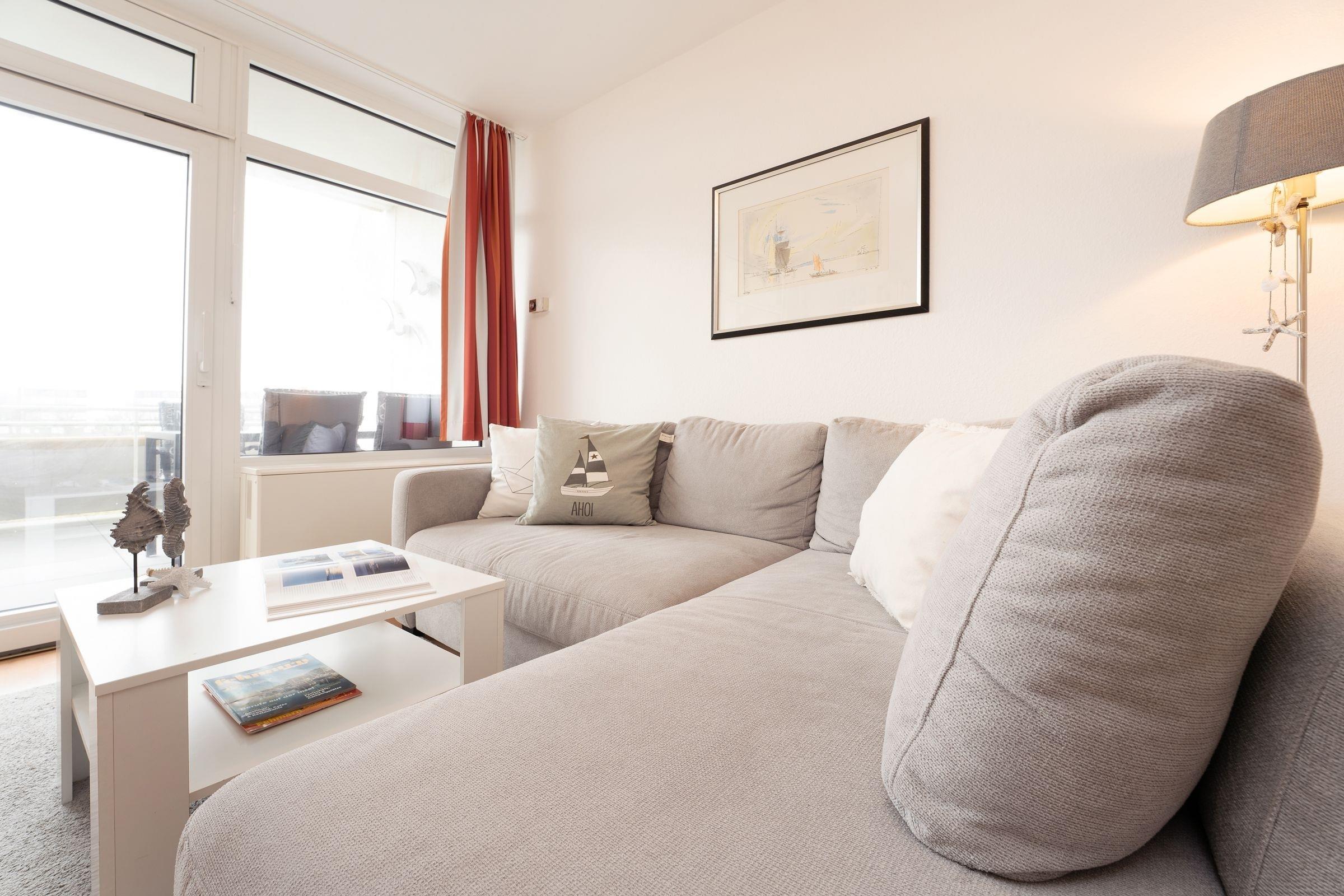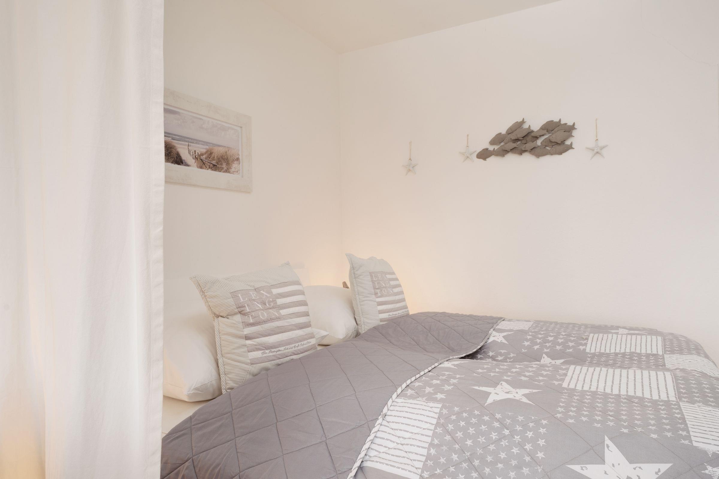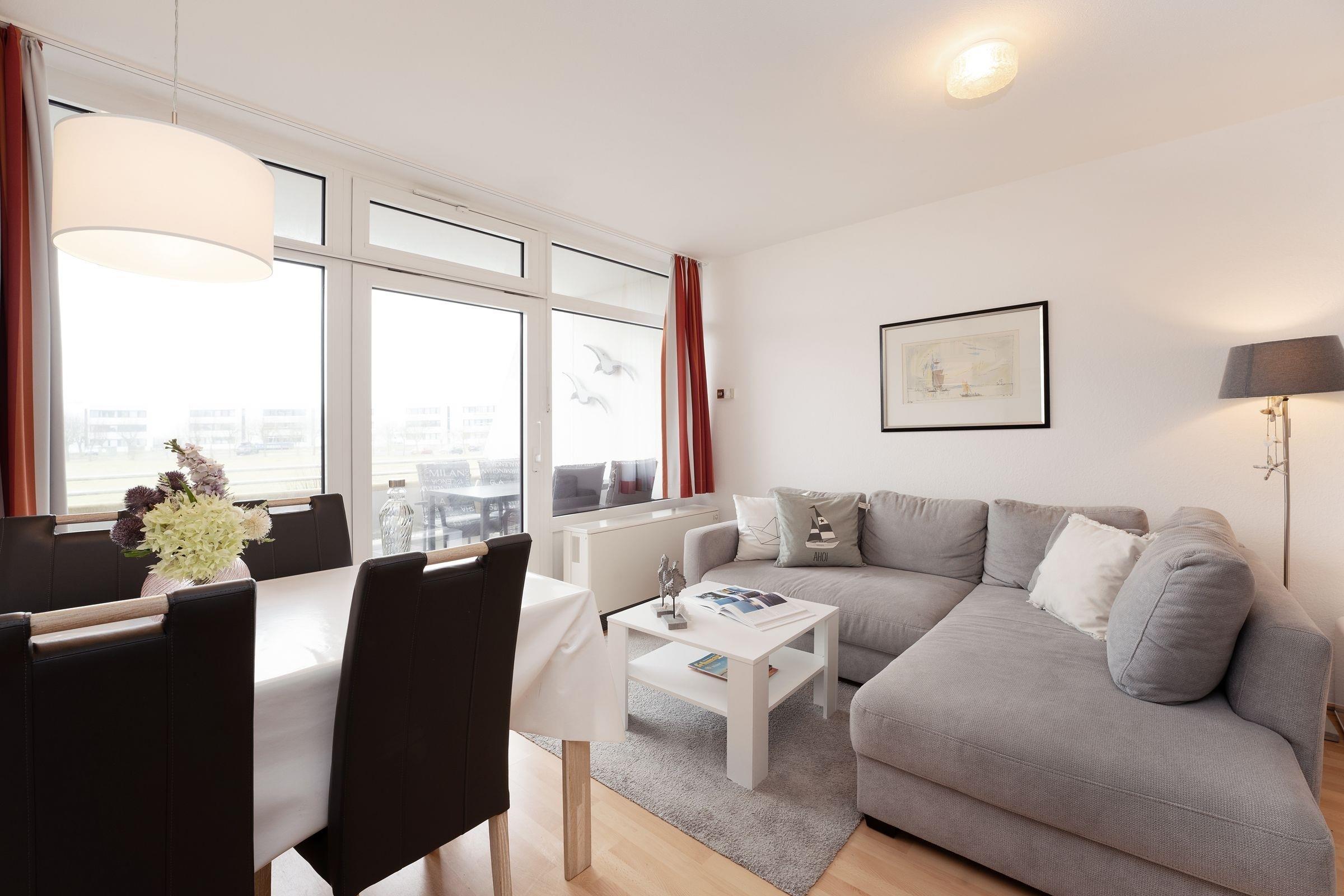 Diese gemütliche und geschmackvoll eingerichtete Ferienwohnung bietet die ideale Kombination aus Komfort und Nähe zur Ostsee. Nur 100 Meter von Fehmarns traumhaften Südstrand entfernt, ist sie der perfekte Ausgangspunkt für einen entspannten Urlaub. Der helle Wohnbereich besticht durch eine stilvolle Einrichtung mit kuscheligem Sofa und moderner Unterhaltungstechnik, darunter ein Flachbild-TV. Die angrenzende möblierte Terrasse mit Südausrichtung lädt zum Entspannen ein und bietet Platz für ein nettes Frühstück im Freien. Im hinteren Bereich des Wohnraums steht ein komfortables Doppelbett (2x 100x200 cm), das für süße Träume sorgt. Ein Vorhang bietet Gemütlichkeit und Privatsphäre. Die geschlossene Küche ist gut ausgestattet und verfügt über ein Ceranfeld, Backofen, Spülmaschine, Kühlschrank mit Gefrierfach, Mikrowelle, Toaster und Kaffeemaschine. Der Essbereich ist optimal für gesellige Mahlzeiten eingerichtet. Das separate Schlafzimmer bietet ein bequemes Einzelbett (90x190 cm) sowie ein Etagenbett (2x 90x190 cm) und ausreichend Stauraum. Das Badezimmer ist modern gestaltet und mit einer Badewanne mit Duschfunktion ausgestattet.