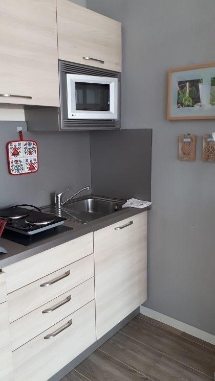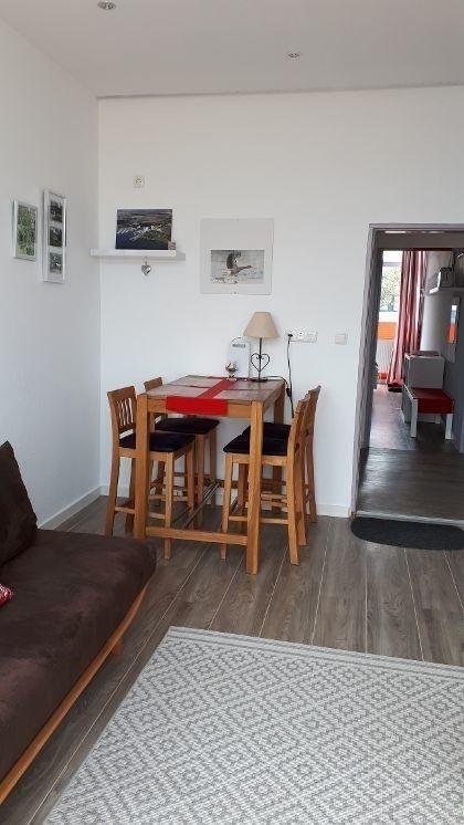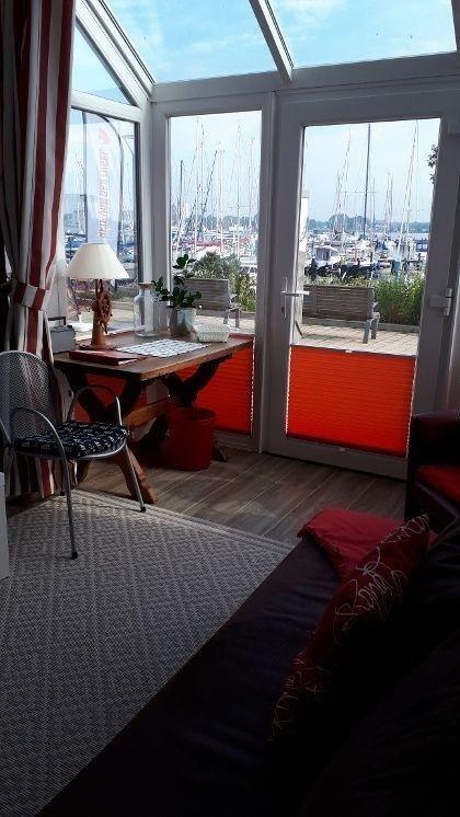 Diese Wohnung besteht aus einem Wohnzimmer mit Essecke , einer Versorgungsbar mit Kühlschrank, 2 Platten-Ceran-Feld, Mikrowelle, Kaffeemaschine, Toaster und einem Schlafzimmerbereich mit Doppelbett. Das Besondere ist der einmalige Blick auf die neu gestaltete Hafenpromenade mit eigener, abgetrennter Holzterrasse. Da der Boden ca. 2,50m über der Wasserlinie liegt, haben Sie einen hervorragenden Blick auf die Schiffe im Hafen und das maritime Flair. Im Objekt befindet sich ein festes w-lan Netzwerk, in der Wohnung ein smart TV.