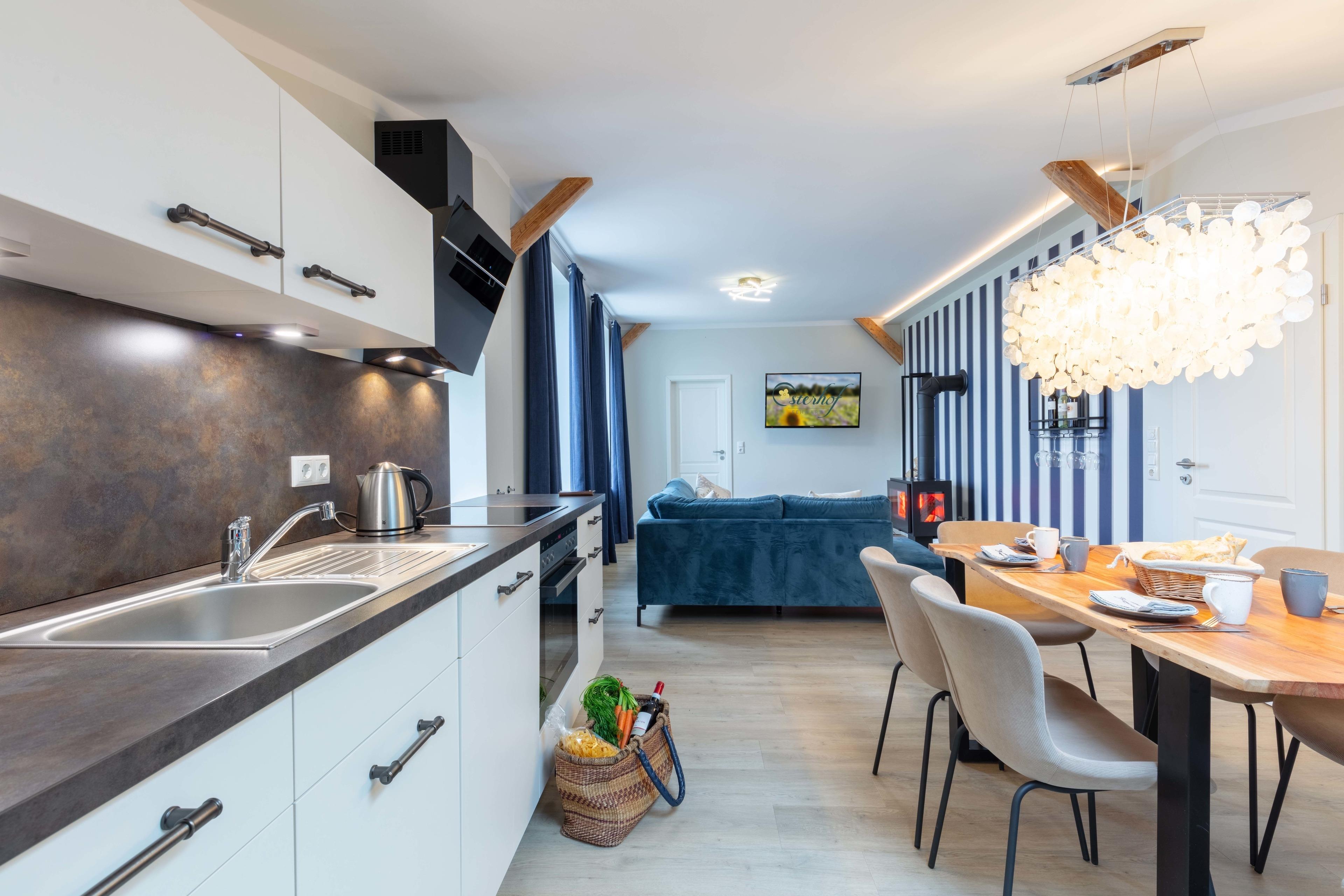 In der Casa Mare reiht sich jedes Möbelstück dezent in das maritime Thema ein. Highlights der Casa Mare sind das liebevoll eingerichtete Kinderzimmer, das geräumige, mit hochwertigen Materialien gestaltete Duschbad und die voll ausgestattete Küche. Aus den Fenstern der Casa Mare können Sie unsere Tiere sowie den Garten sehen und kommen ganzheitlich zur Ruhe.